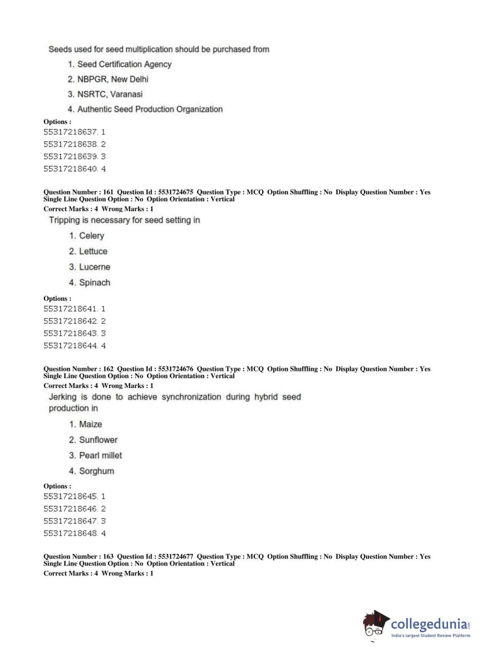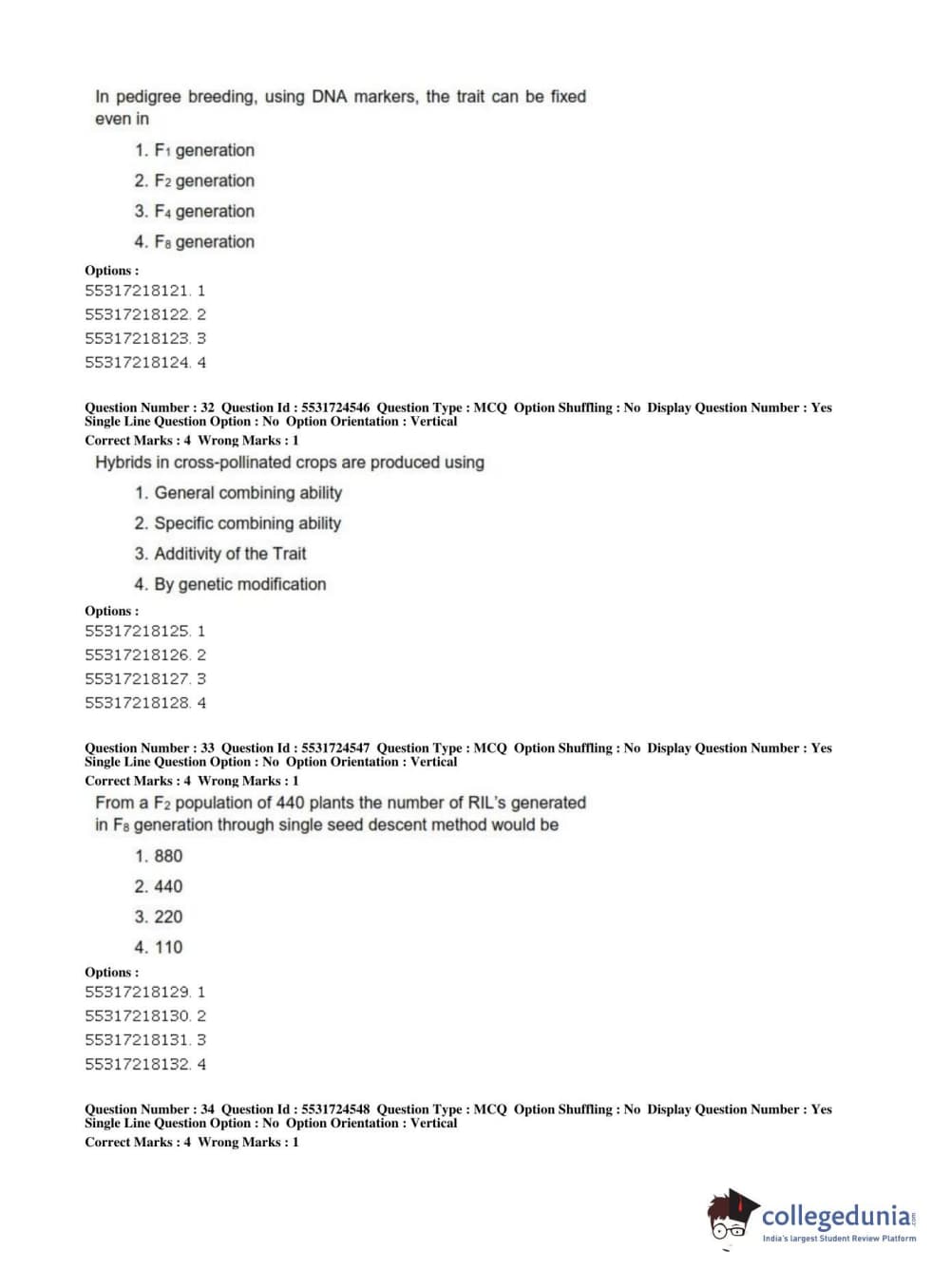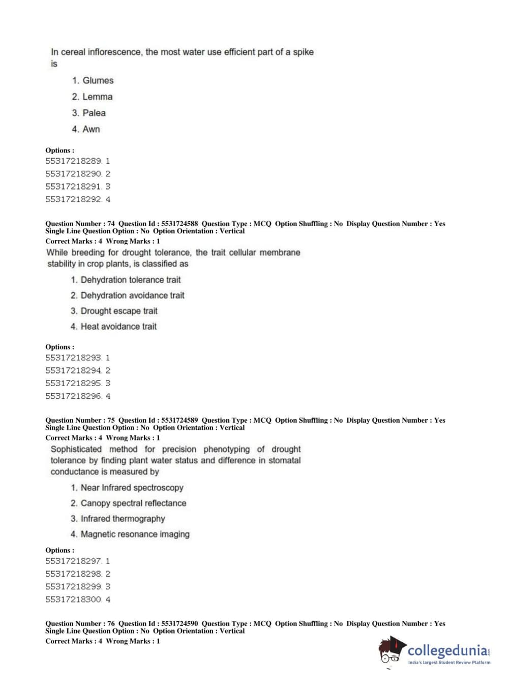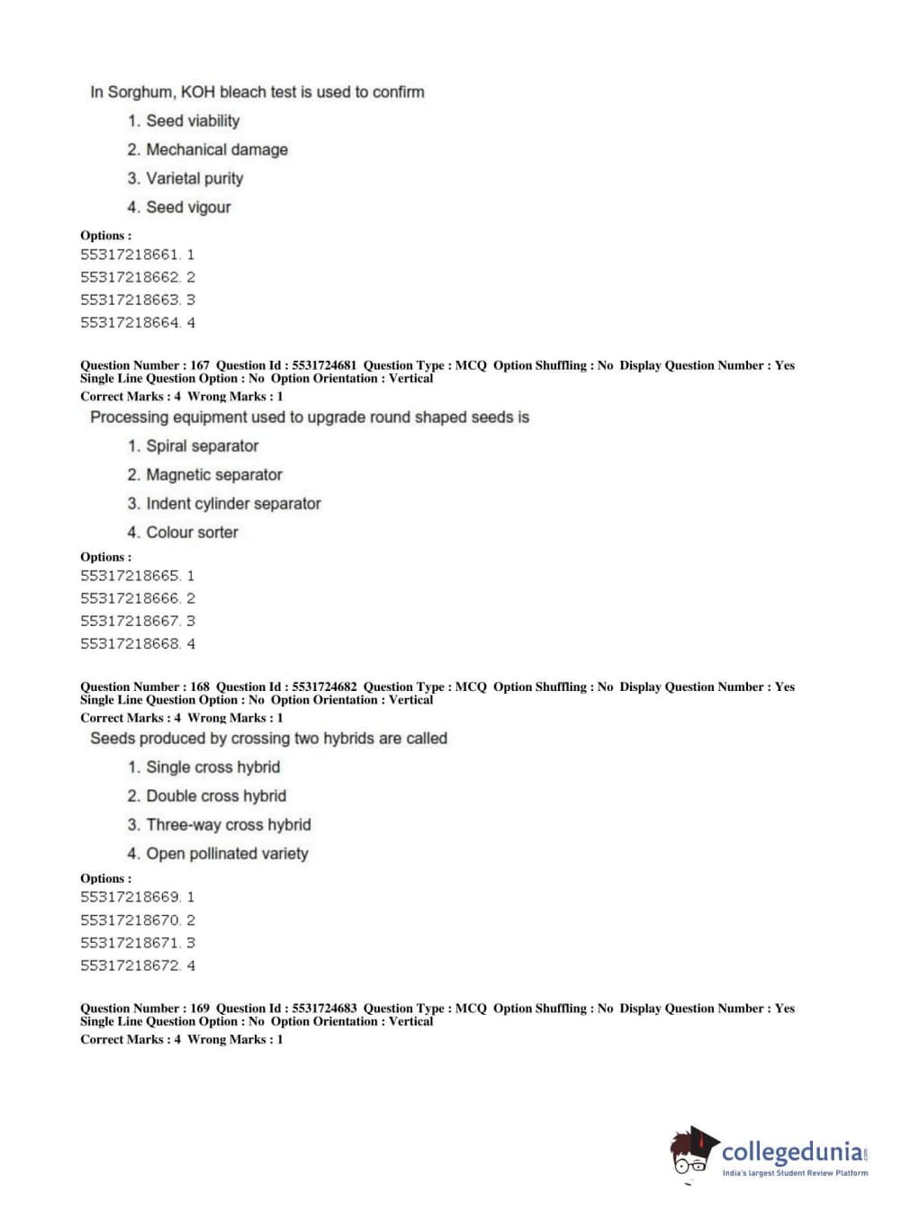 ICAR AIEEA 2019 JRF - CROP SCIENCES I Question Paper with Answer Key PDFs Afternoon Session
