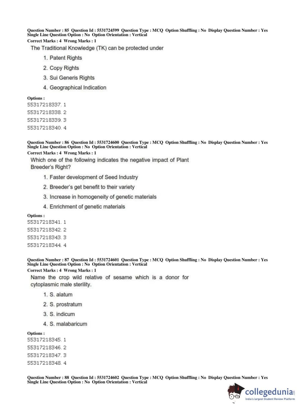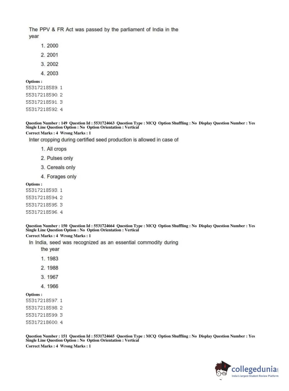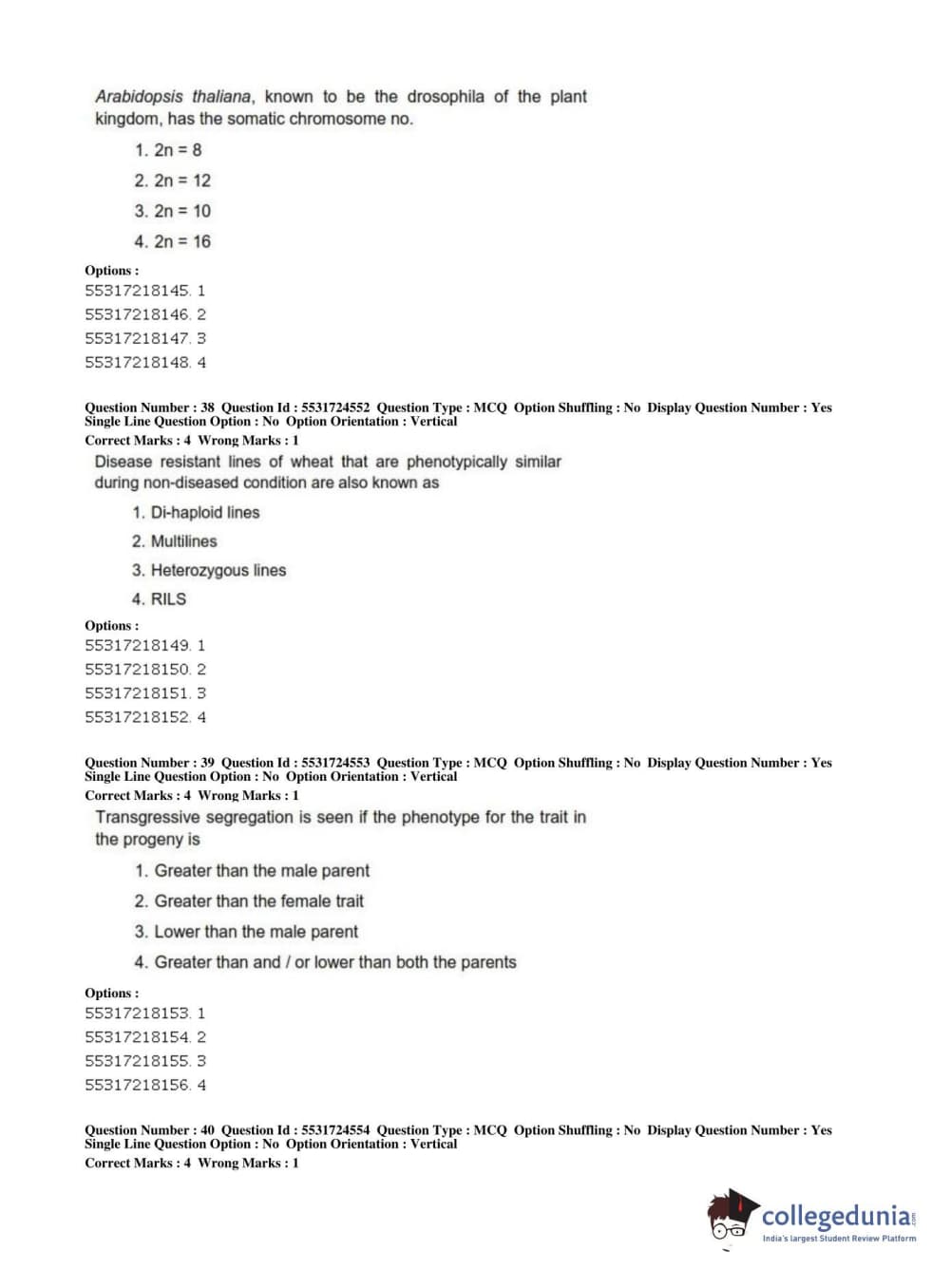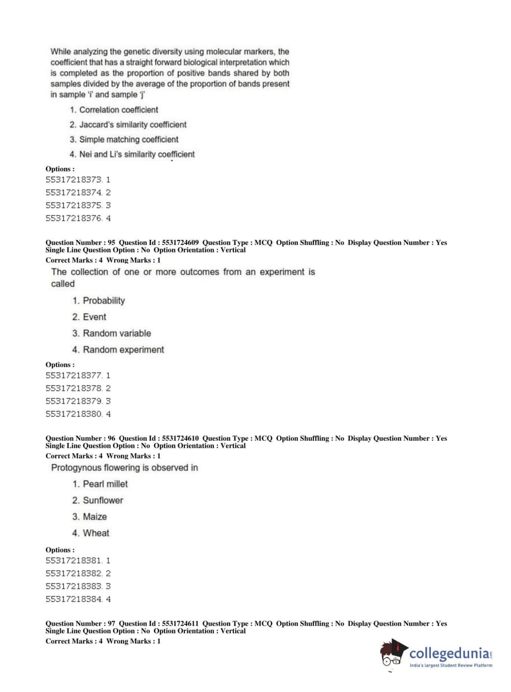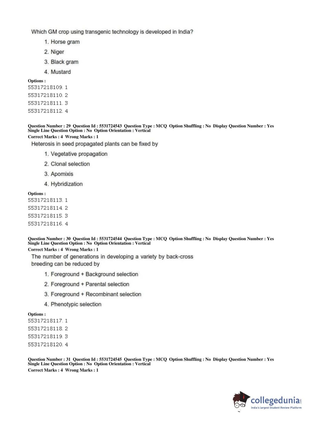 ICAR AIEEA 2019 JRF - CROP SCIENCES I Question Paper with Answer Key PDFs Afternoon Session