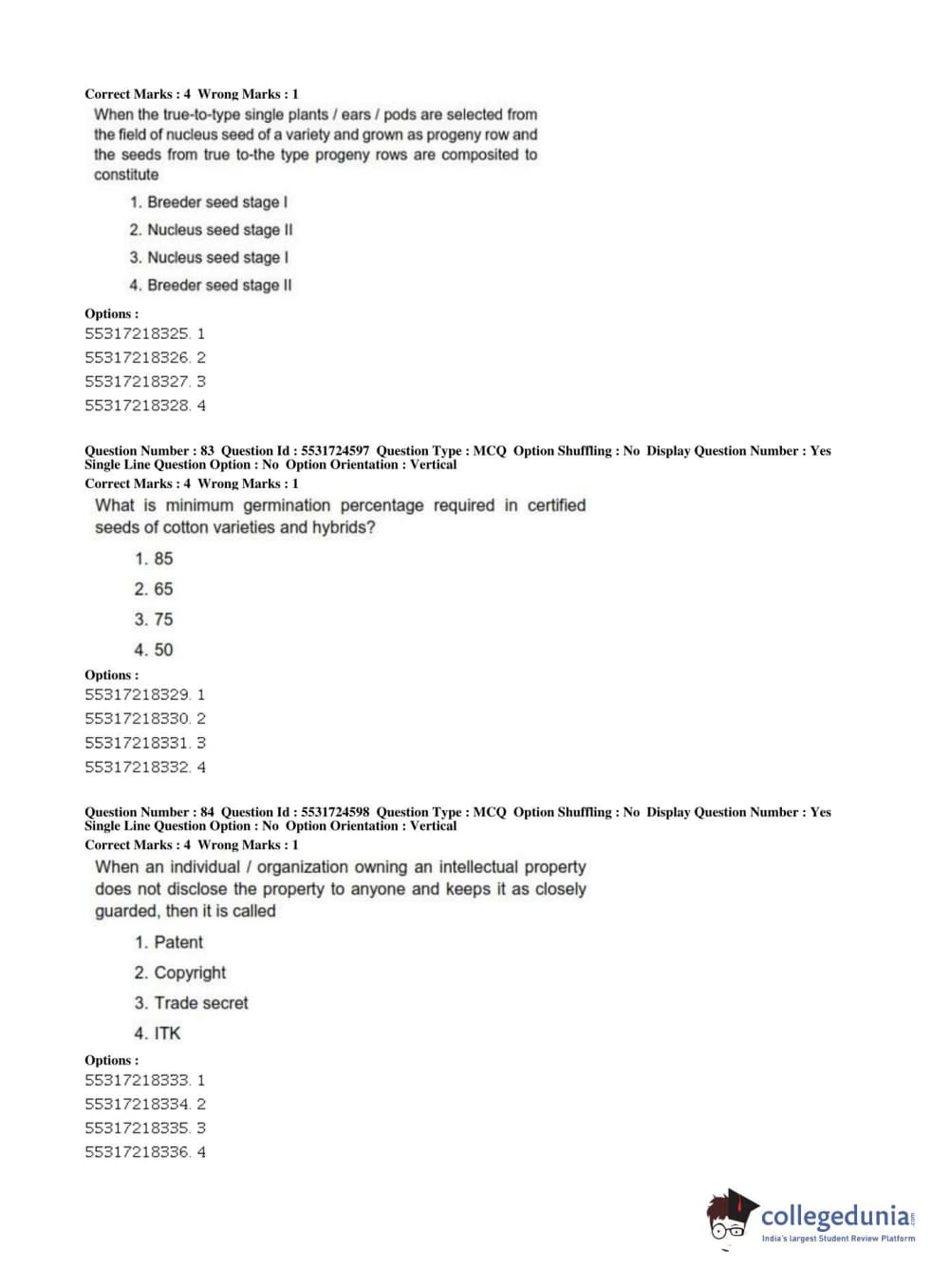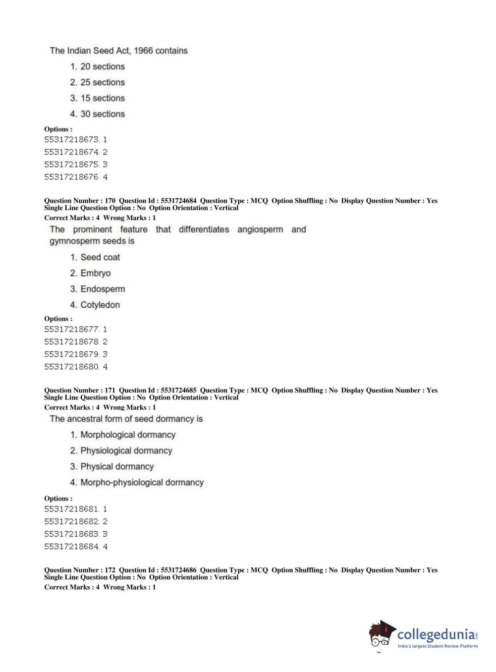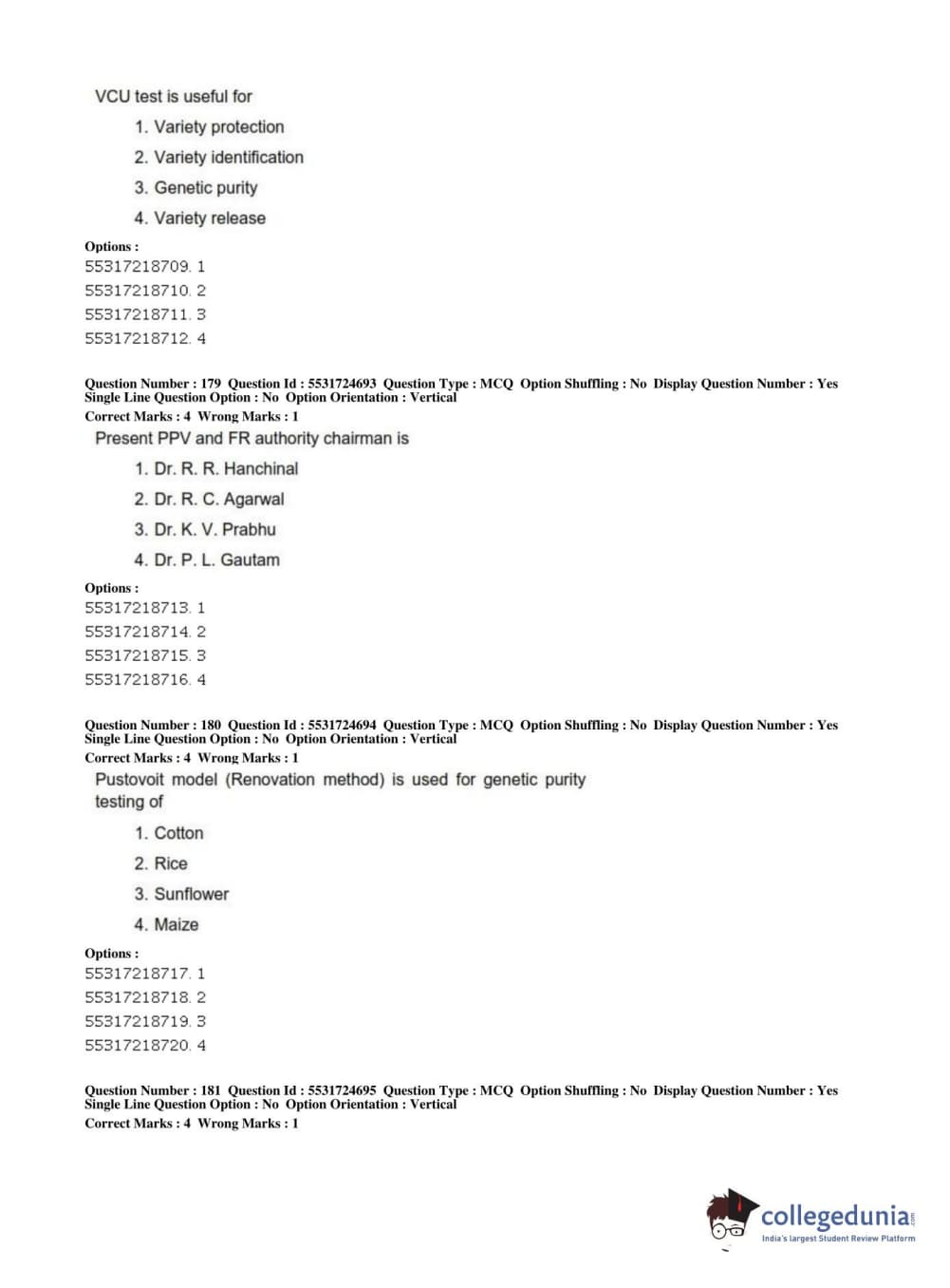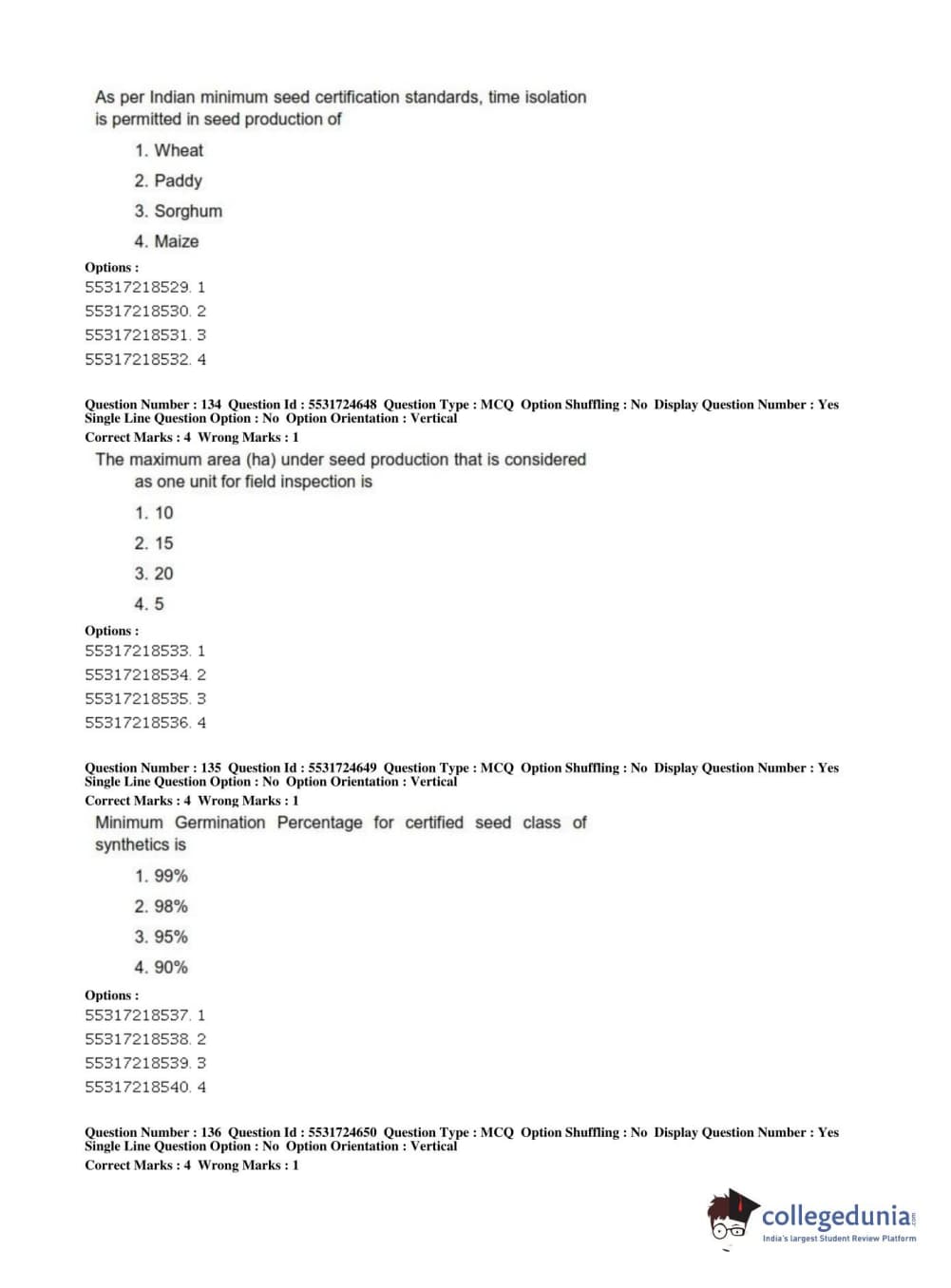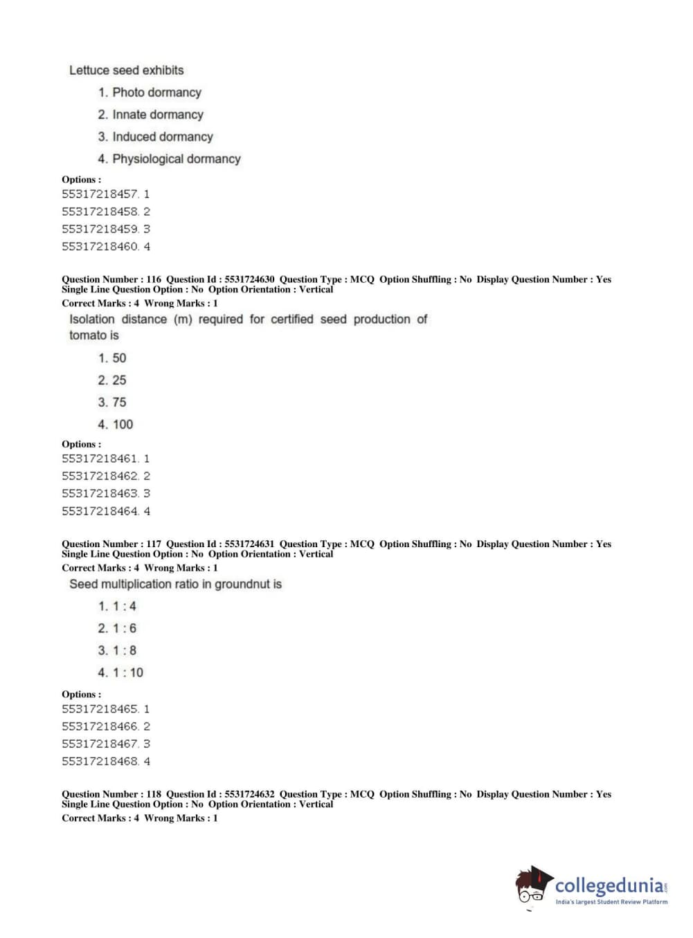 ICAR AIEEA 2019 JRF - CROP SCIENCES I Question Paper with Answer Key PDFs Afternoon Session