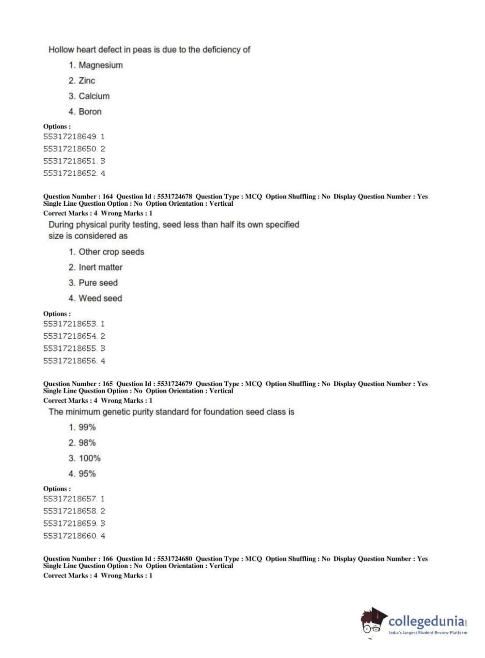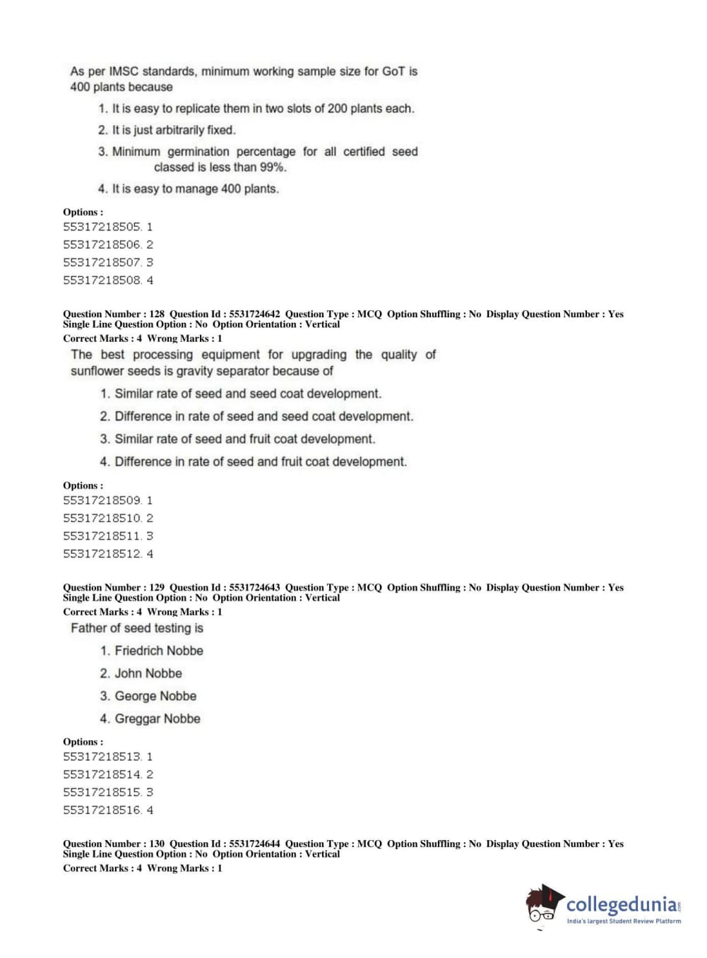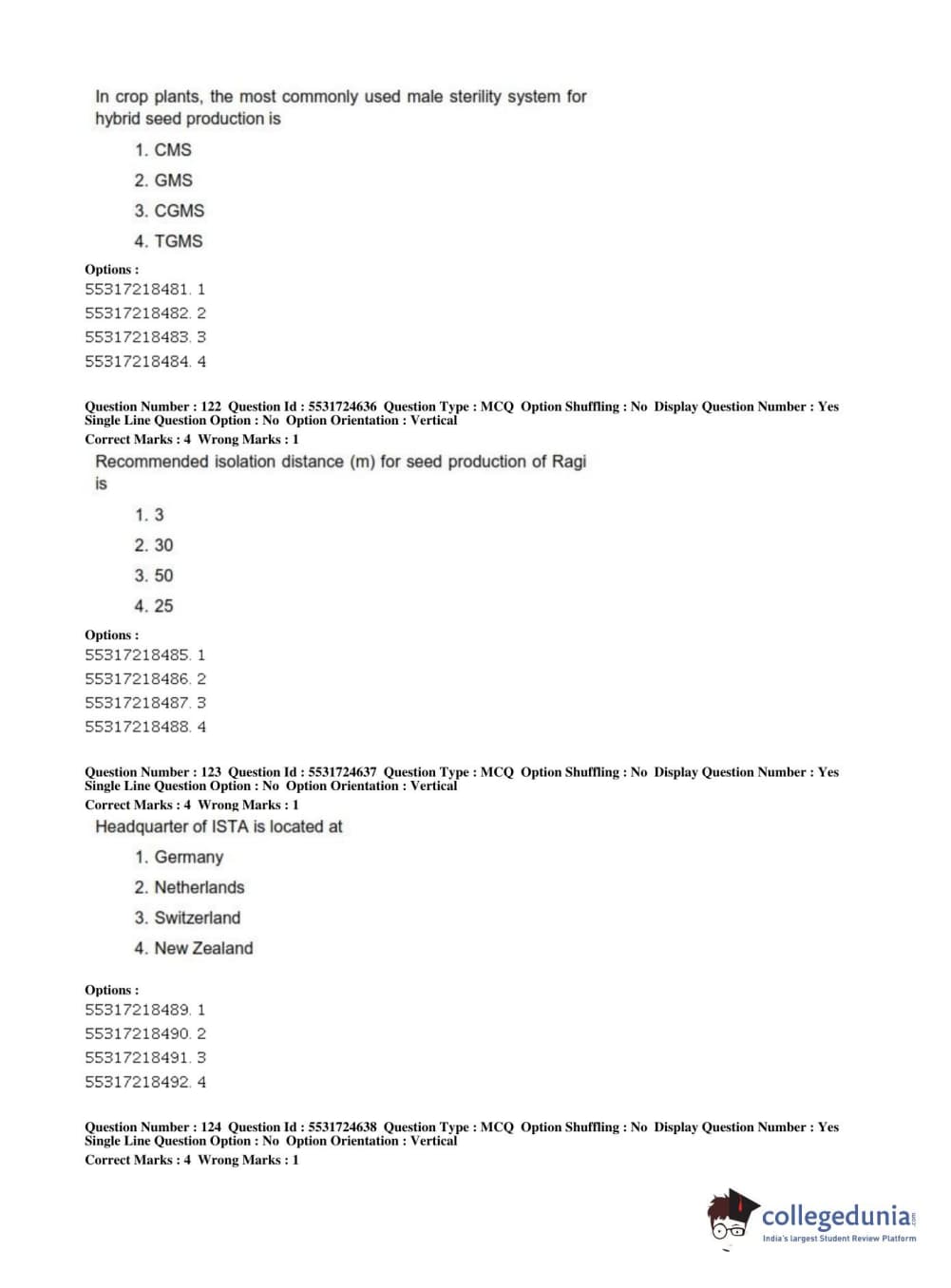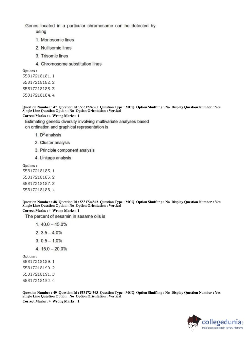 ICAR AIEEA 2019 JRF - CROP SCIENCES I Question Paper with Answer Key PDFs Afternoon Session