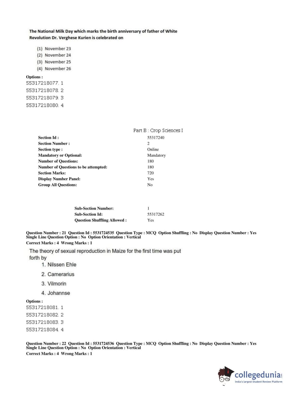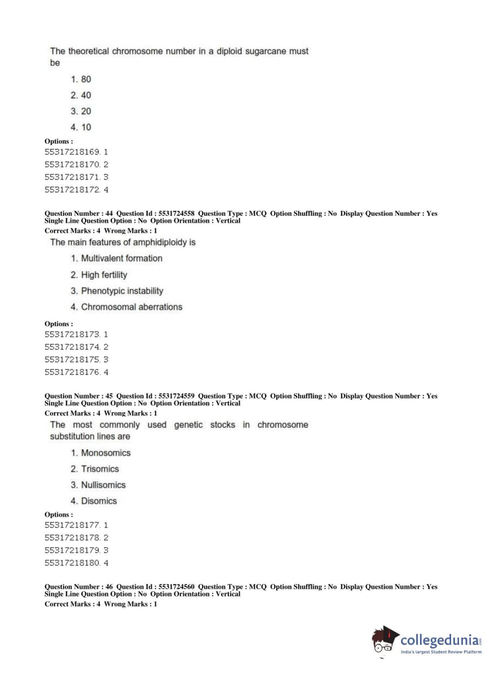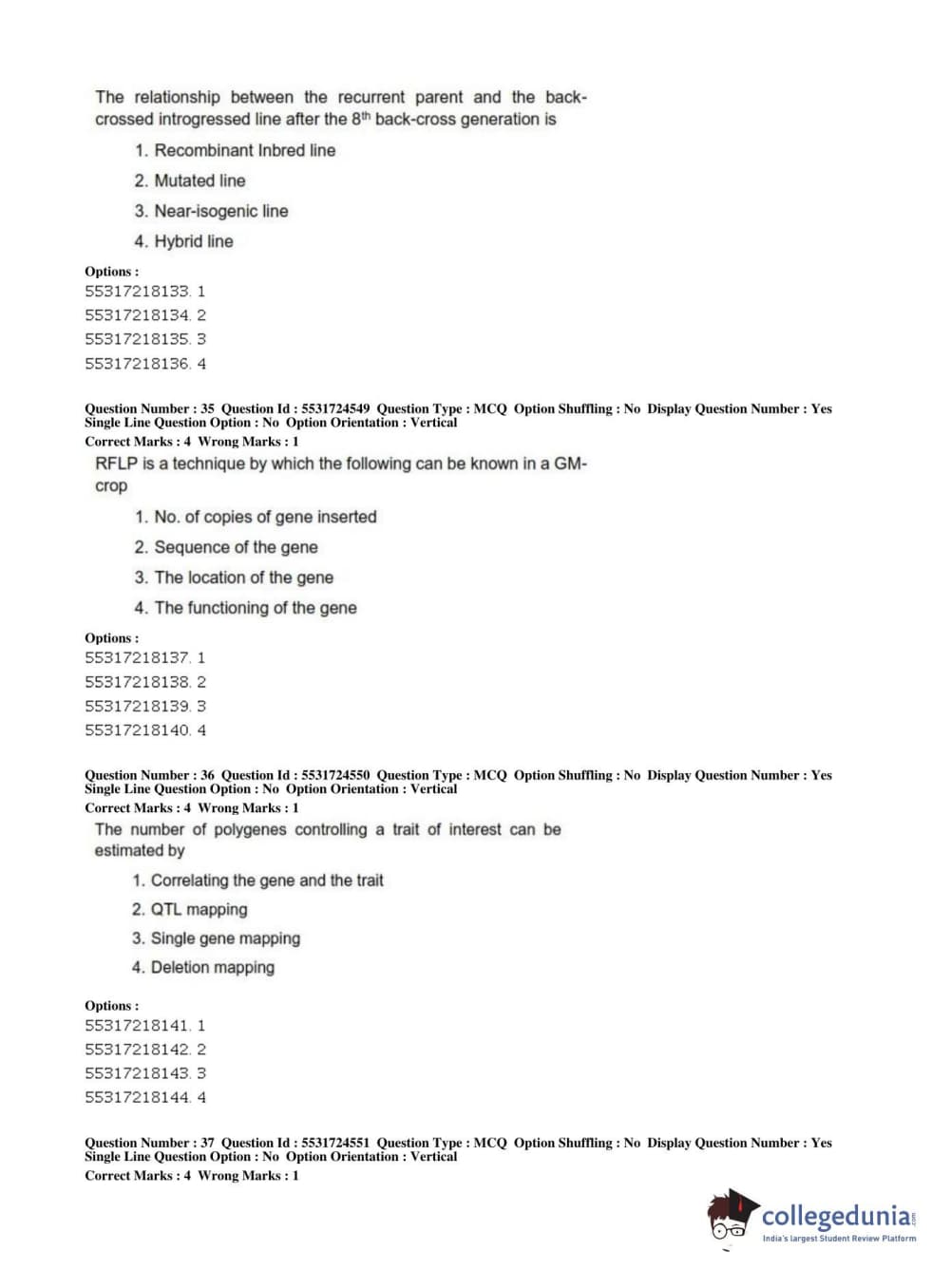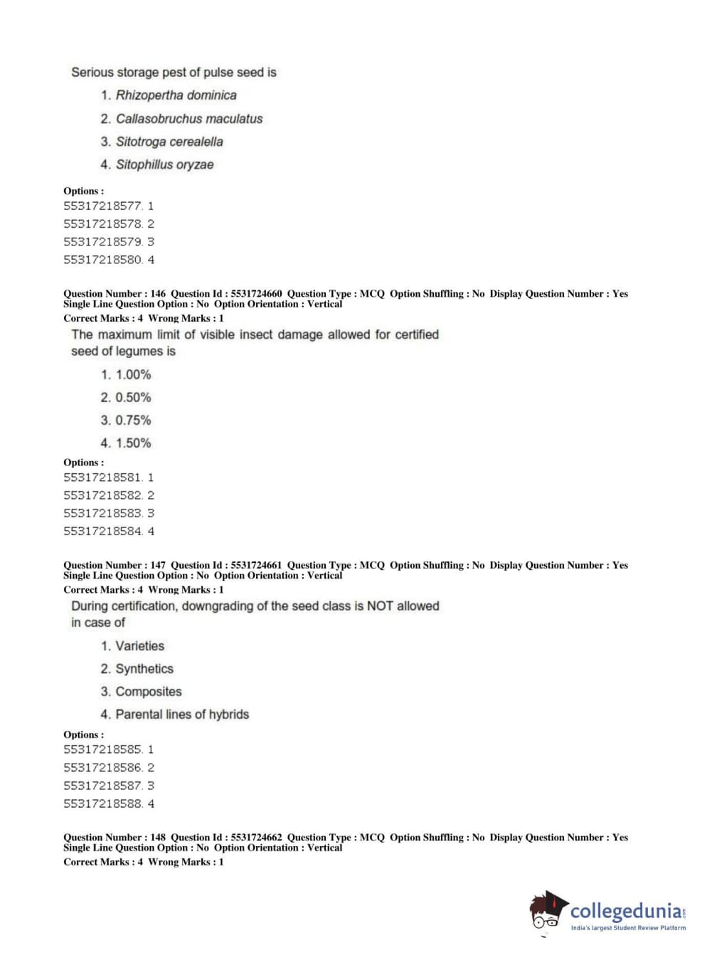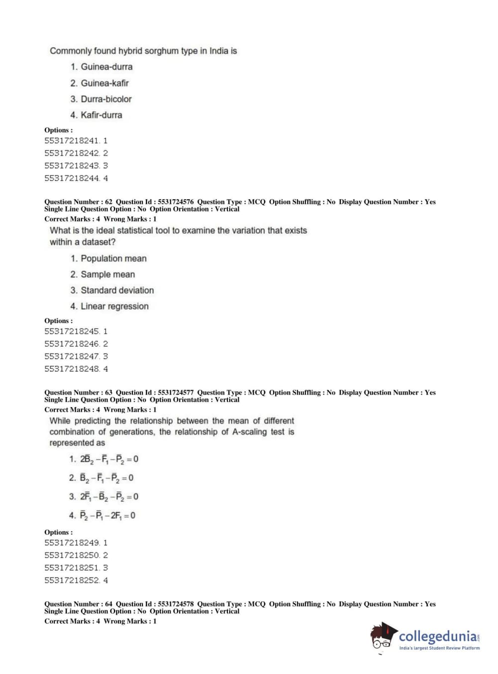 ICAR AIEEA 2019 JRF - CROP SCIENCES I Question Paper with Answer Key PDFs Afternoon Session