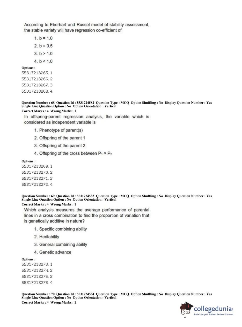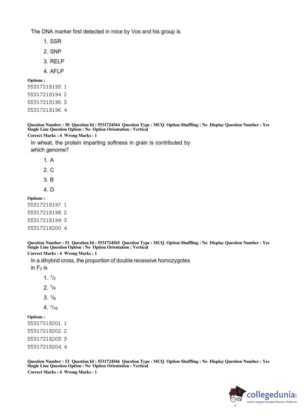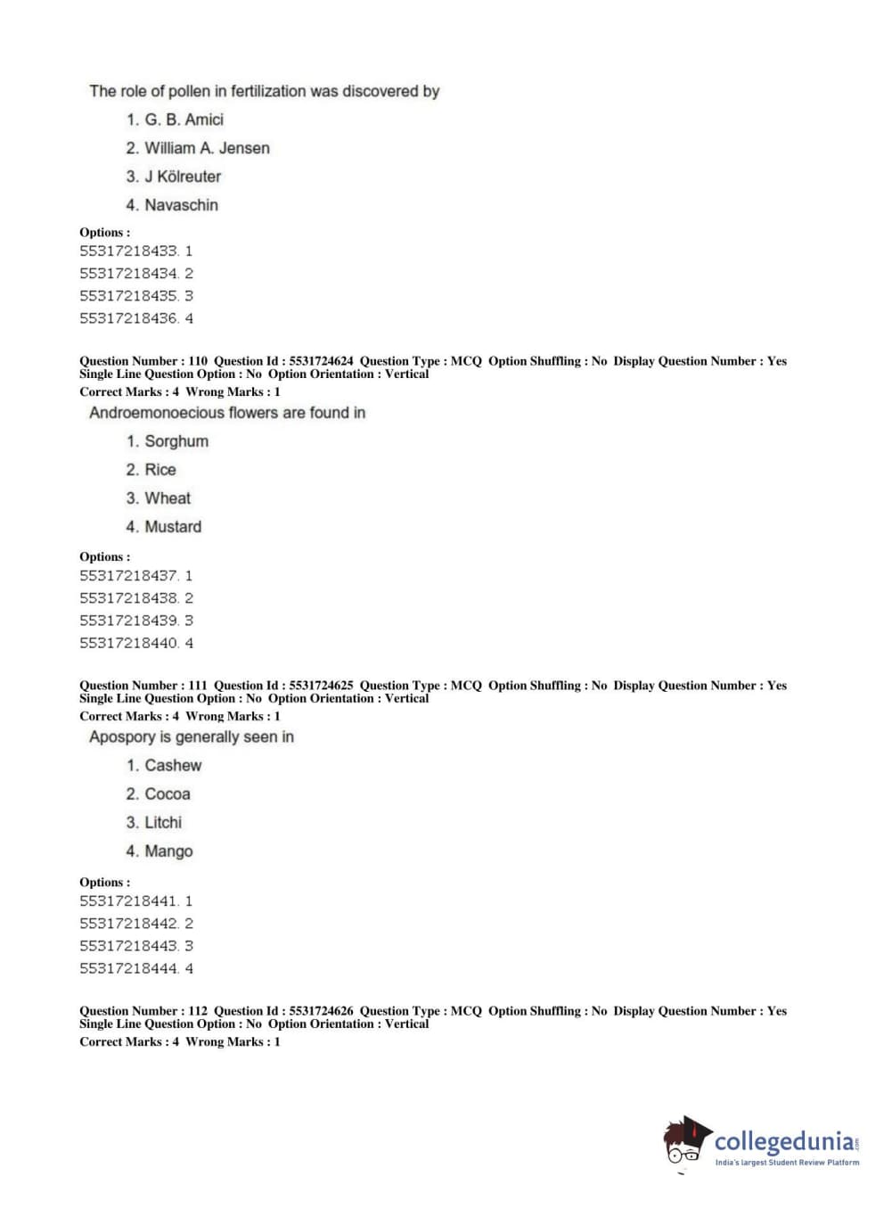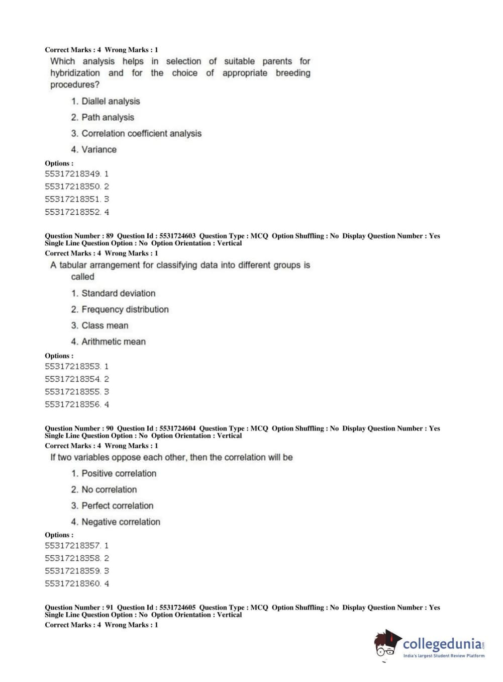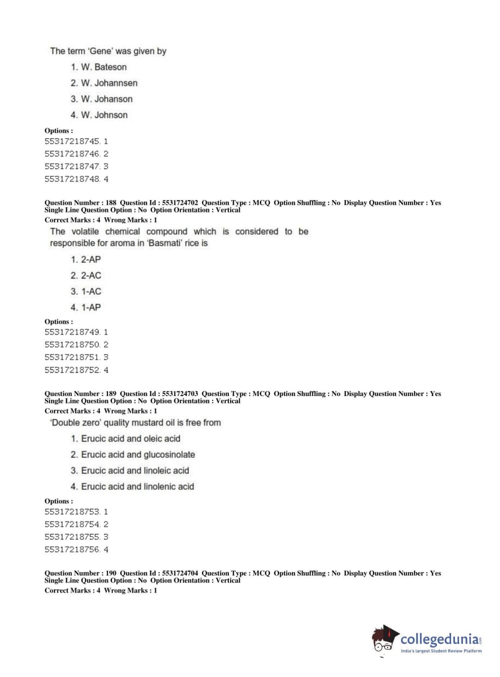 ICAR AIEEA 2019 JRF - CROP SCIENCES I Question Paper with Answer Key PDFs Afternoon Session