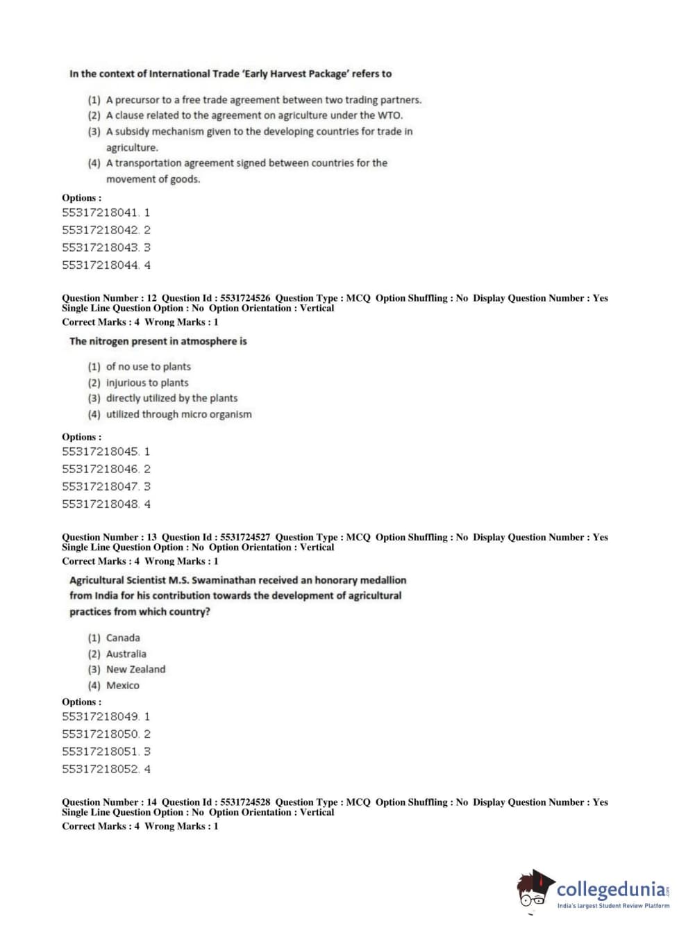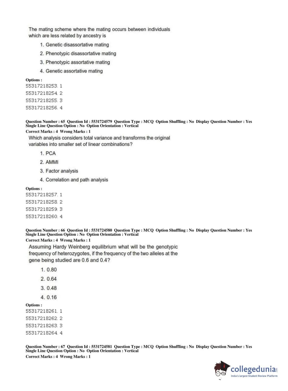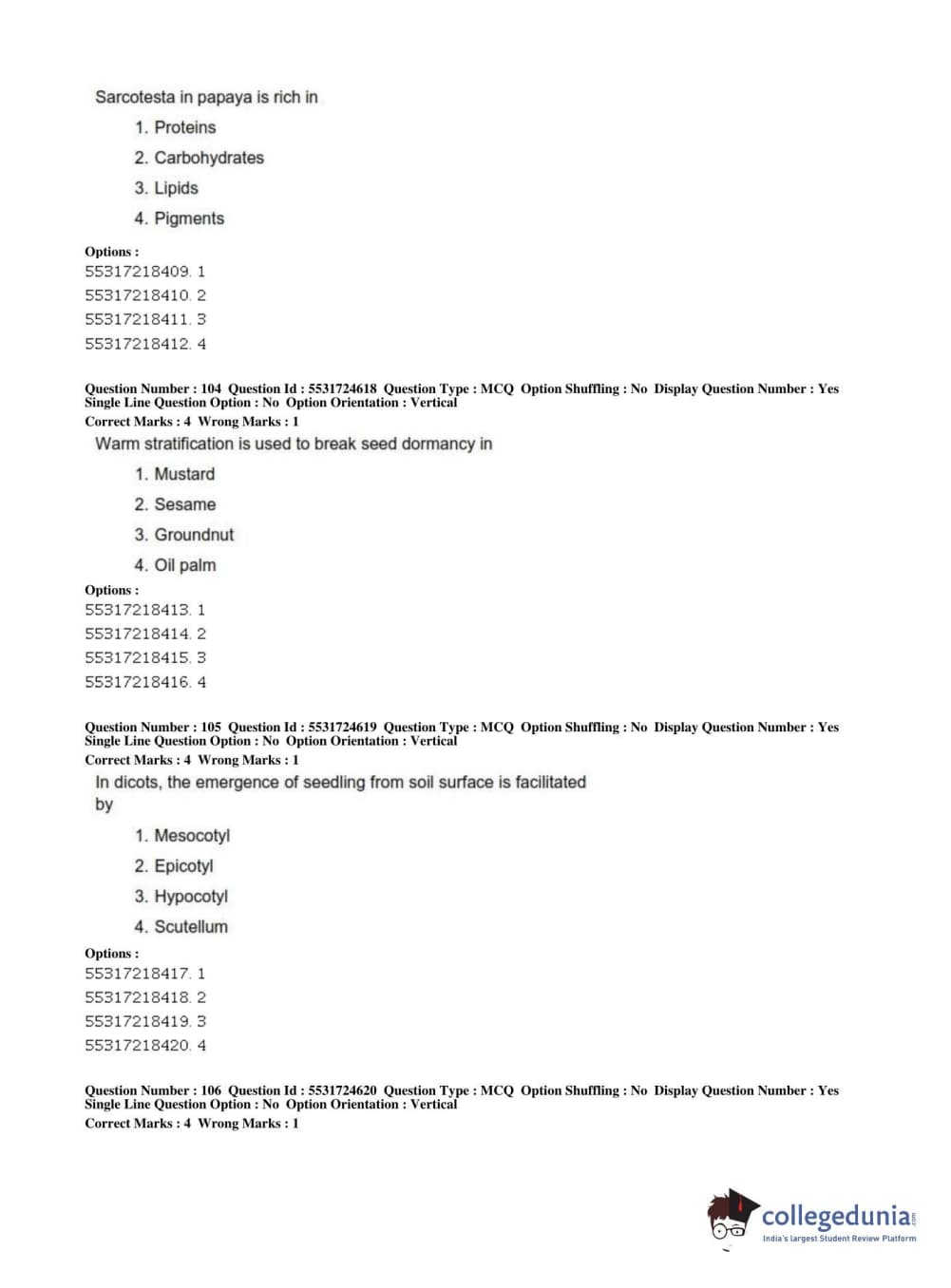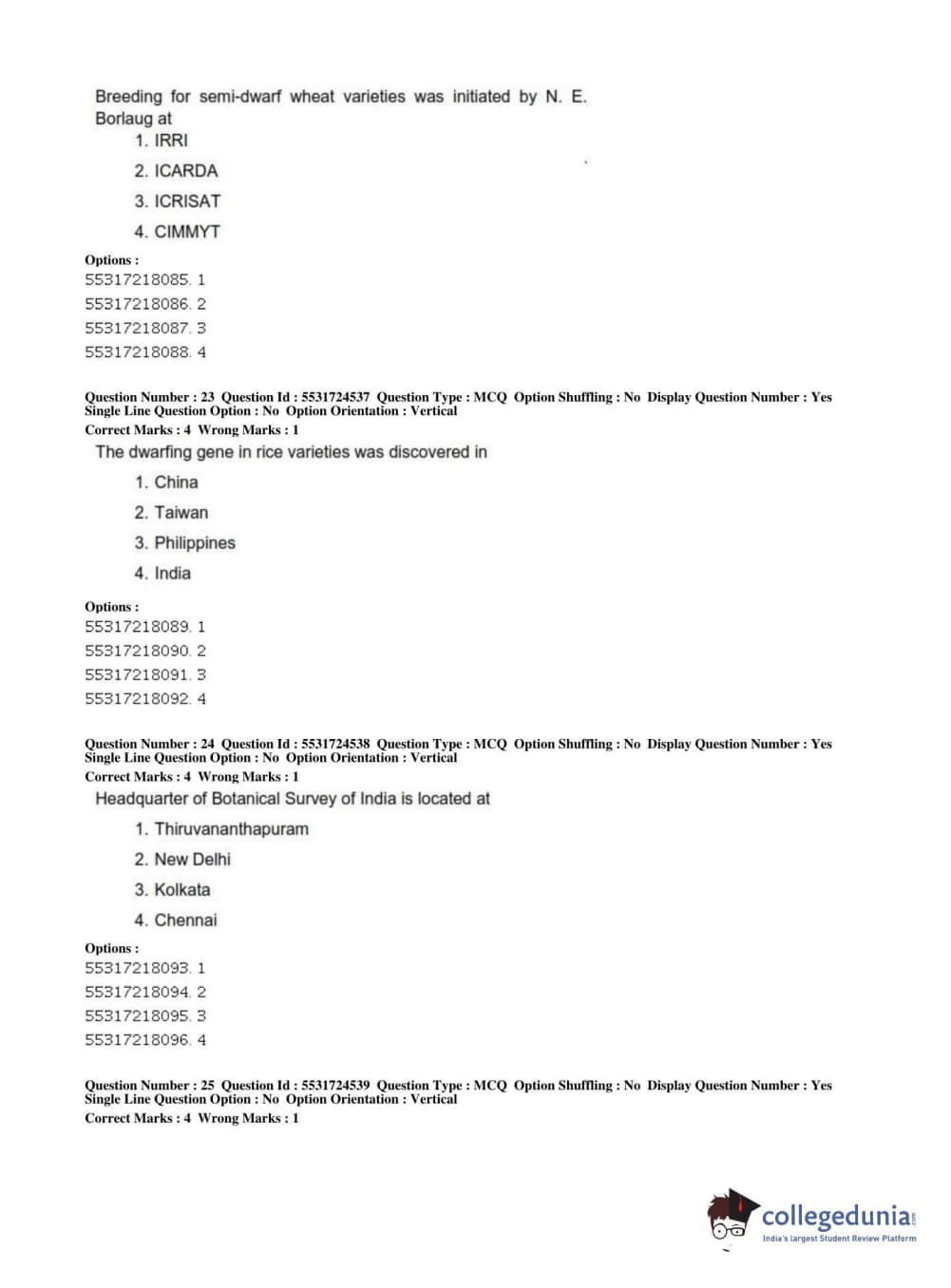 ICAR AIEEA 2019 JRF - CROP SCIENCES I Question Paper with Answer Key PDFs Afternoon Session