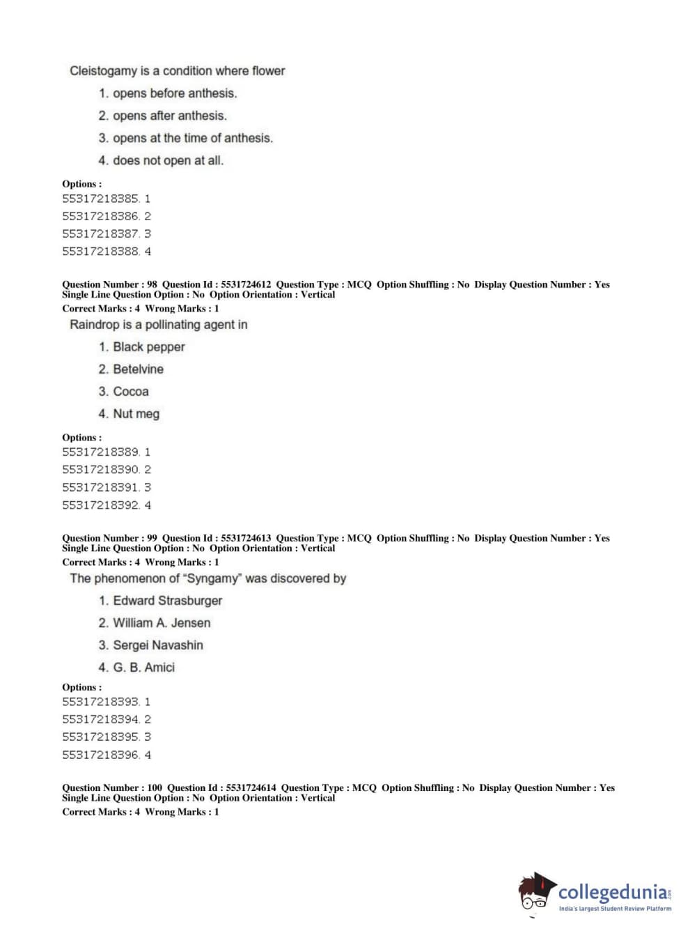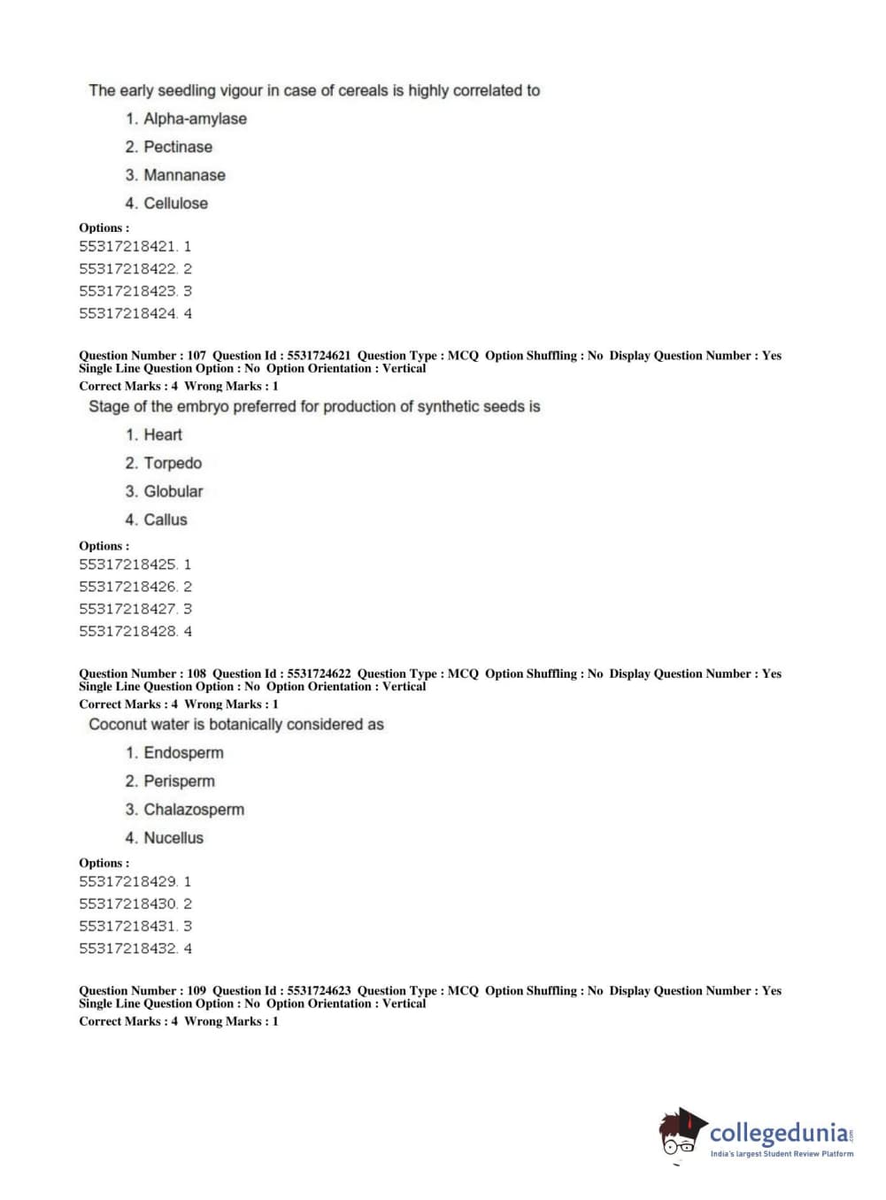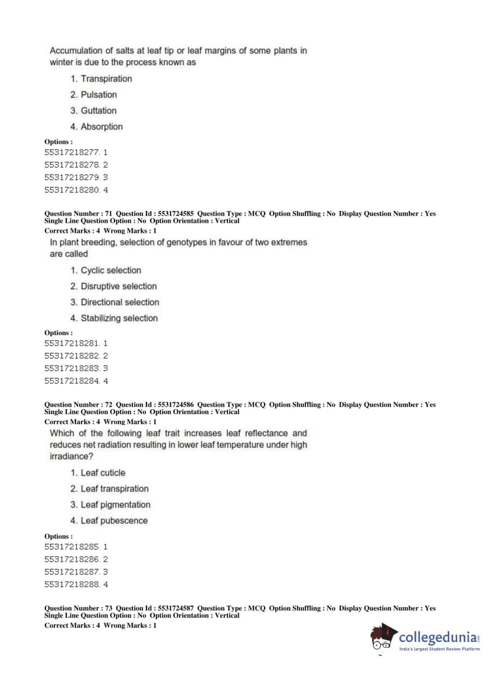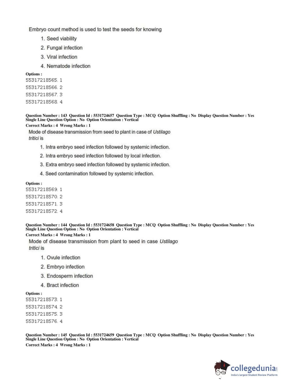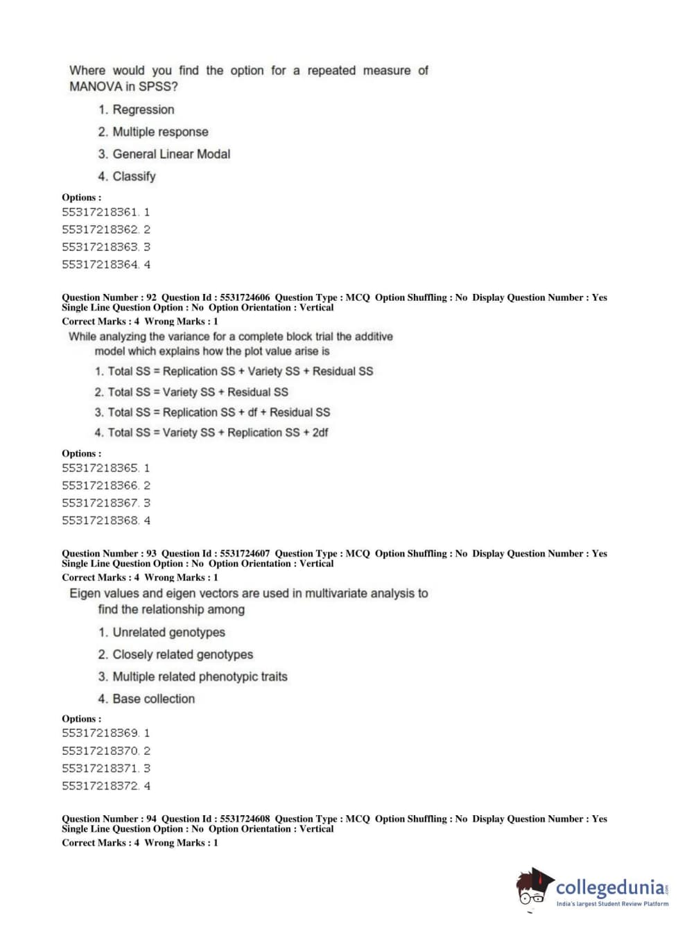 ICAR AIEEA 2019 JRF - CROP SCIENCES I Question Paper with Answer Key PDFs Afternoon Session