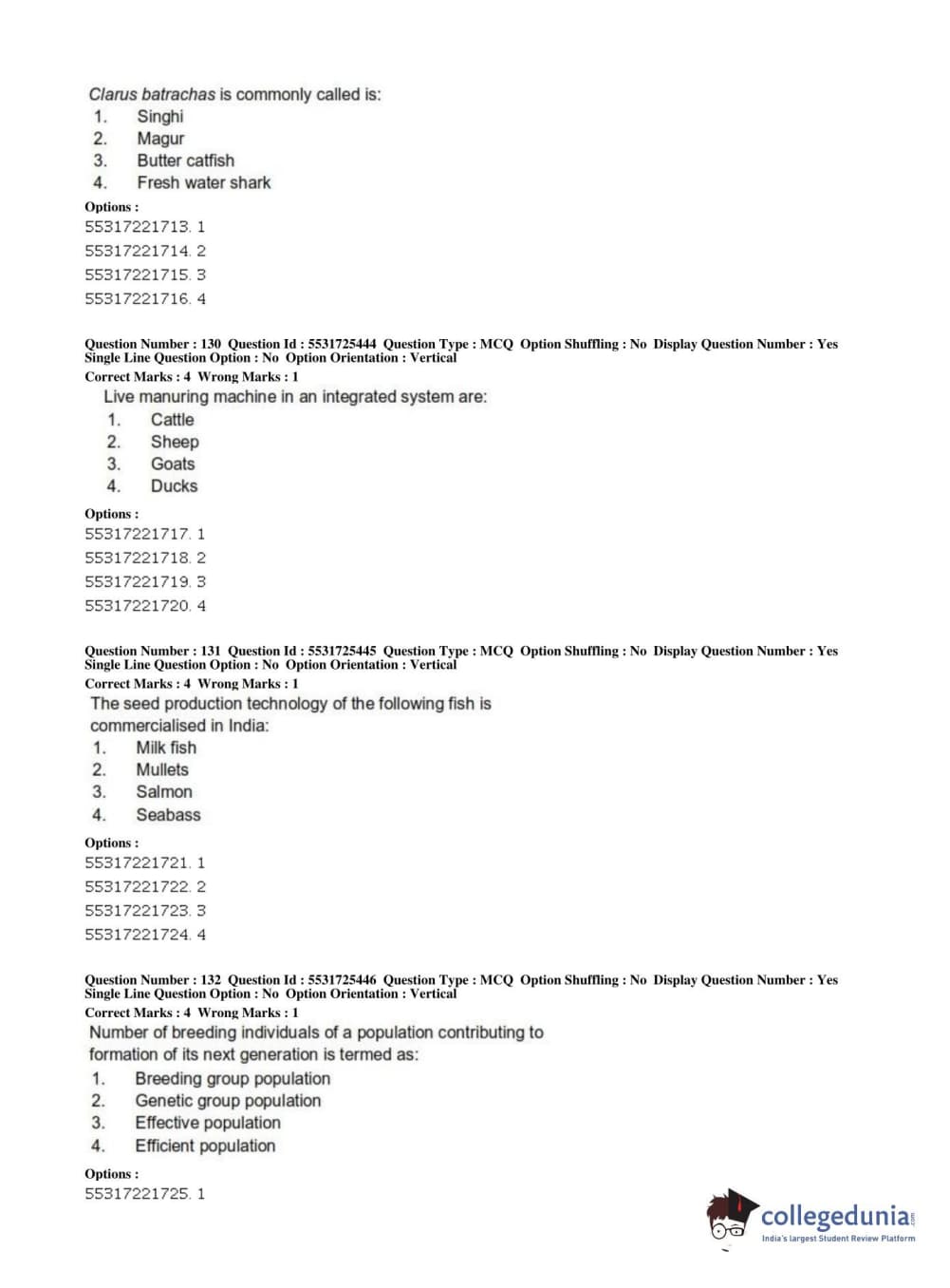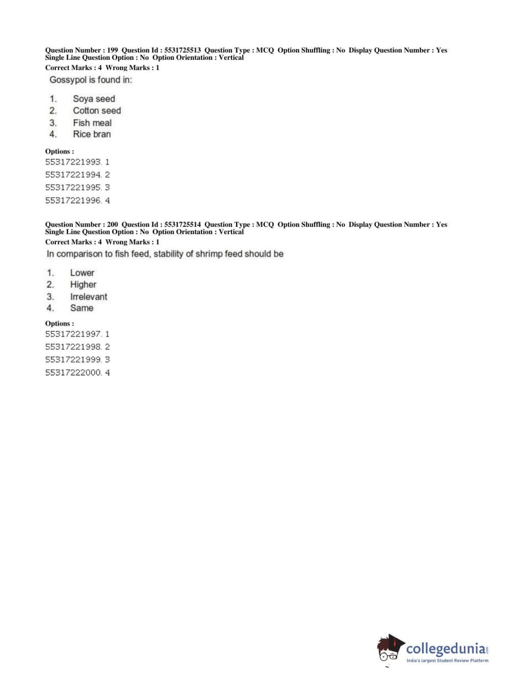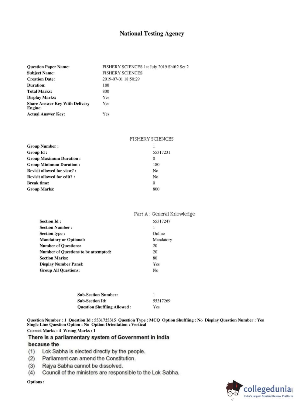 ICAR AIEEA 2019 JRF - FISHERY SCIENCES Question paper with answer key pdf conducted on July 1, 2019 in Afternoon Session is available for download. The exam was successfully organized by National Testing Agency (NTA). The question paper comprised a total of 200 questions.