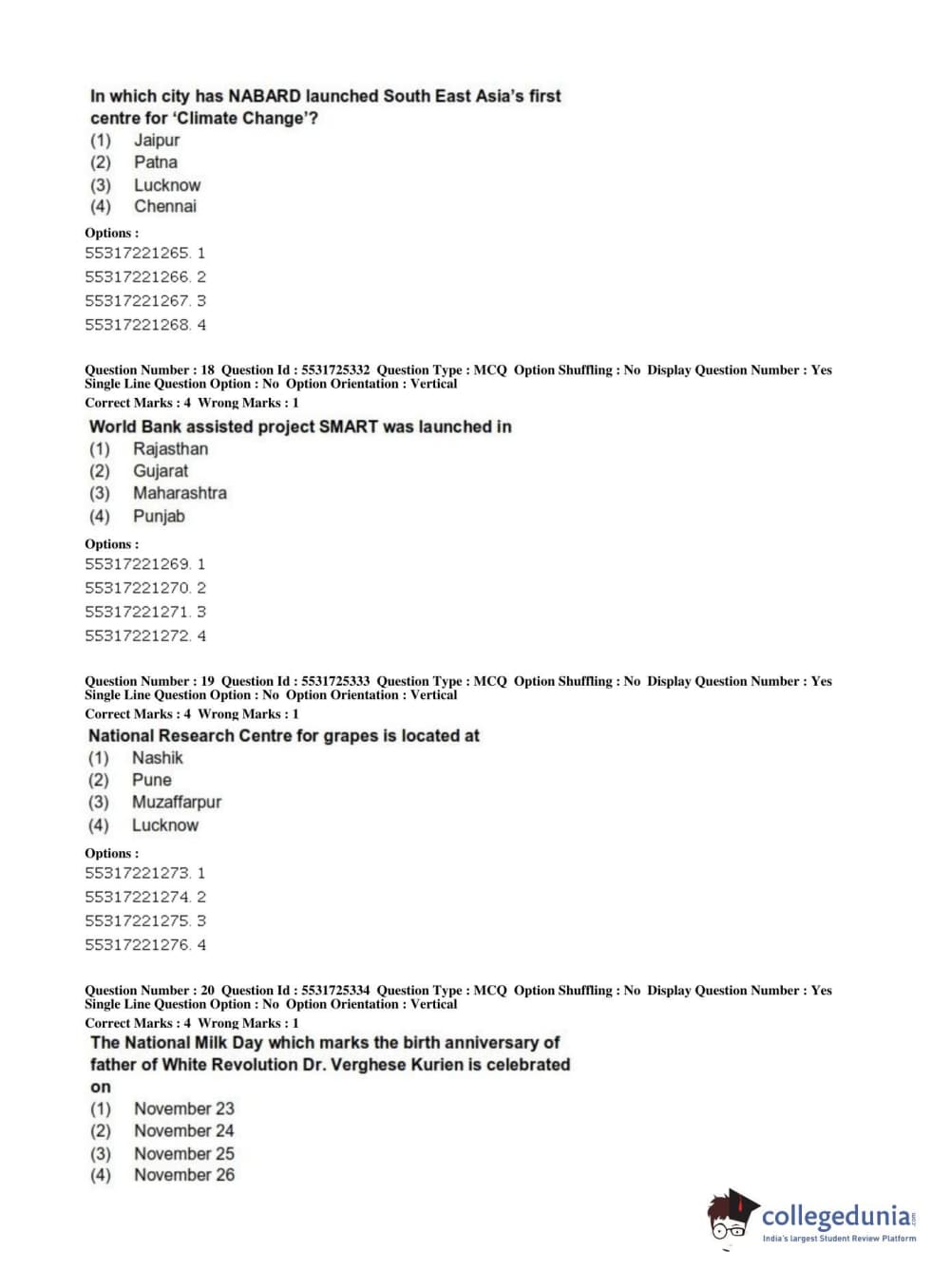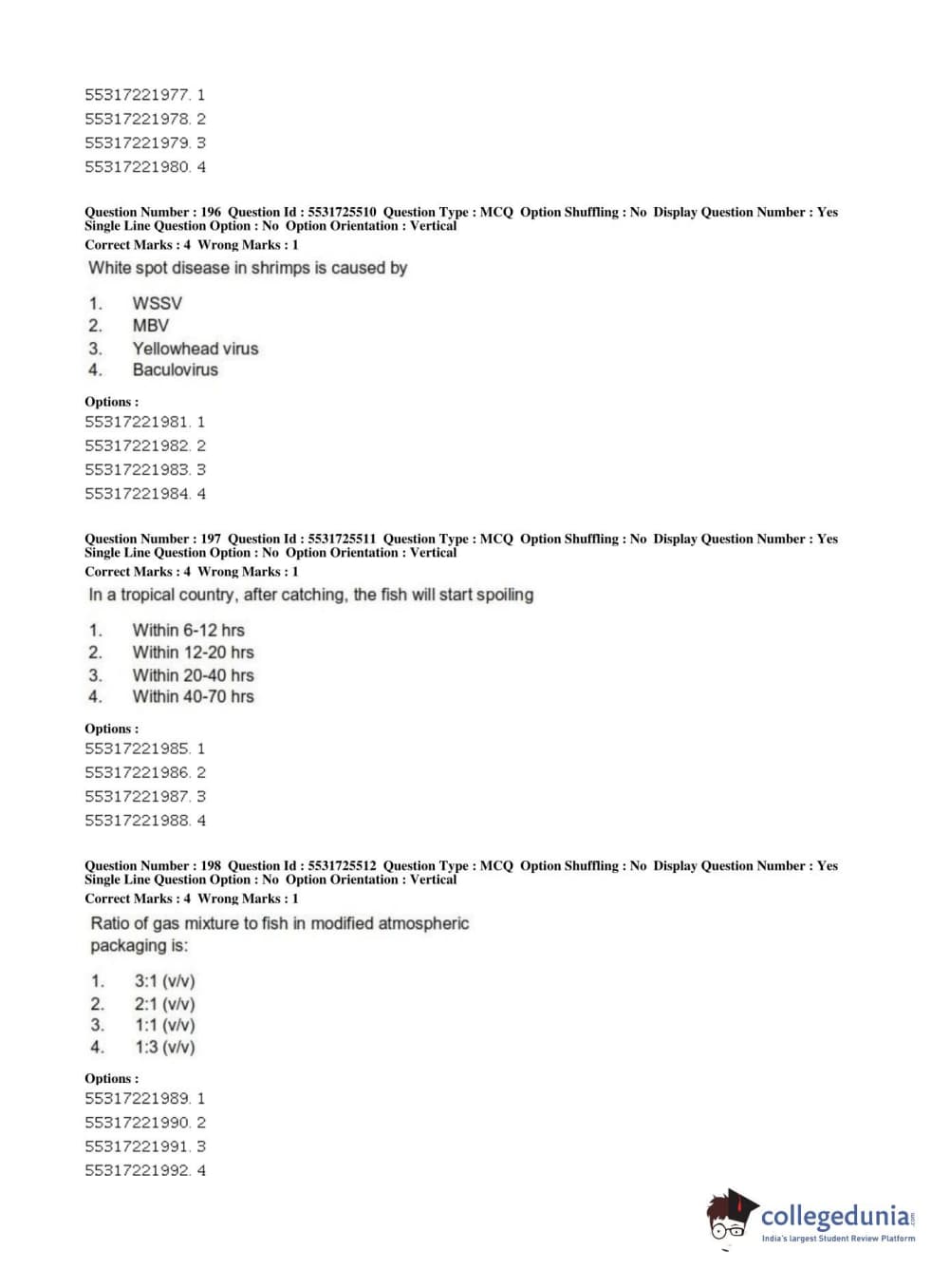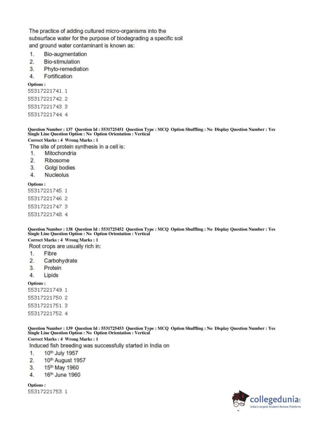 ICAR AIEEA 2019 JRF - FISHERY SCIENCES Question paper with answer key pdf conducted on July 1, 2019 in Afternoon Session is available for download. The exam was successfully organized by National Testing Agency (NTA). The question paper comprised a total of 200 questions.