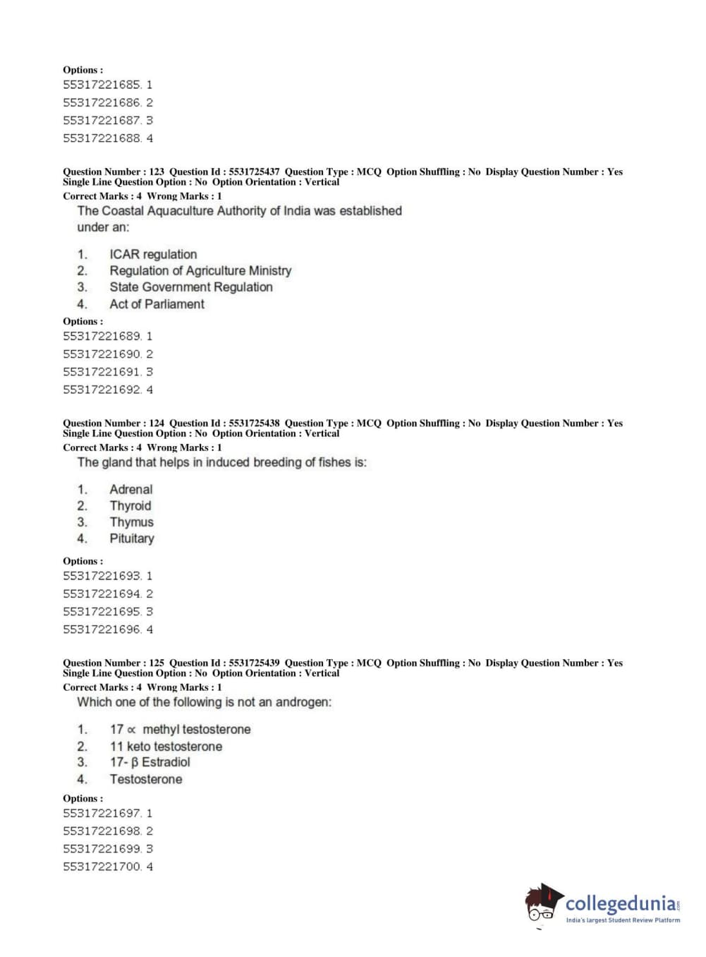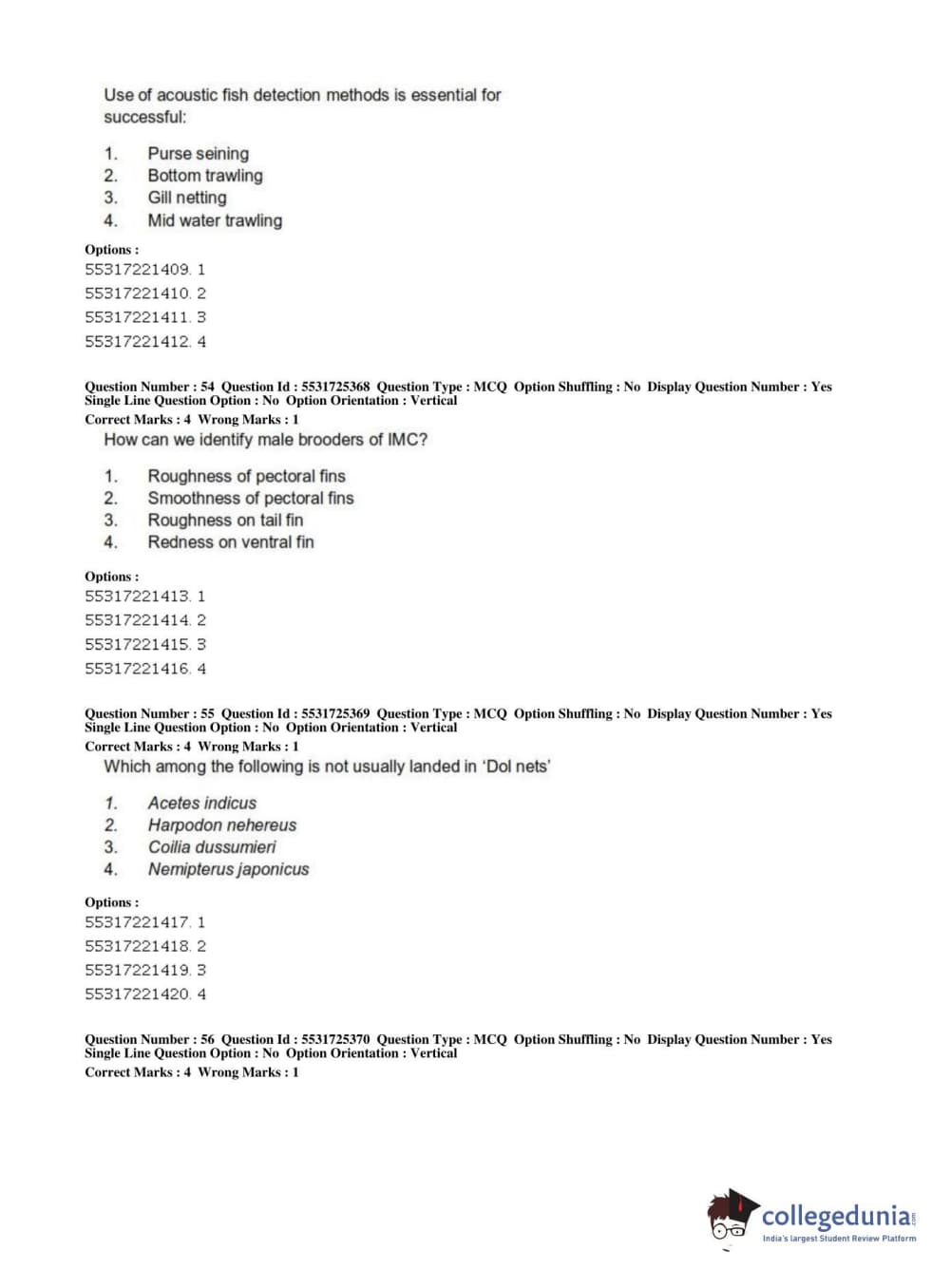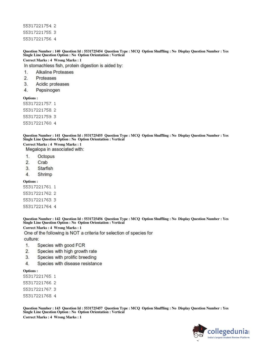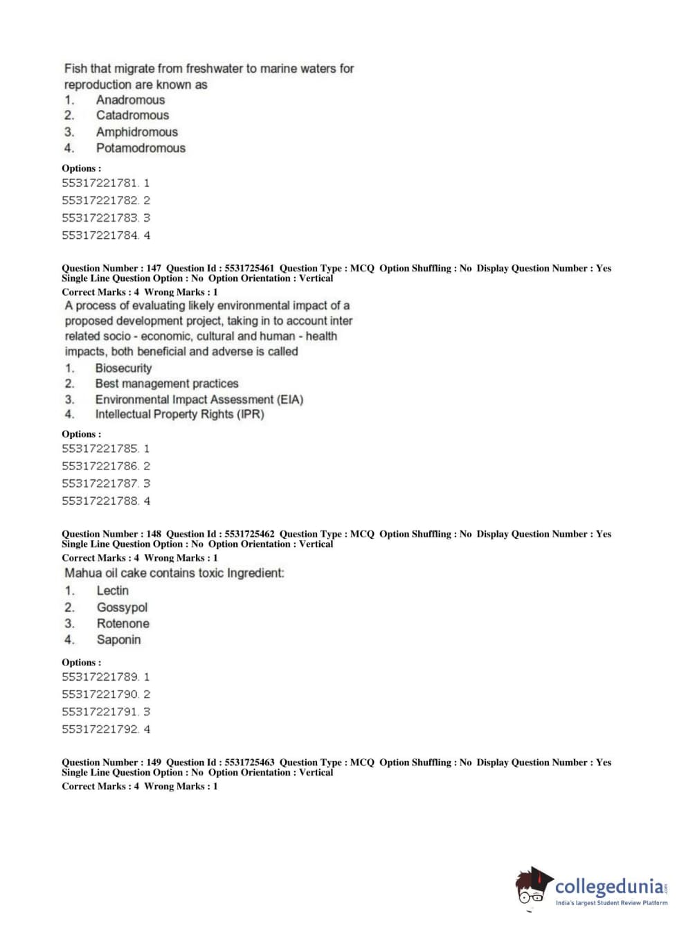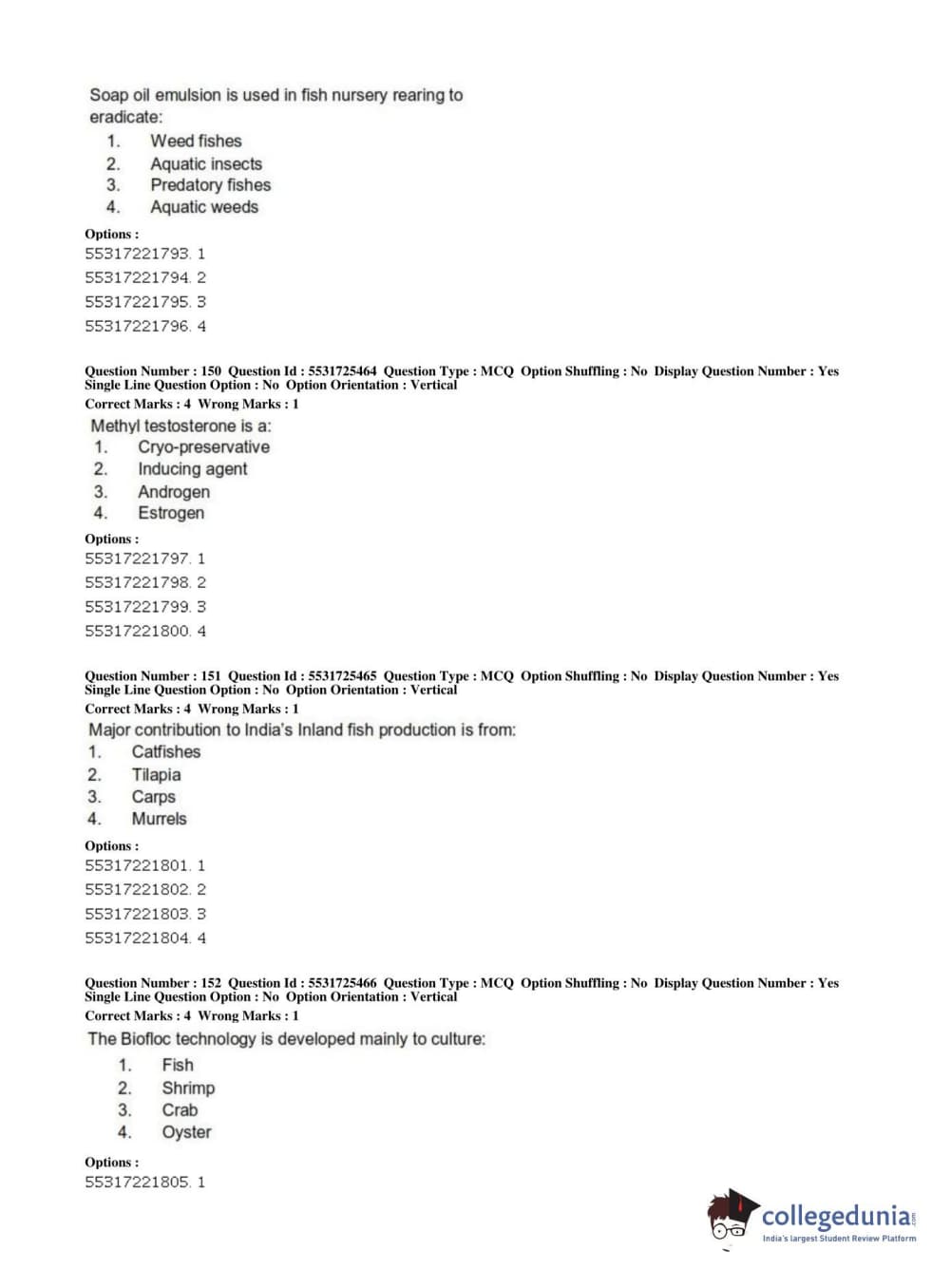ICAR AIEEA 2019 JRF - FISHERY SCIENCES Question Paper with Answer Key PDFs Afternoon Session