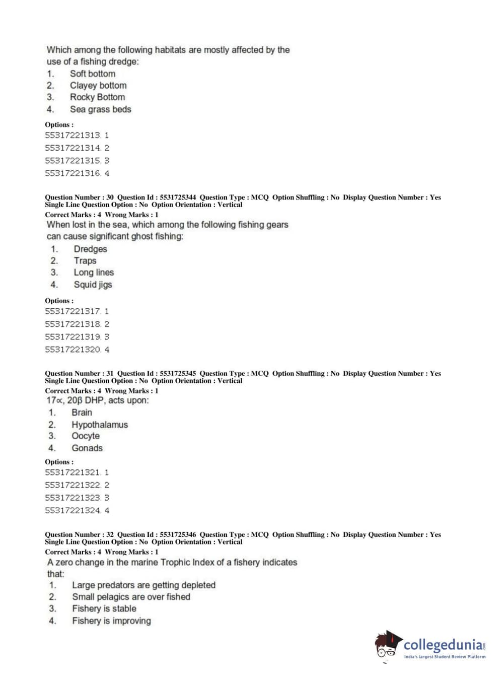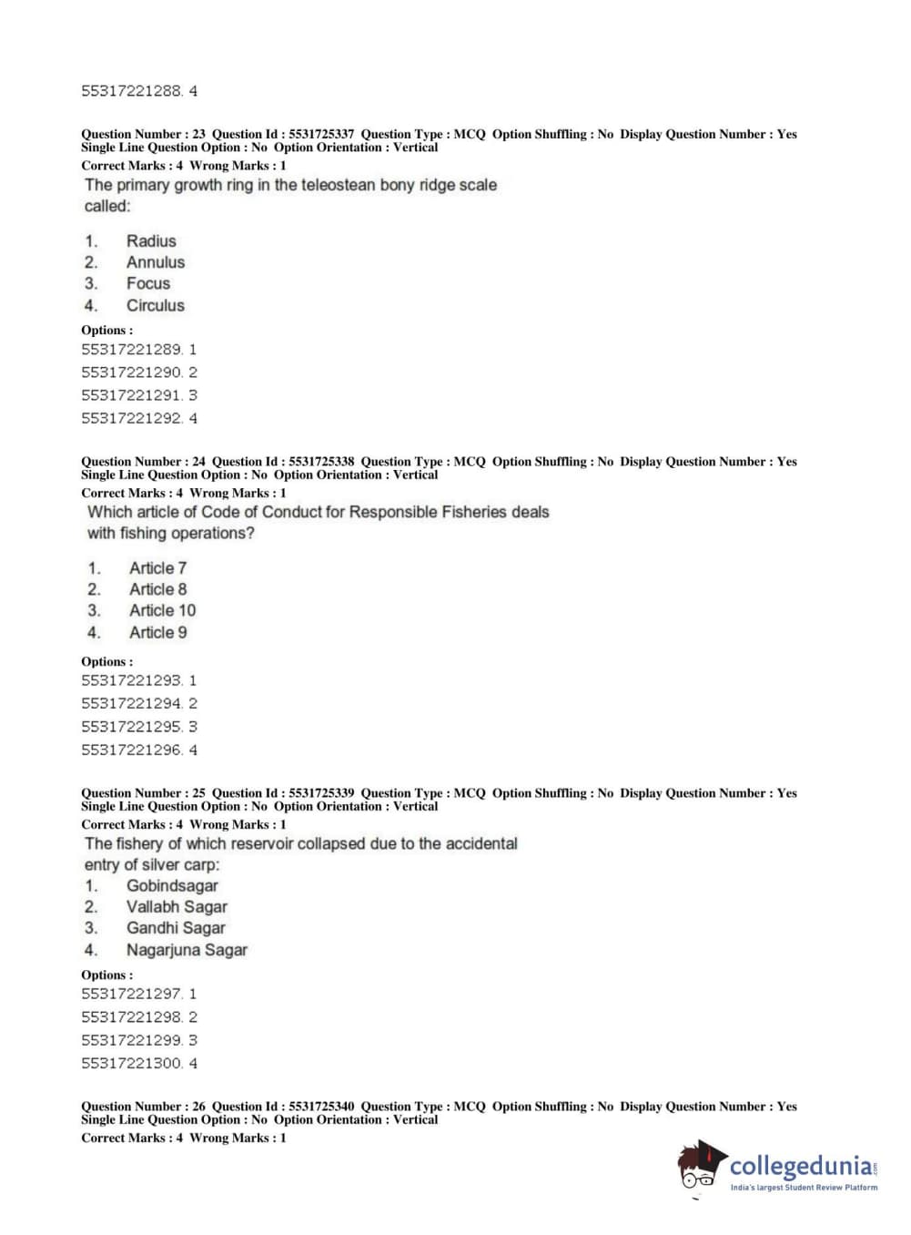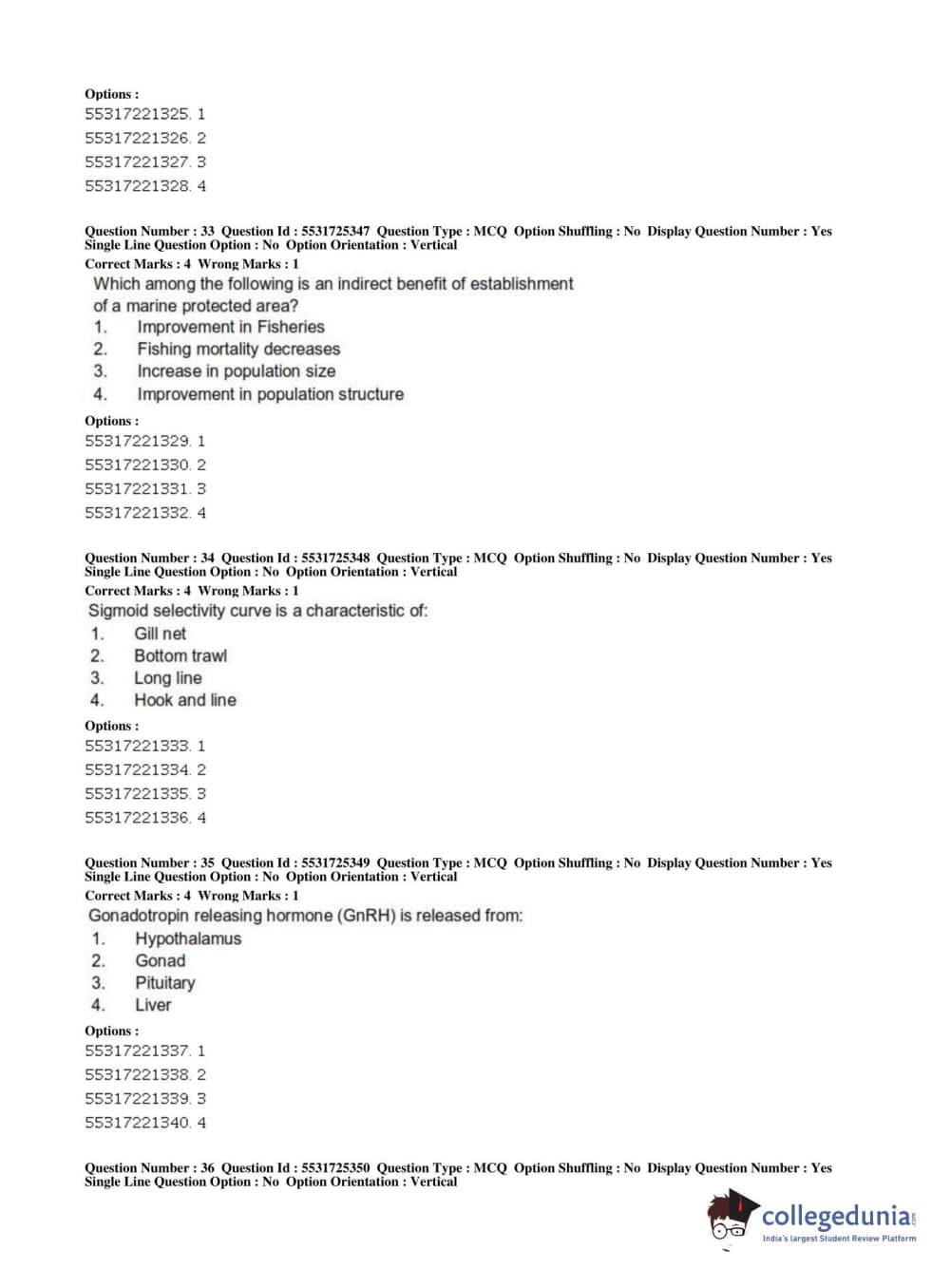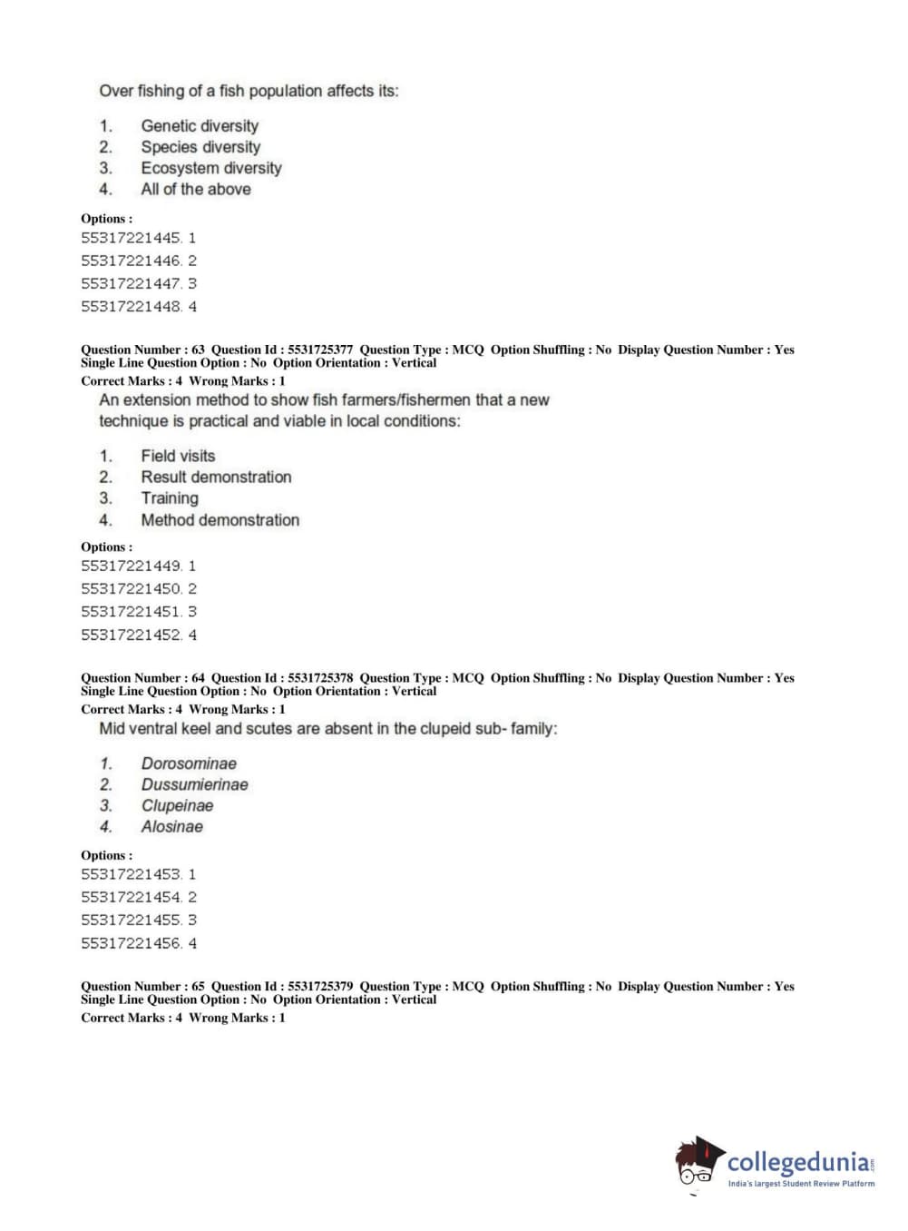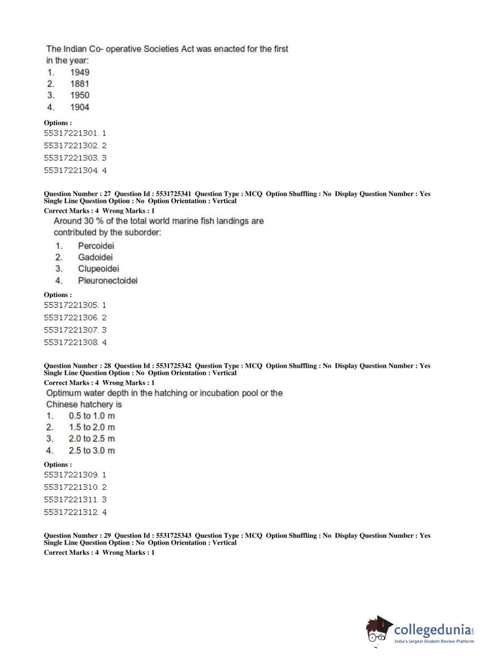 ICAR AIEEA 2019 JRF - FISHERY SCIENCES Question Paper with Answer Key PDFs Afternoon Session