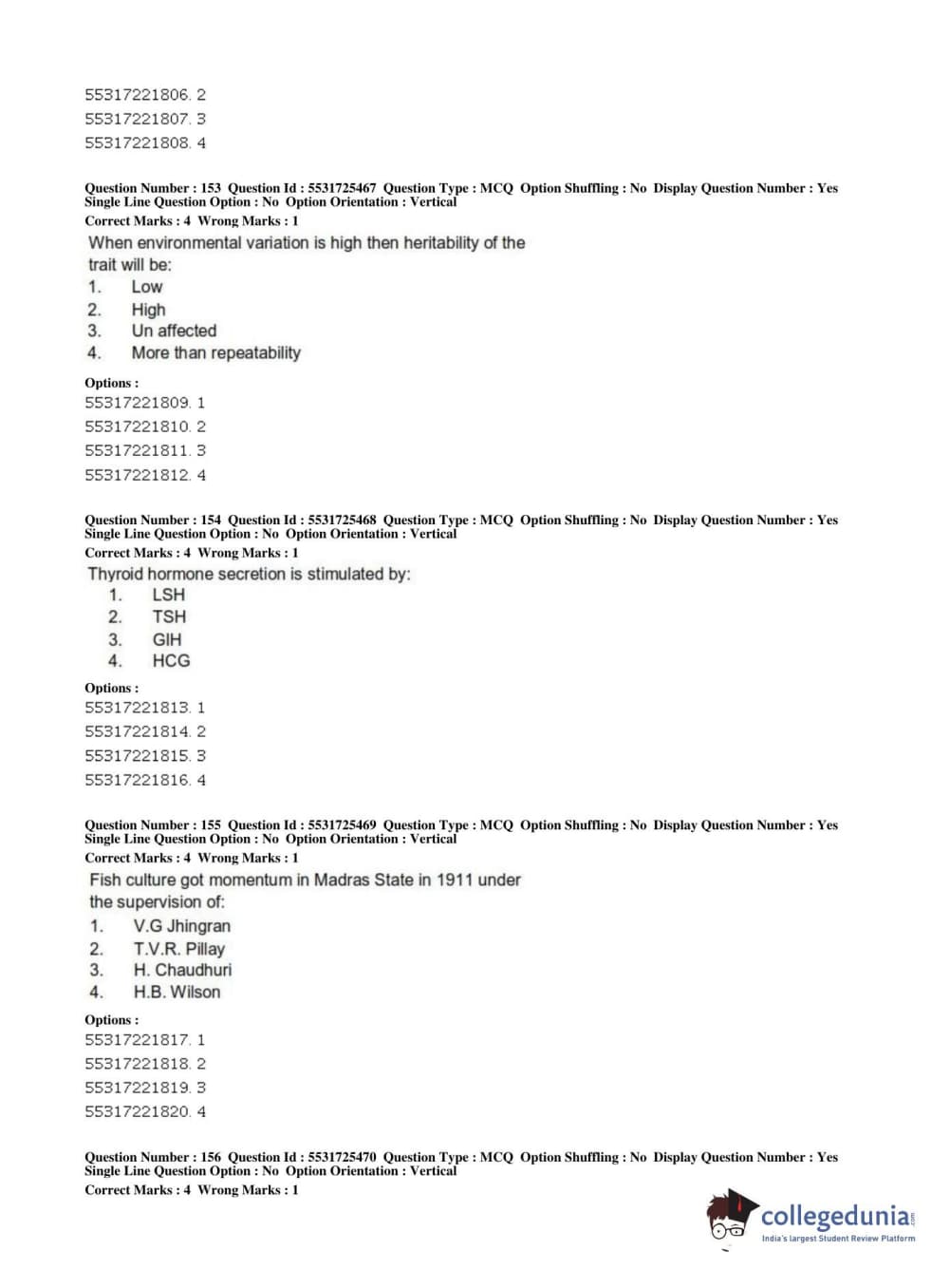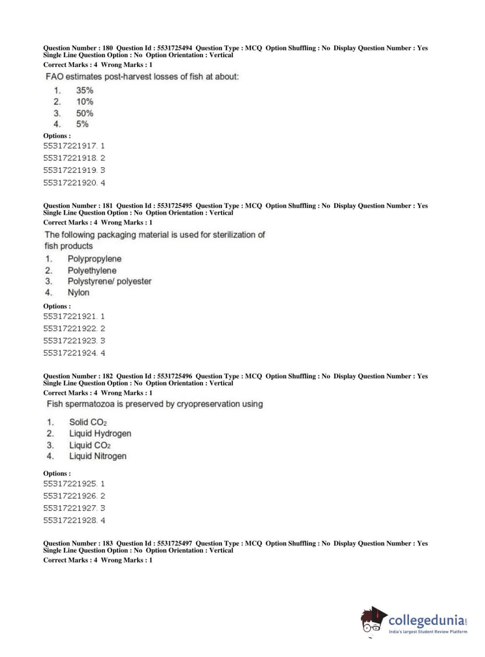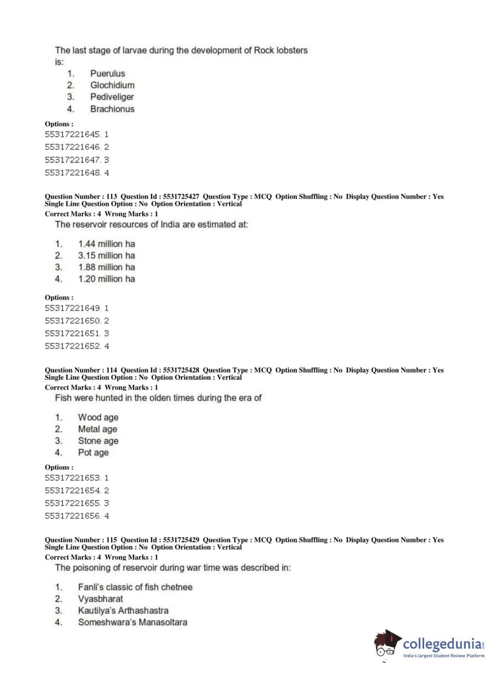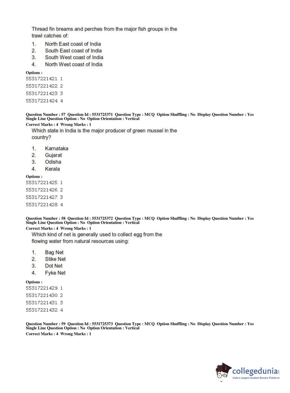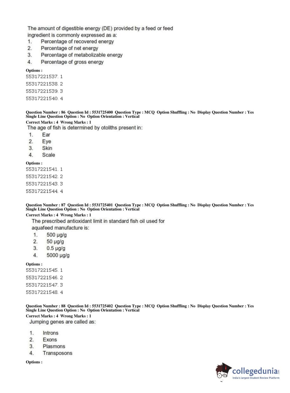 ICAR AIEEA 2019 JRF - FISHERY SCIENCES Question Paper with Answer Key PDFs Afternoon Session