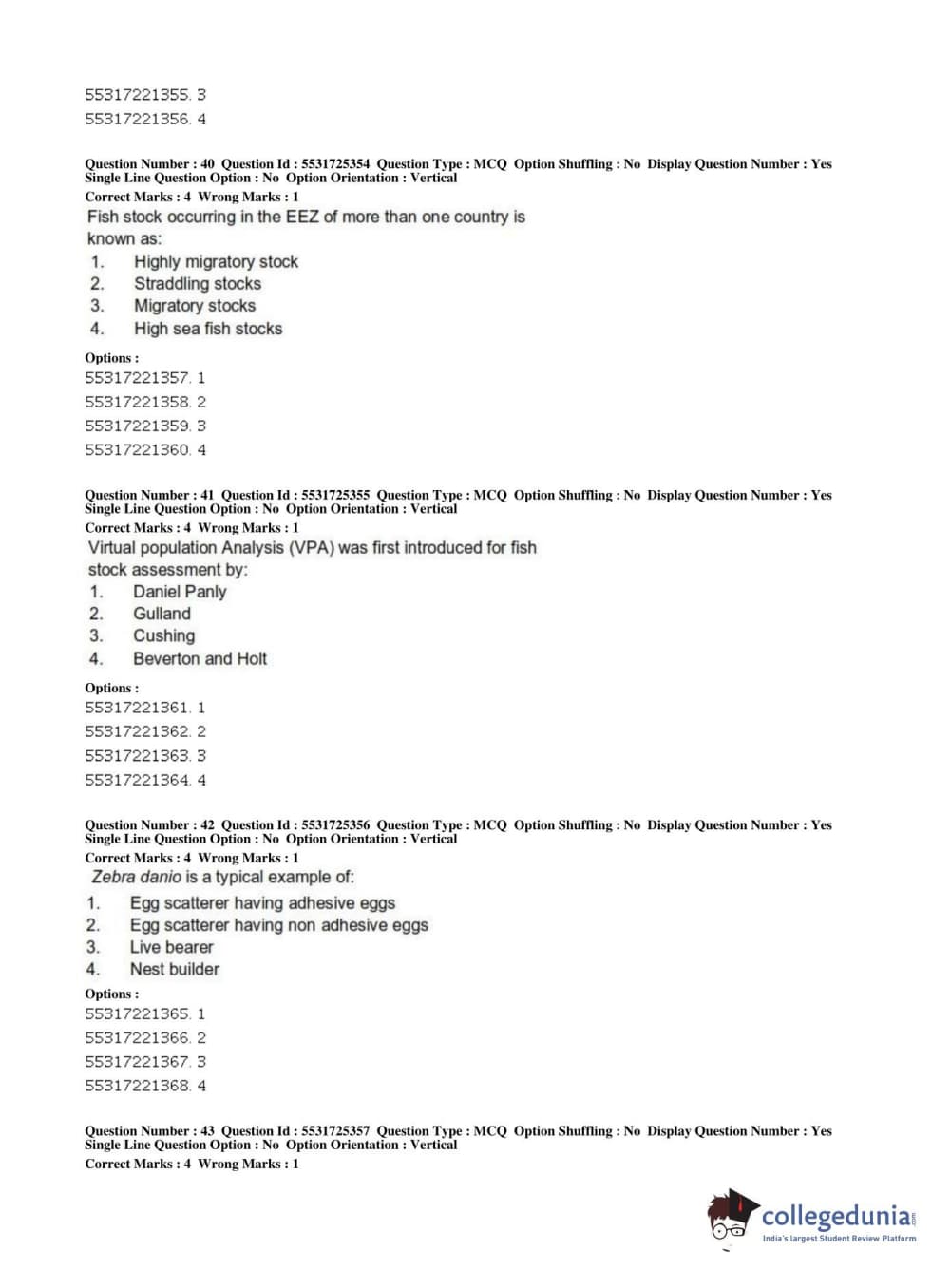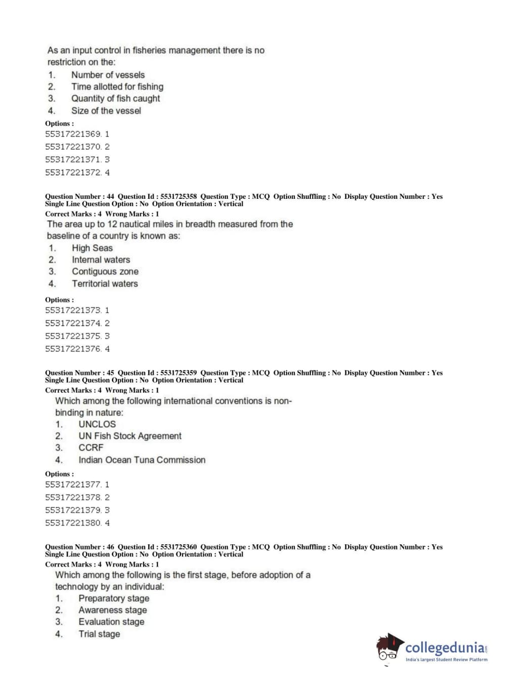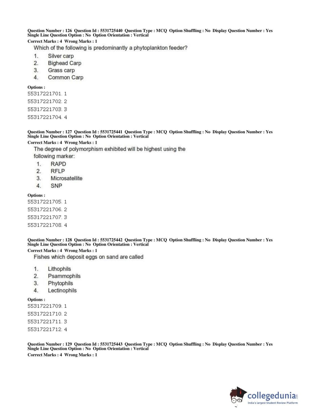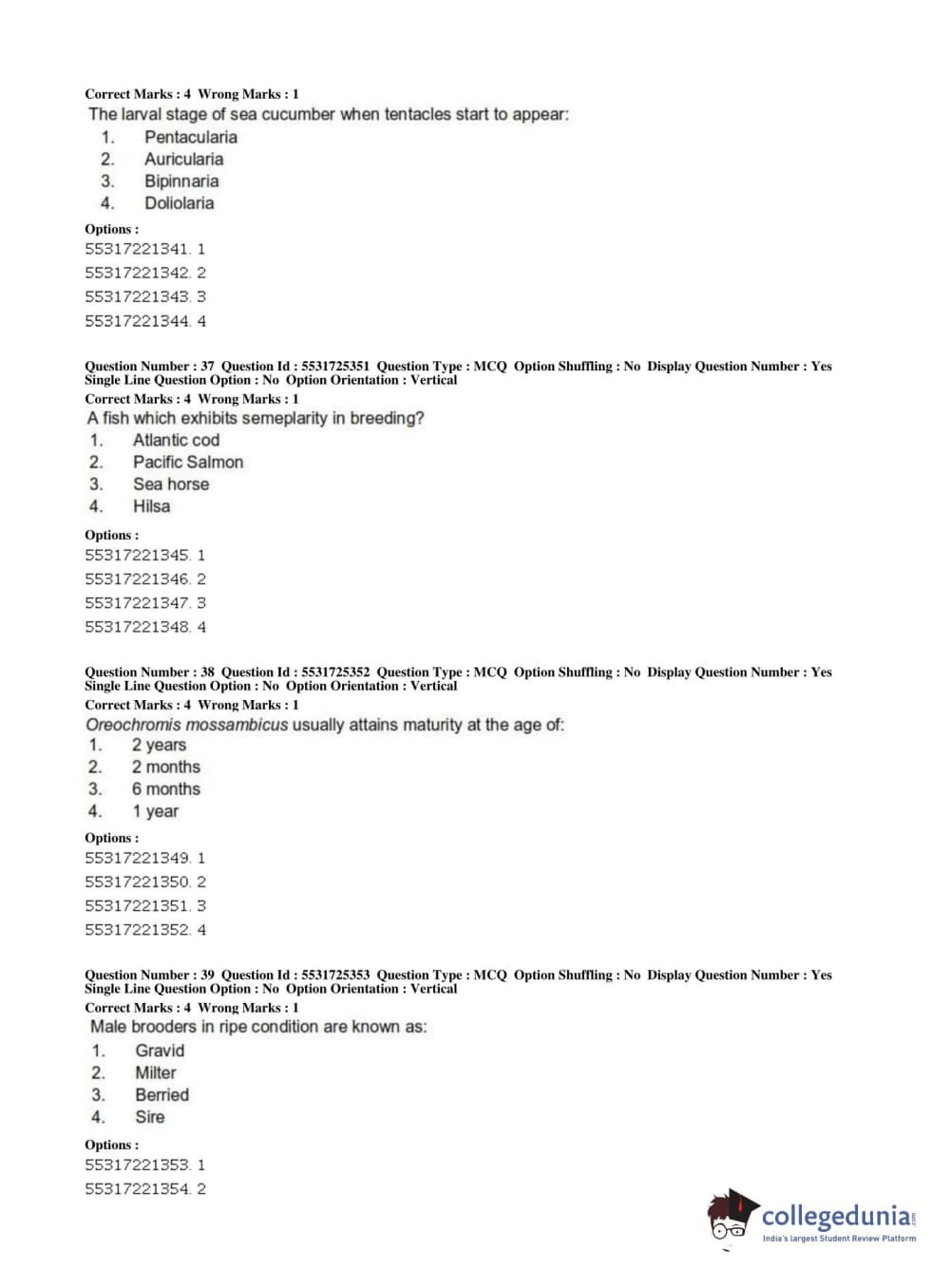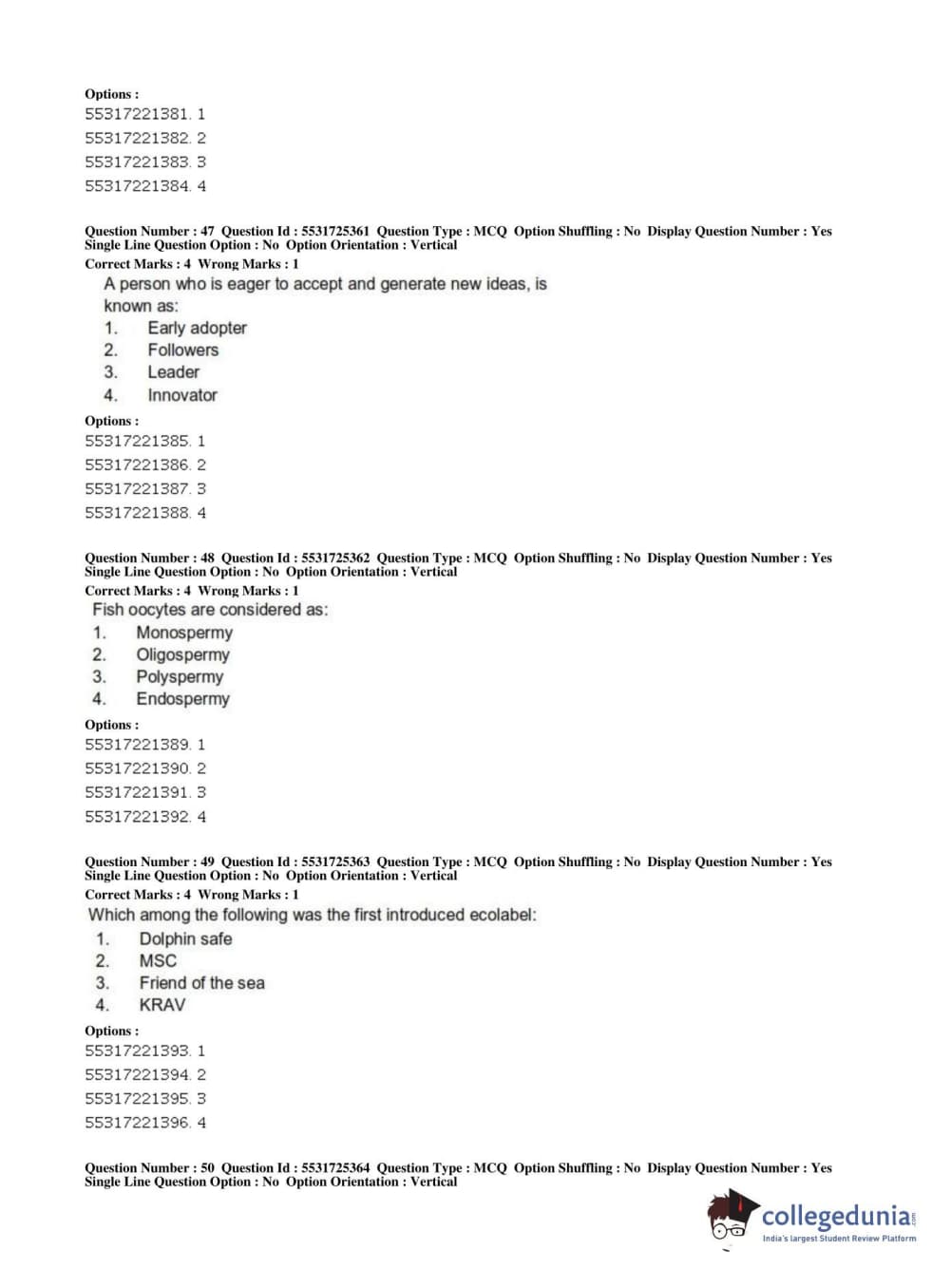 ICAR AIEEA 2019 JRF - FISHERY SCIENCES Question Paper with Answer Key PDFs Afternoon Session
