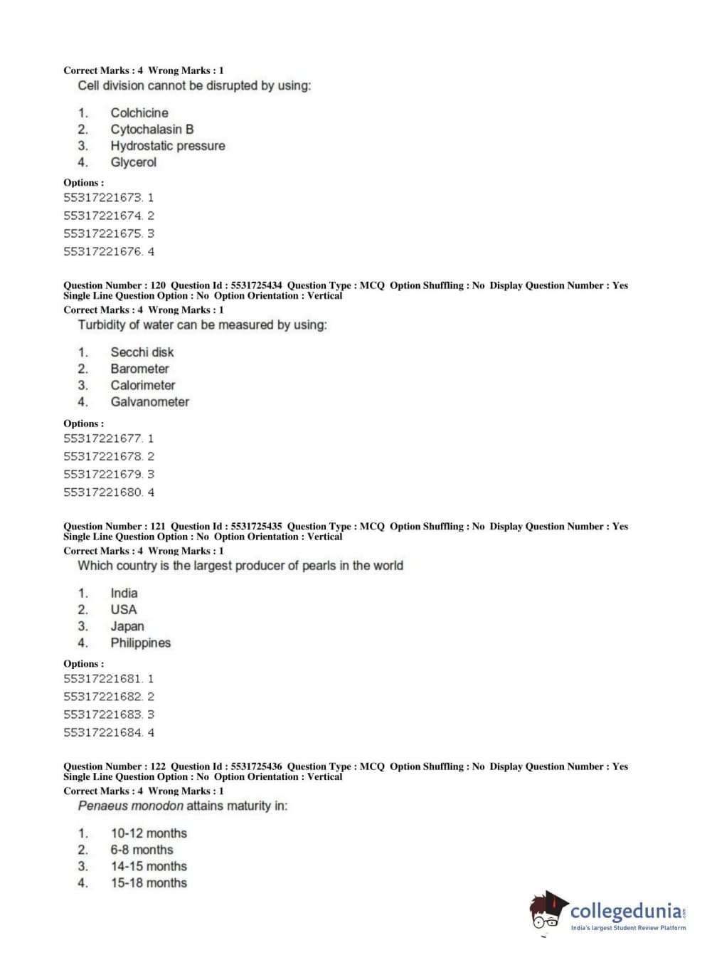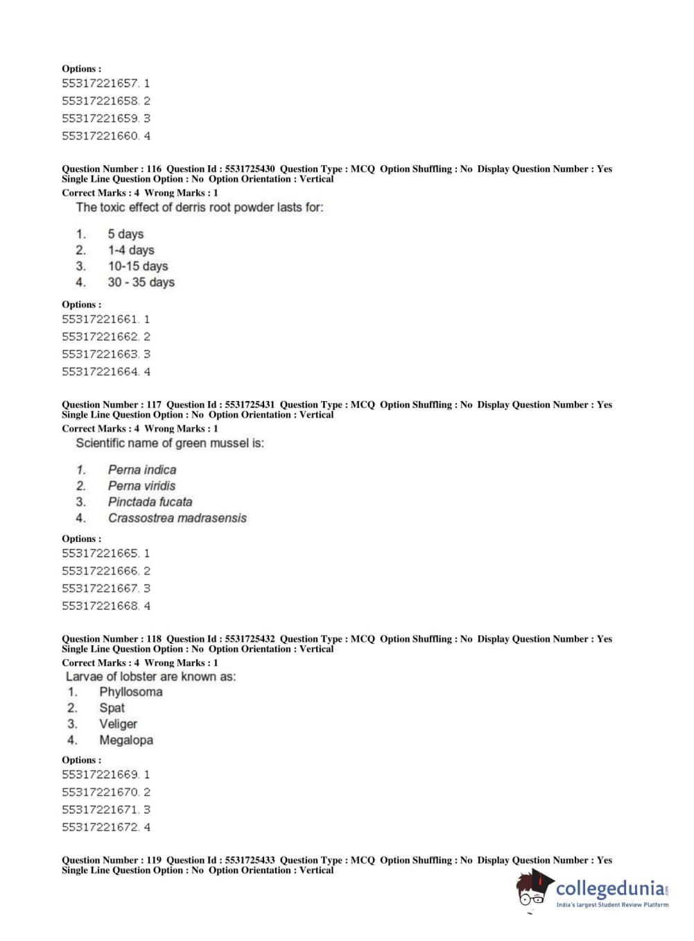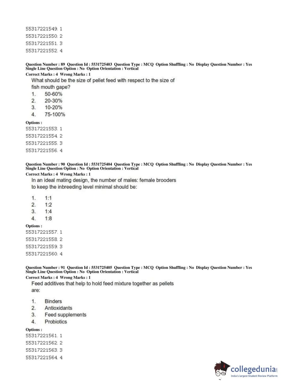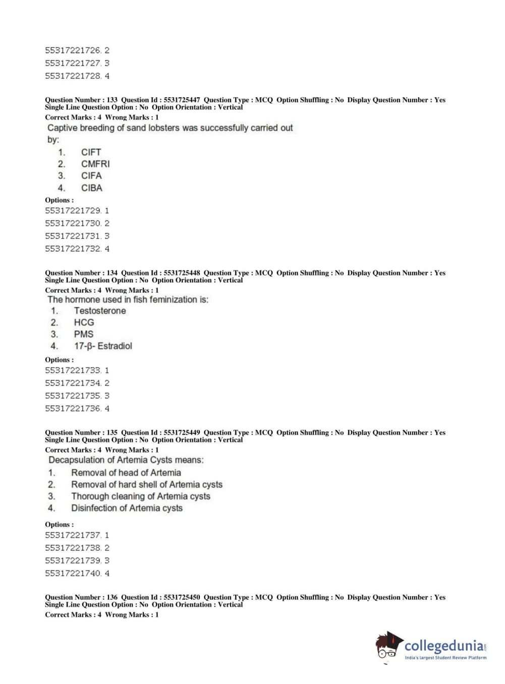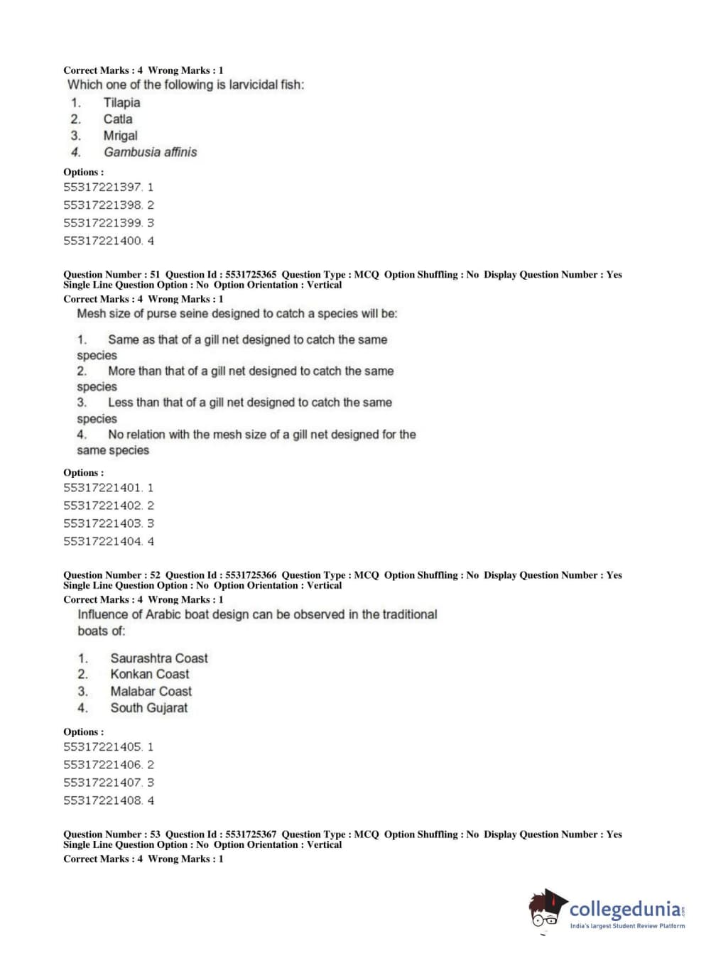ICAR AIEEA 2019 JRF - FISHERY SCIENCES Question Paper with Answer Key PDFs Afternoon Session