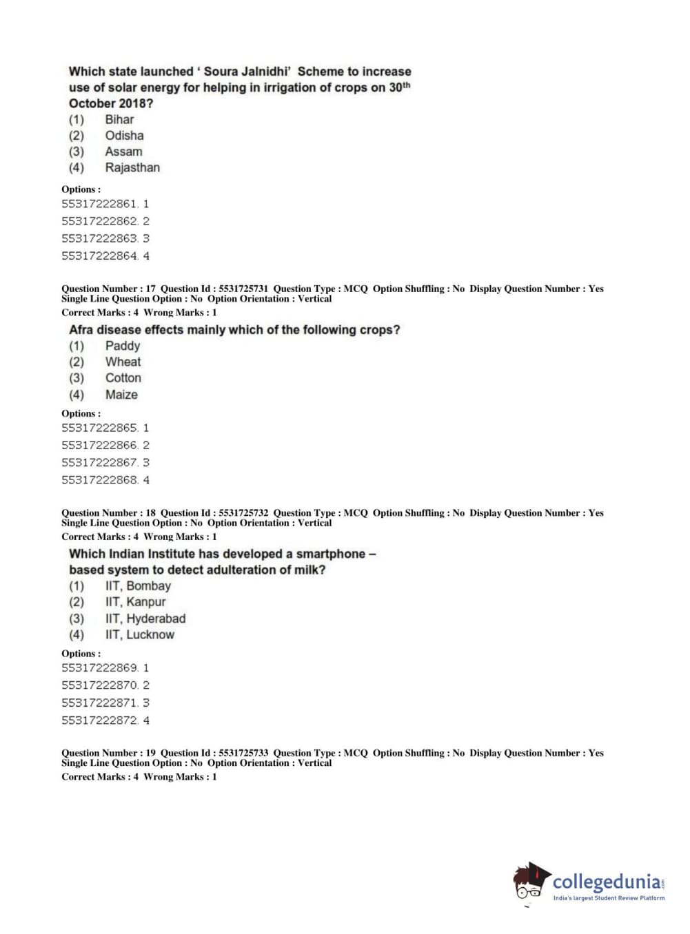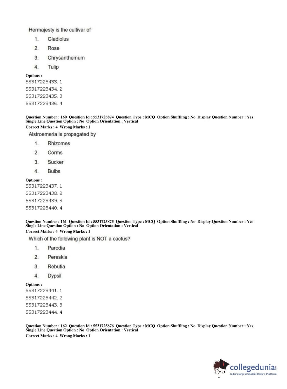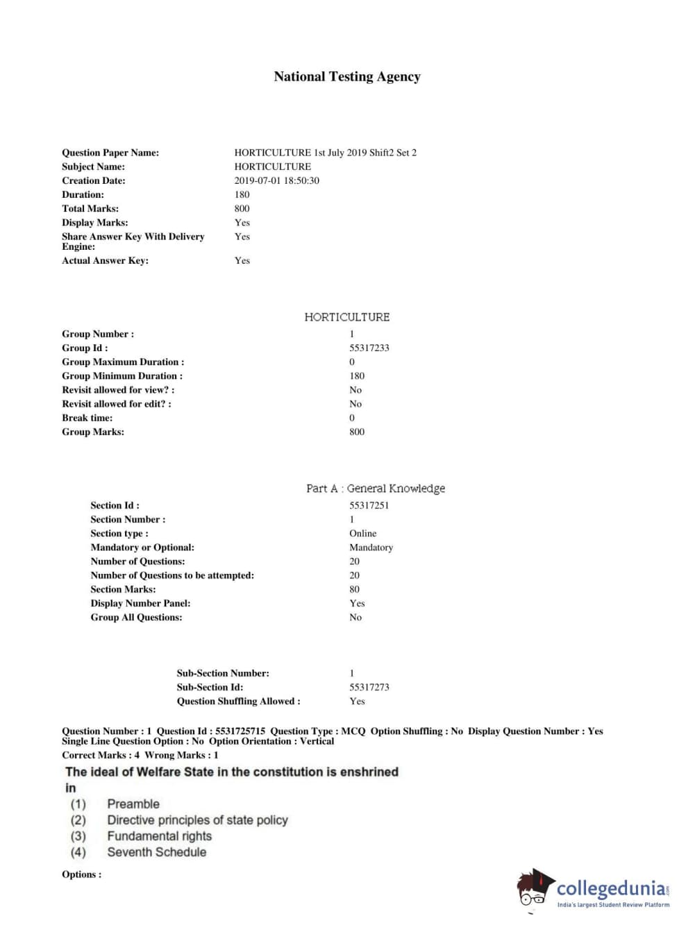 ICAR AIEEA 2019 JRF - HORTICULTURE Question paper with answer key pdf conducted on July 1, 2019 in Afternoon Session is available for download. The exam was successfully organized by National Testing Agency (NTA). The question paper comprised a total of 200 questions.