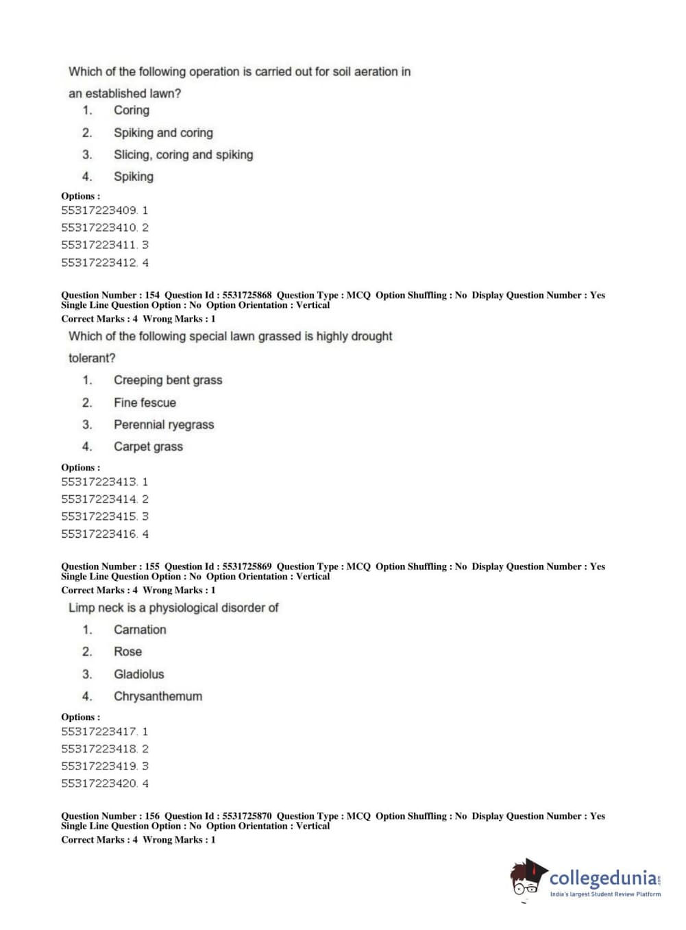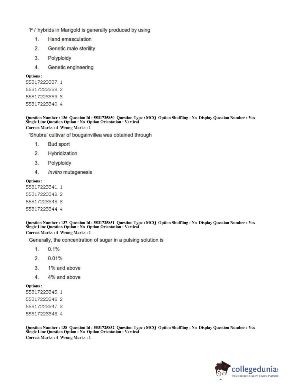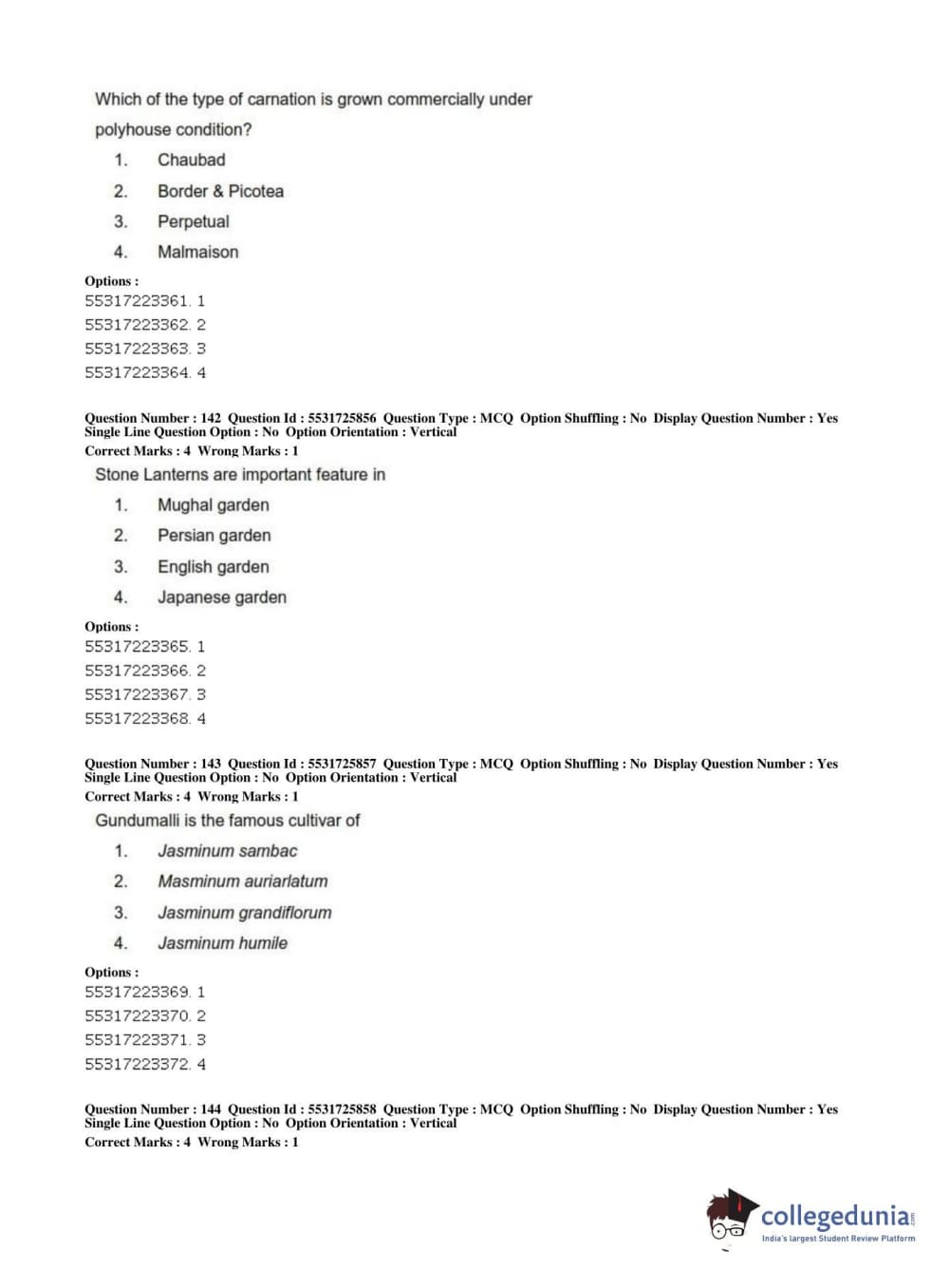 ICAR AIEEA 2019 JRF - HORTICULTURE Question paper with answer key pdf conducted on July 1, 2019 in Afternoon Session is available for download. The exam was successfully organized by National Testing Agency (NTA). The question paper comprised a total of 200 questions.