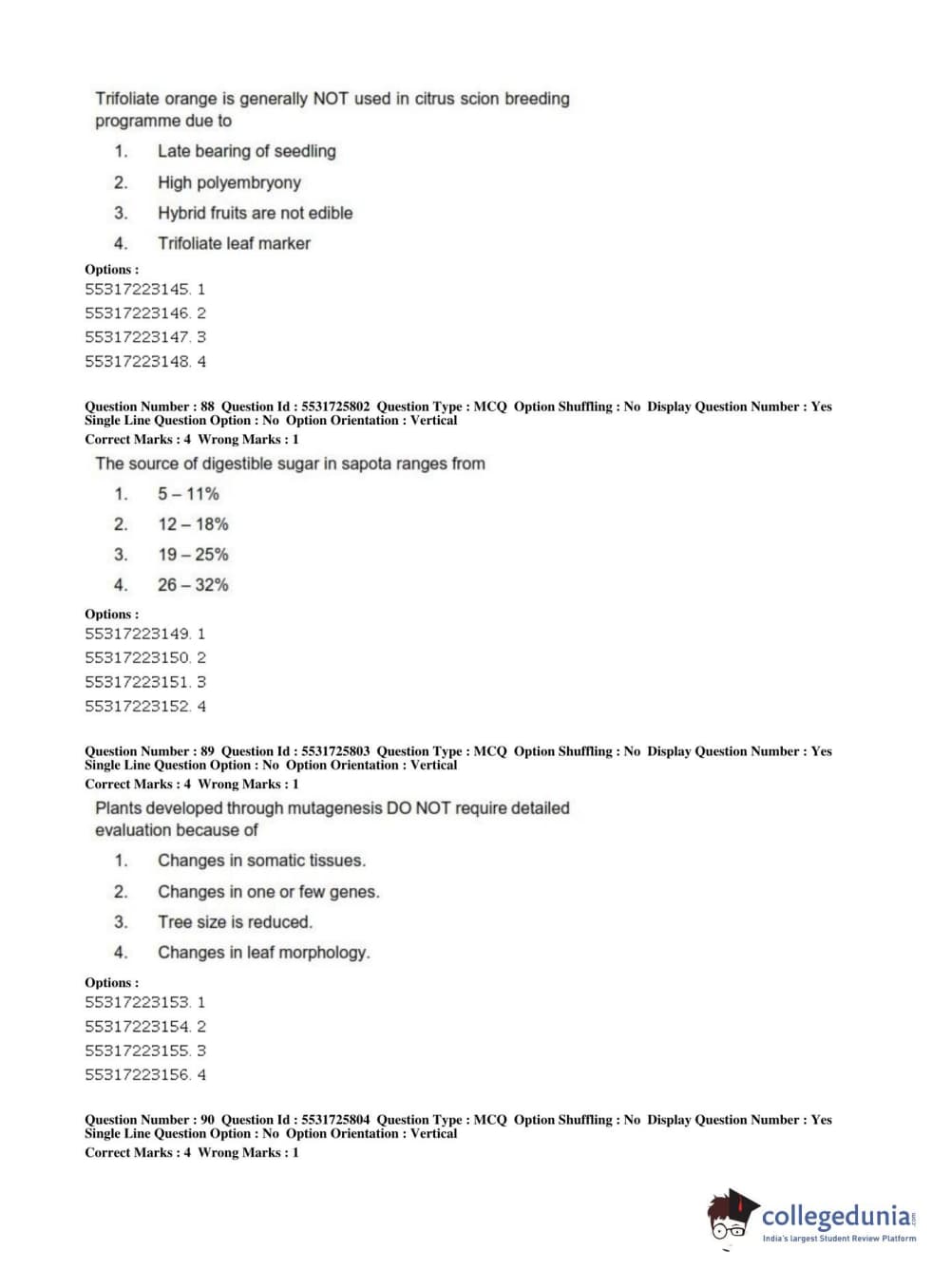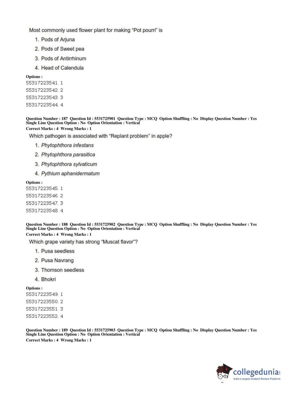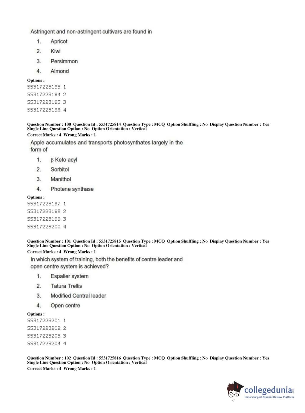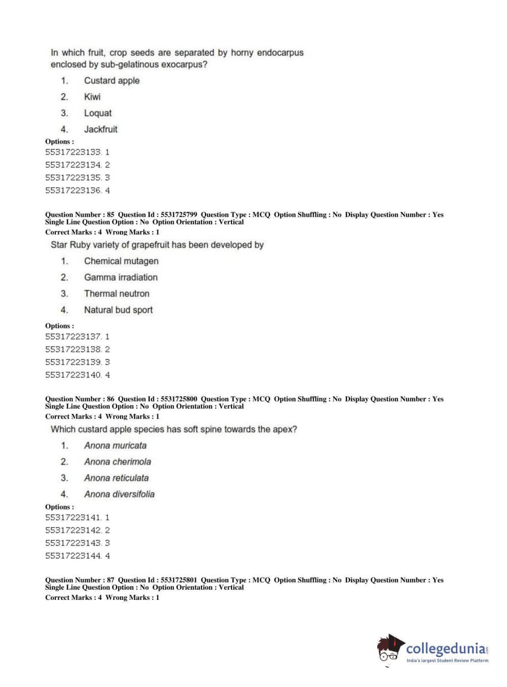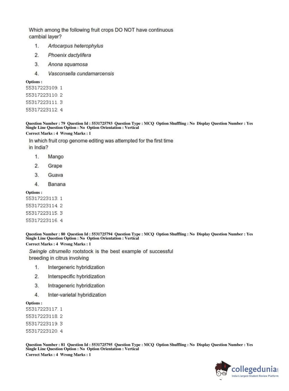 ICAR AIEEA 2019 JRF - HORTICULTURE Question Paper with Answer Key PDFs Afternoon Session
