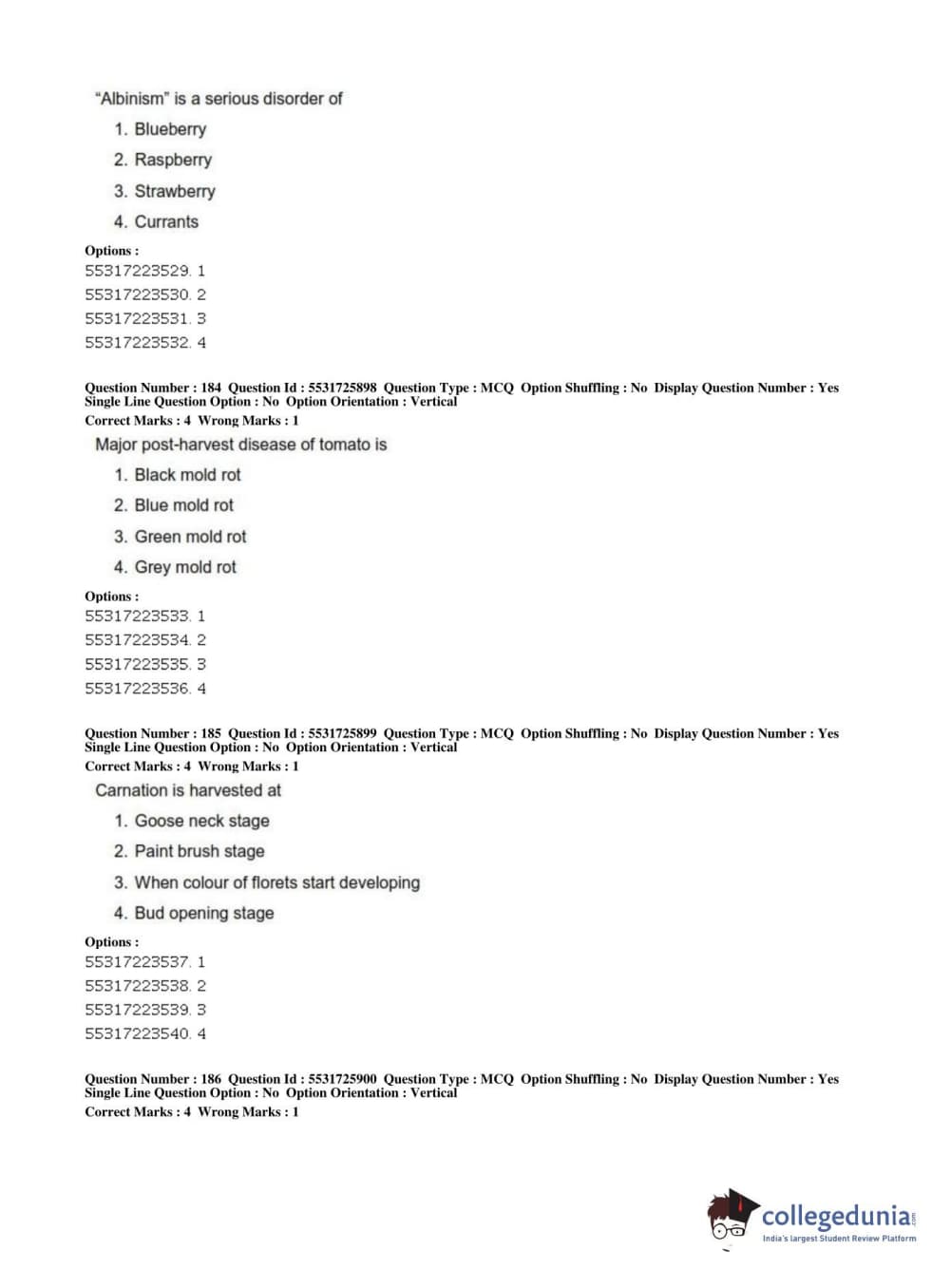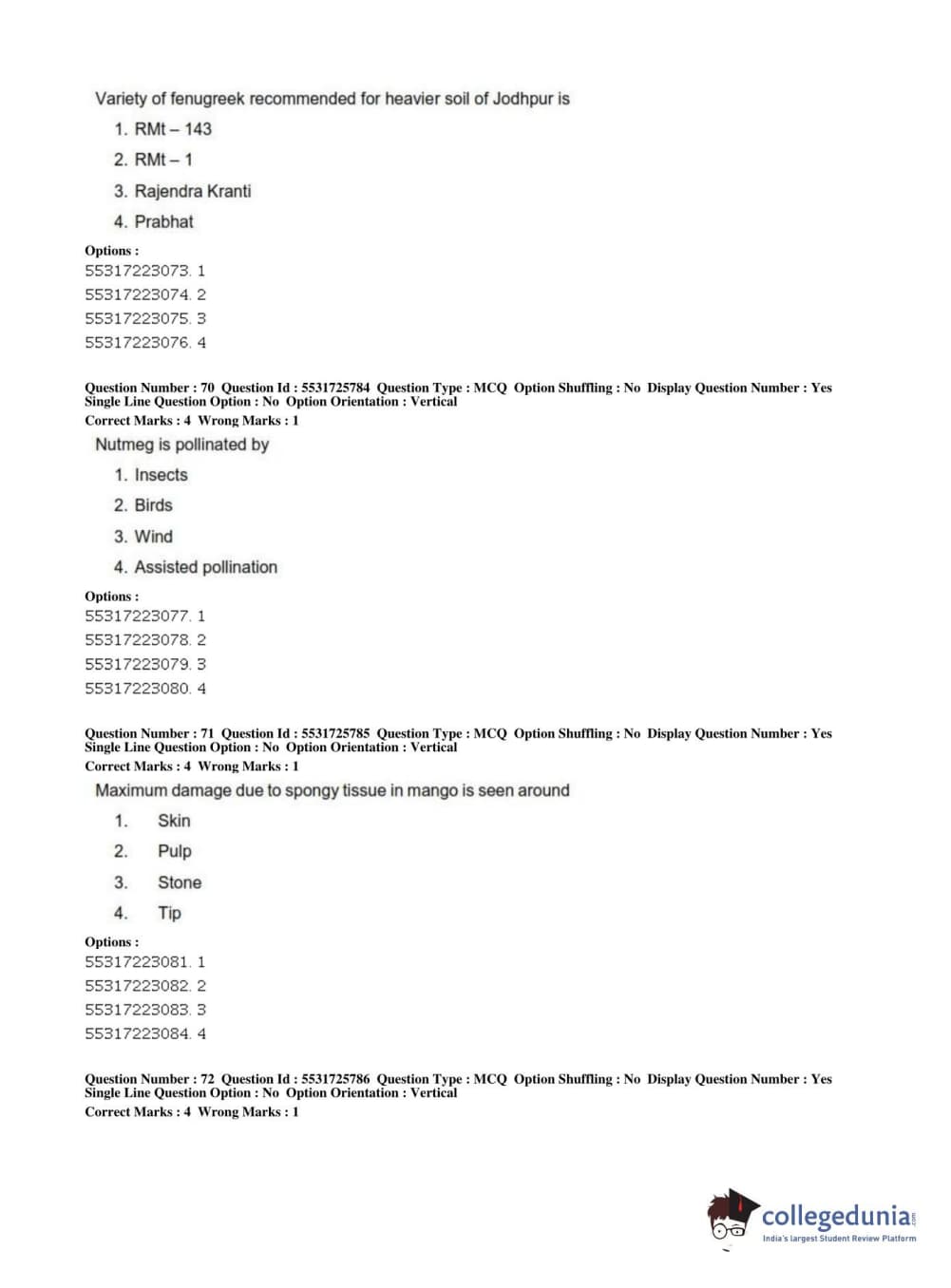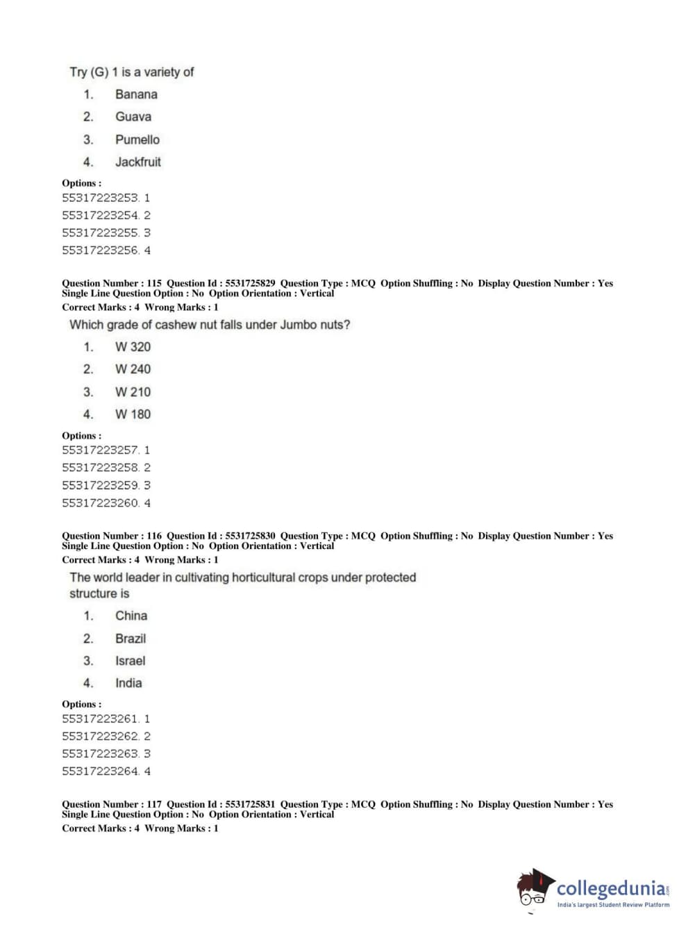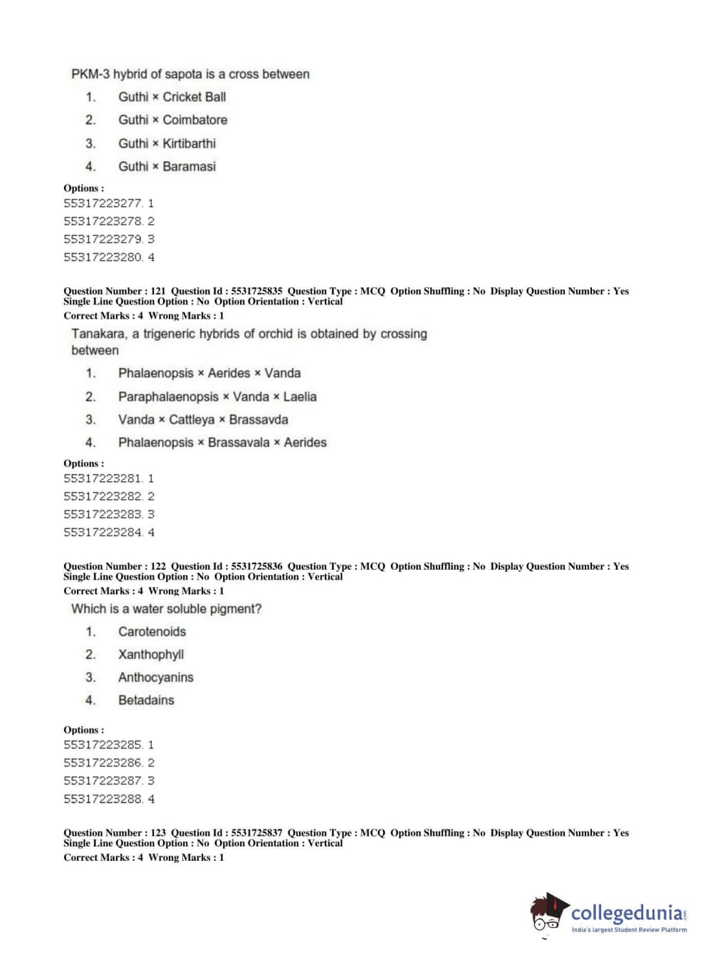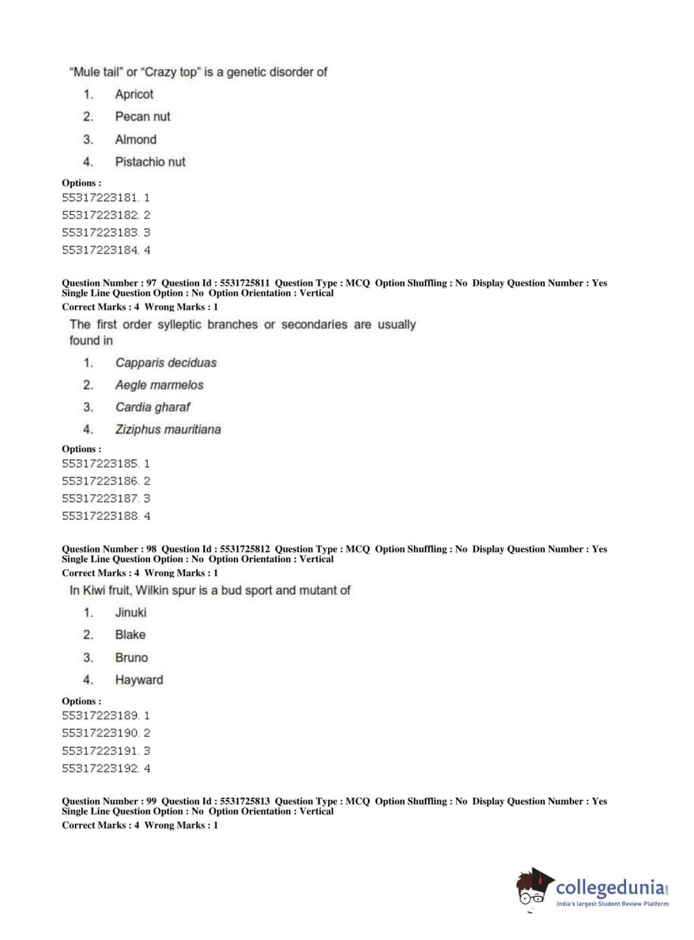 ICAR AIEEA 2019 JRF - HORTICULTURE Question Paper with Answer Key PDFs Afternoon Session
