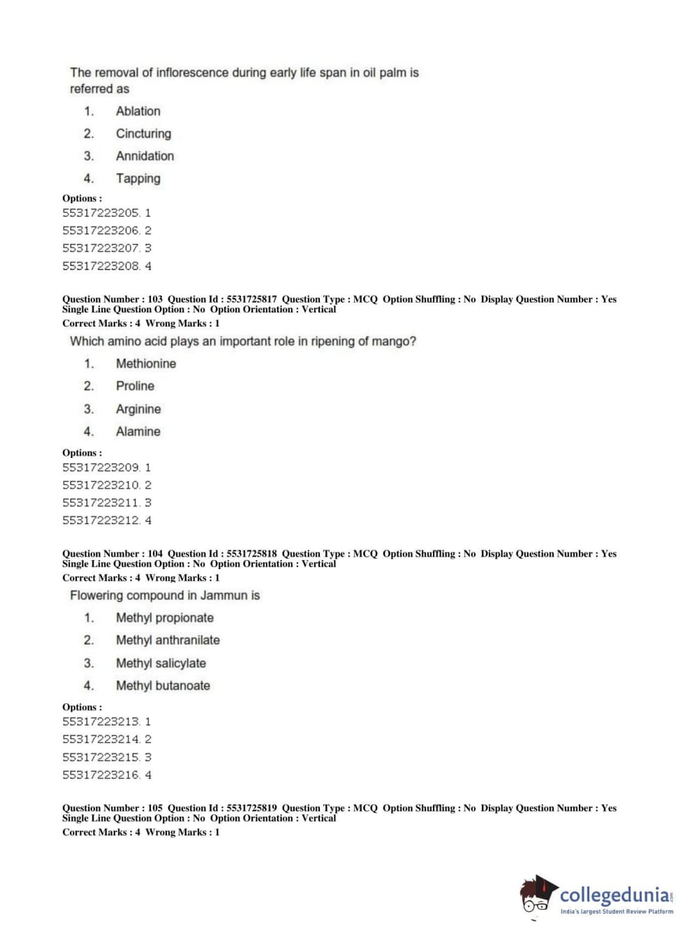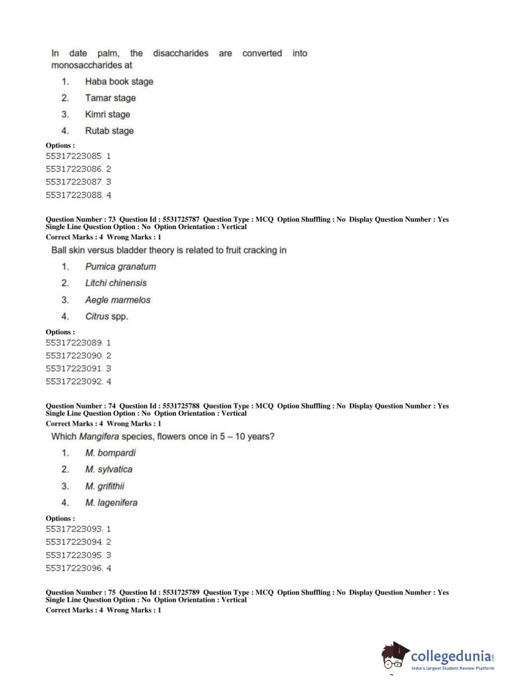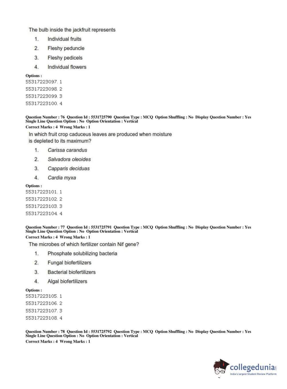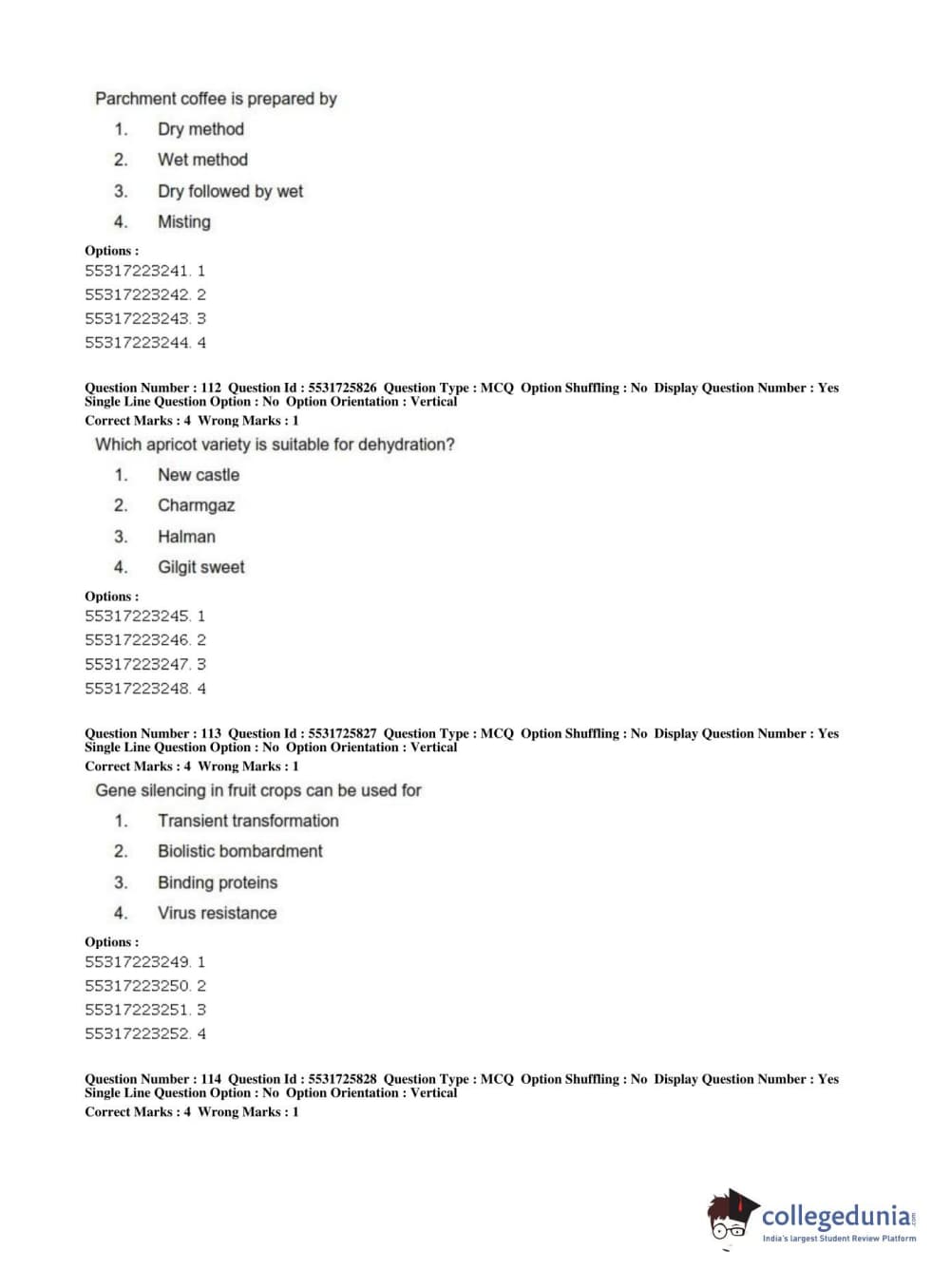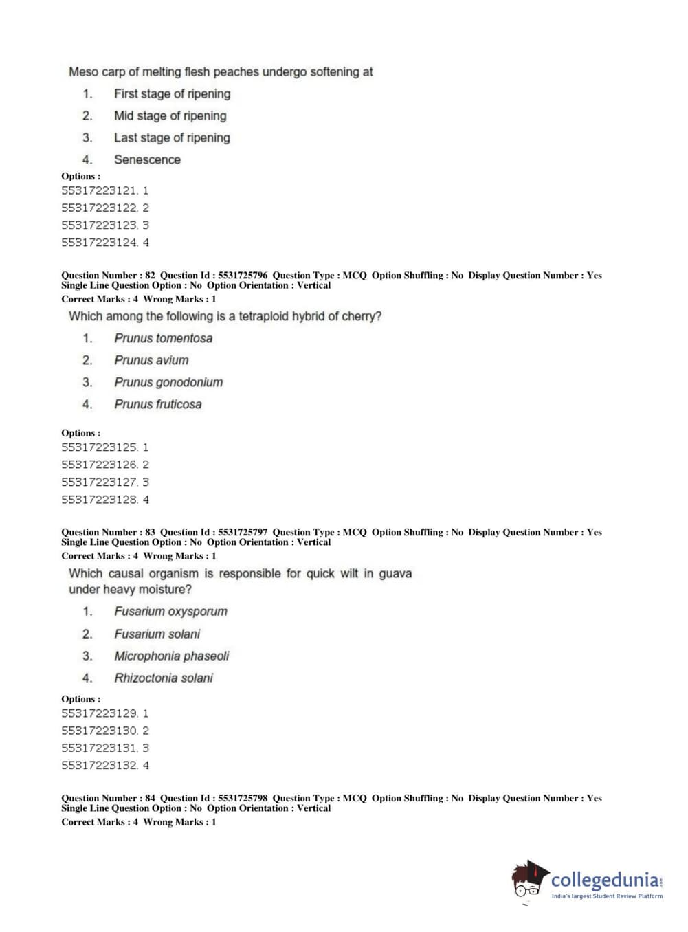 ICAR AIEEA 2019 JRF - HORTICULTURE Question Paper with Answer Key PDFs Afternoon Session