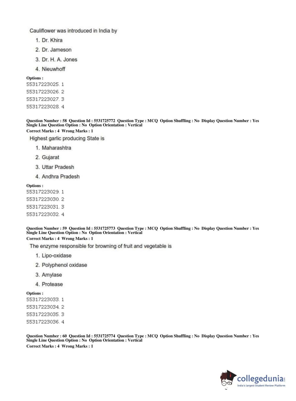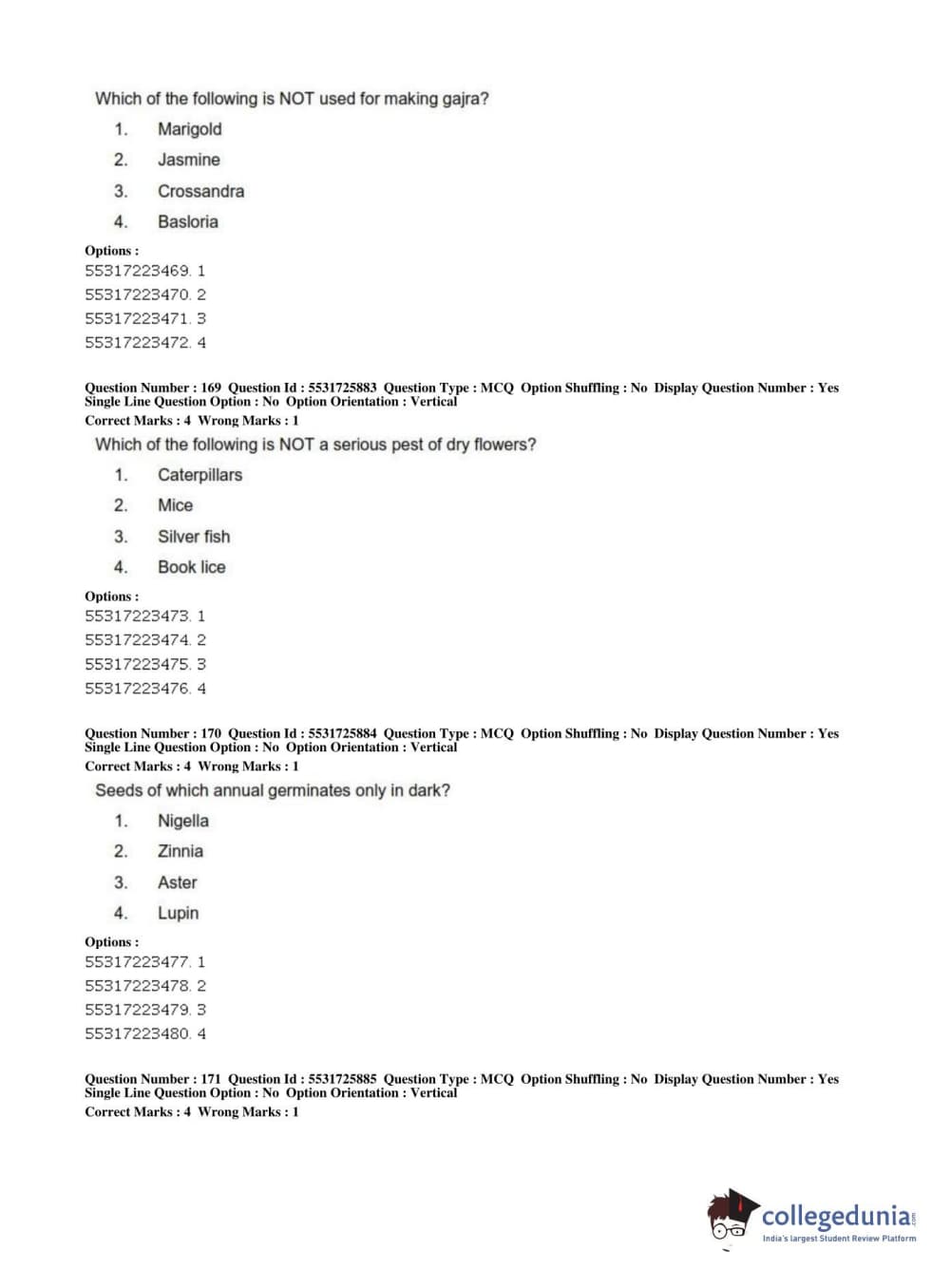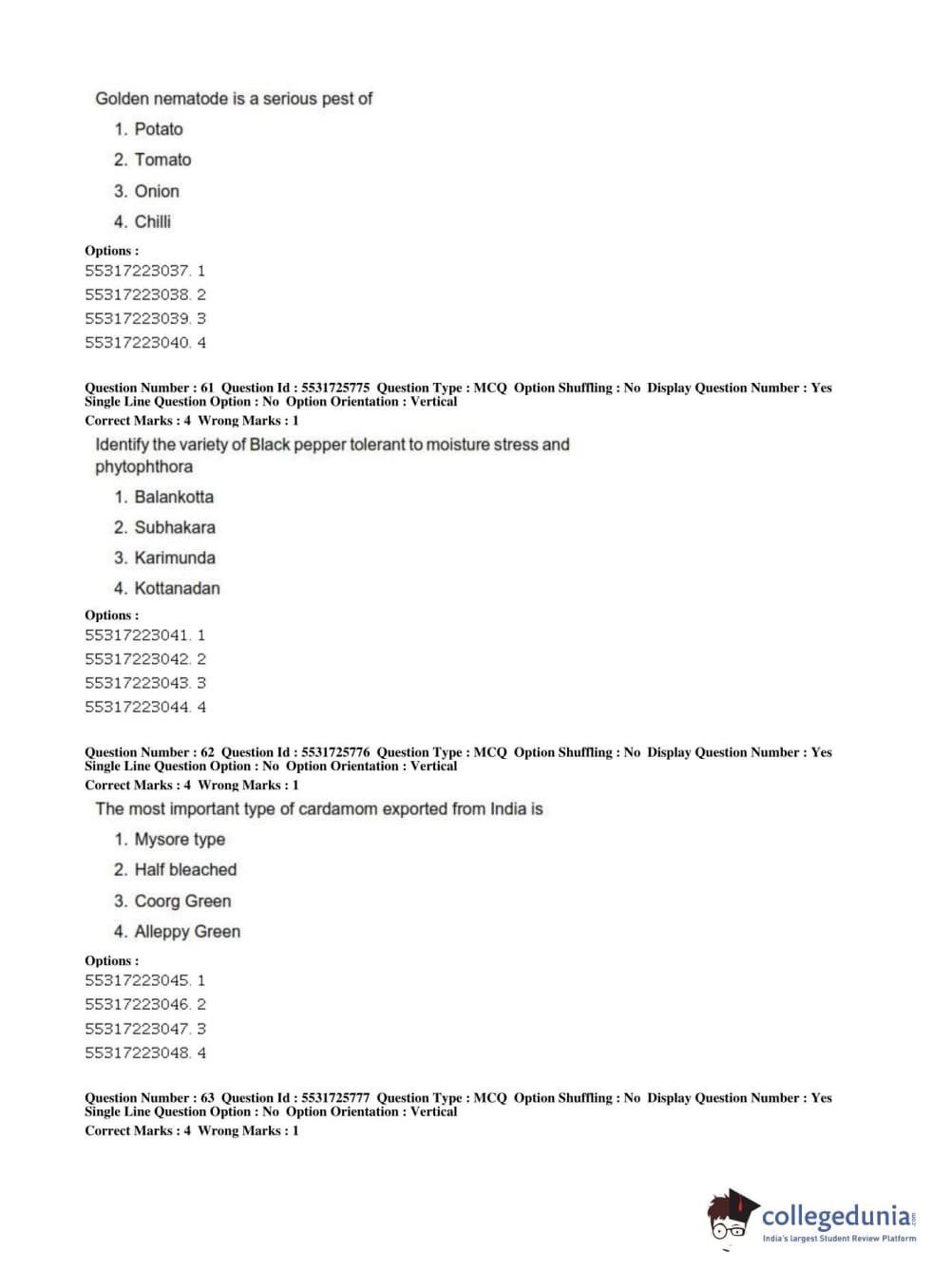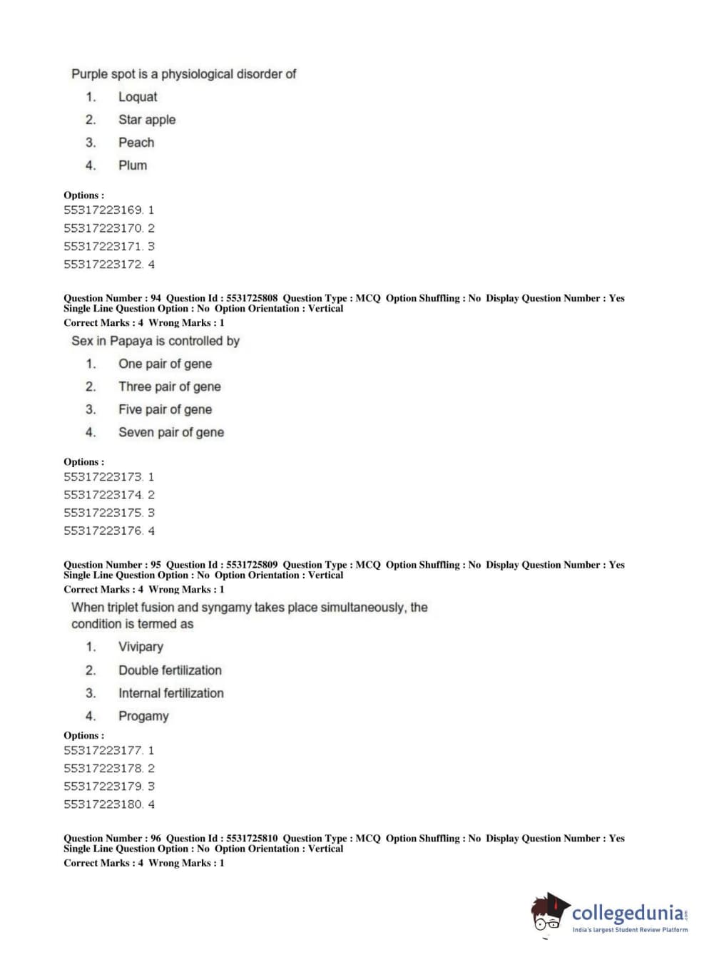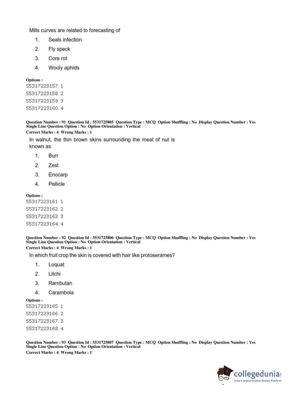 ICAR AIEEA 2019 JRF - HORTICULTURE Question Paper with Answer Key PDFs Afternoon Session