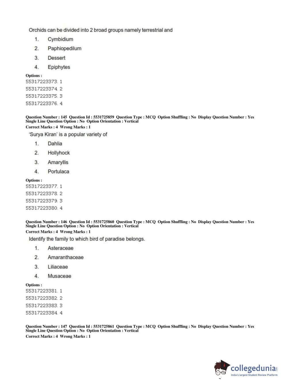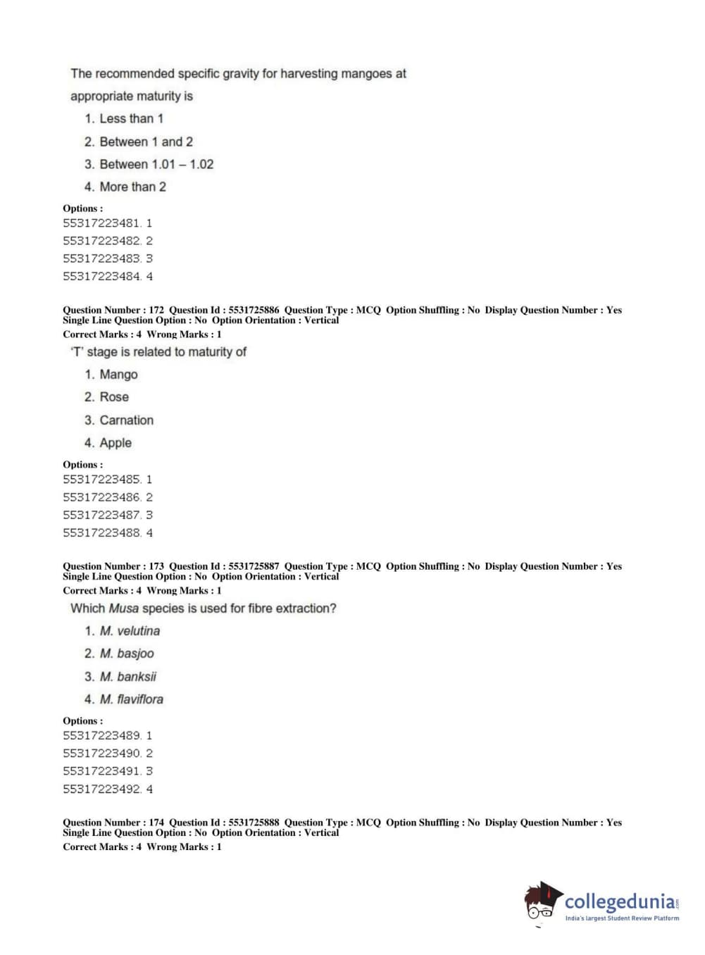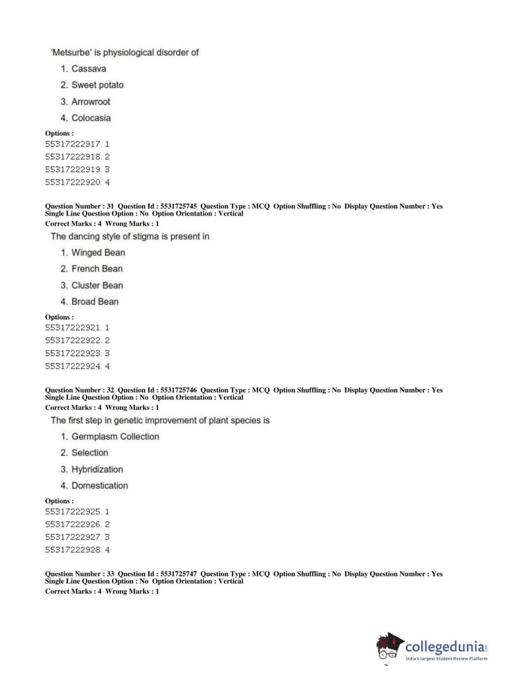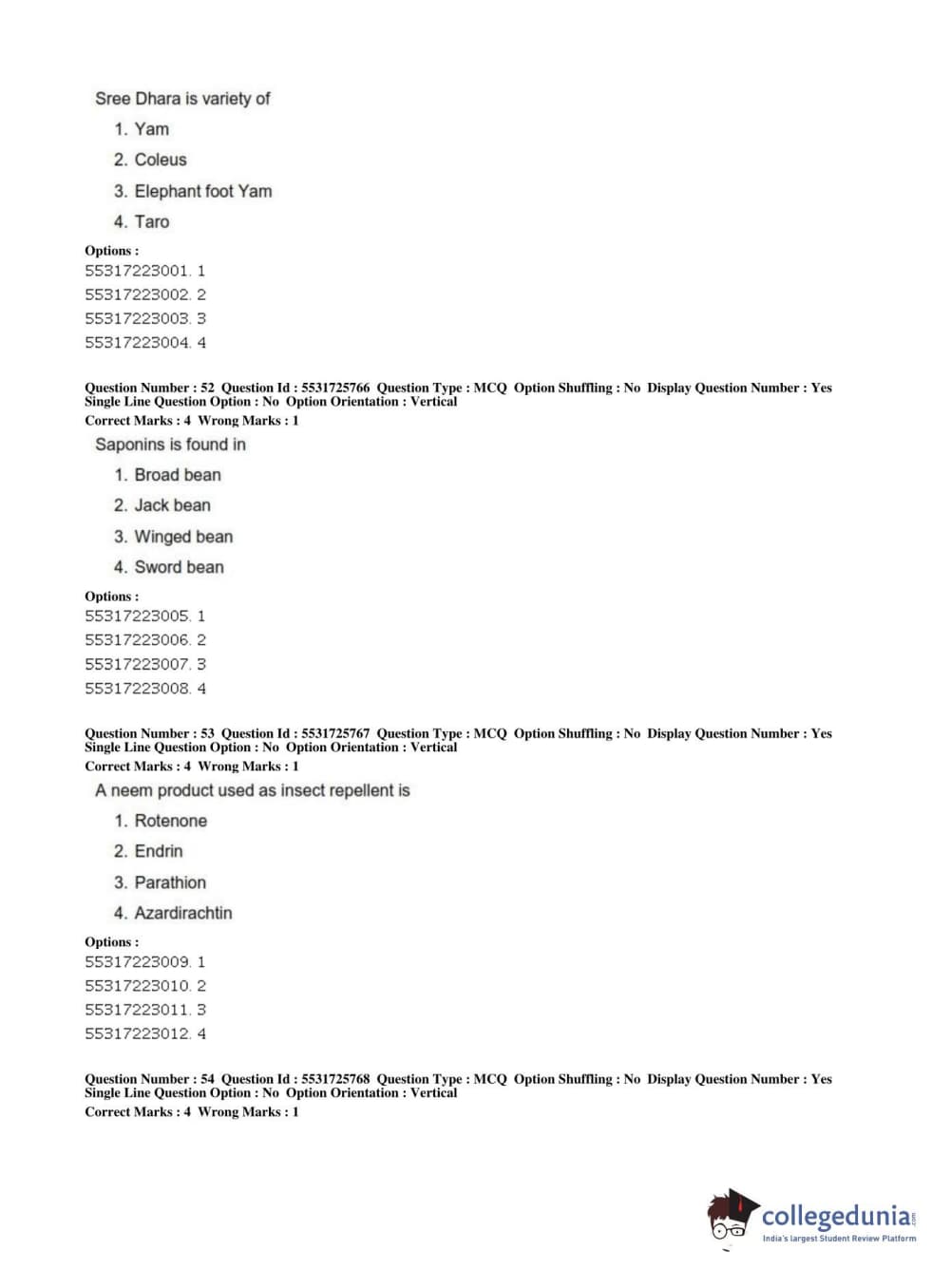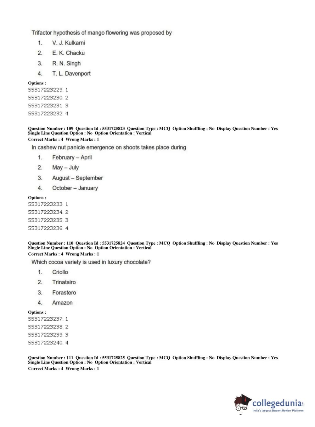 ICAR AIEEA 2019 JRF - HORTICULTURE Question Paper with Answer Key PDFs Afternoon Session