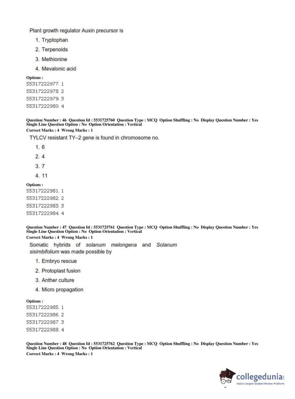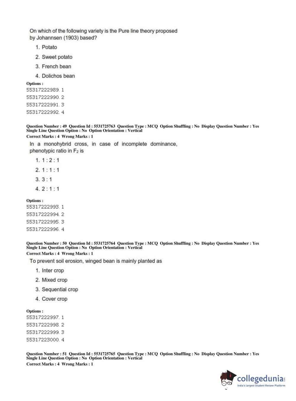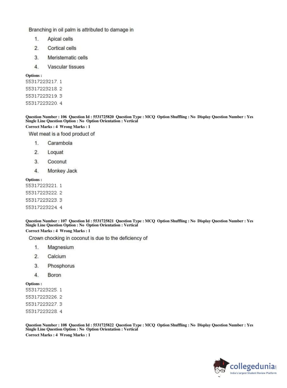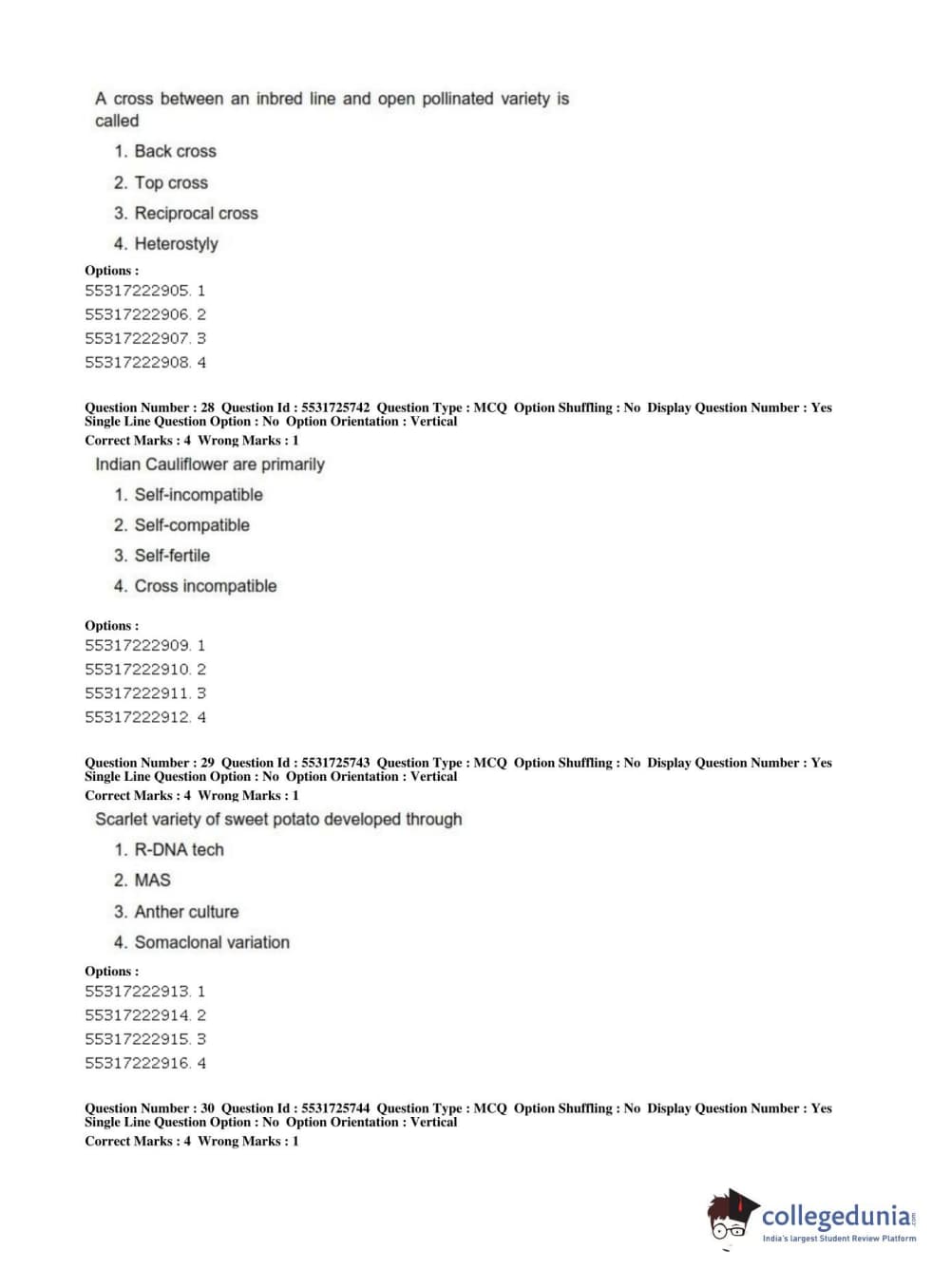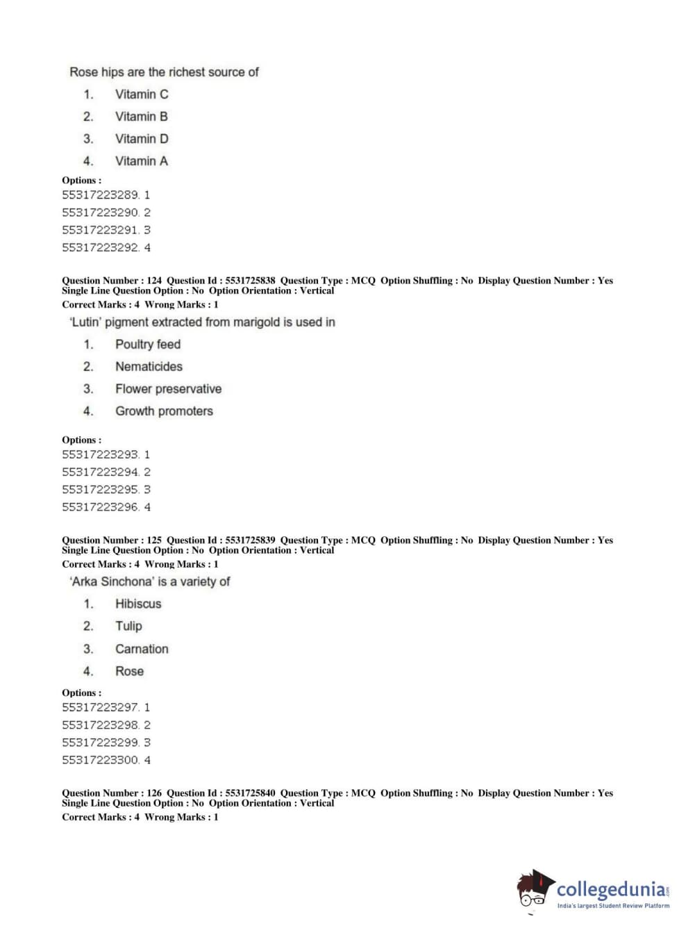 ICAR AIEEA 2019 JRF - HORTICULTURE Question Paper with Answer Key PDFs Afternoon Session