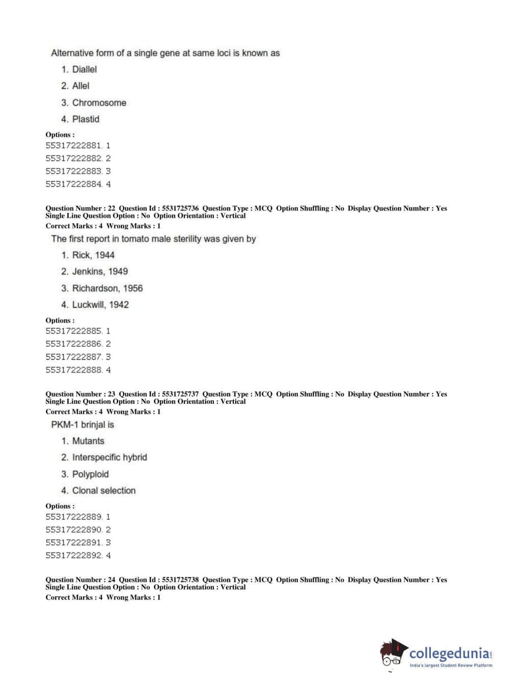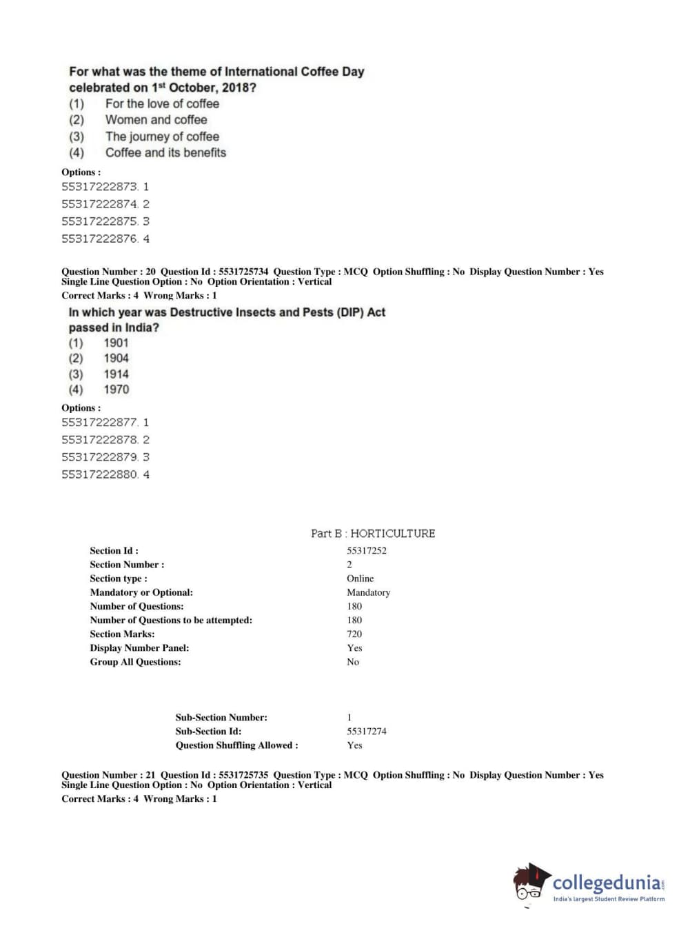 | ICAR AIEEA 2019 JRF - HORTICULTURE Question Paper PDF | ICAR AIEEA 2019 JRF - HORTICULTURE Answer Key PDF |