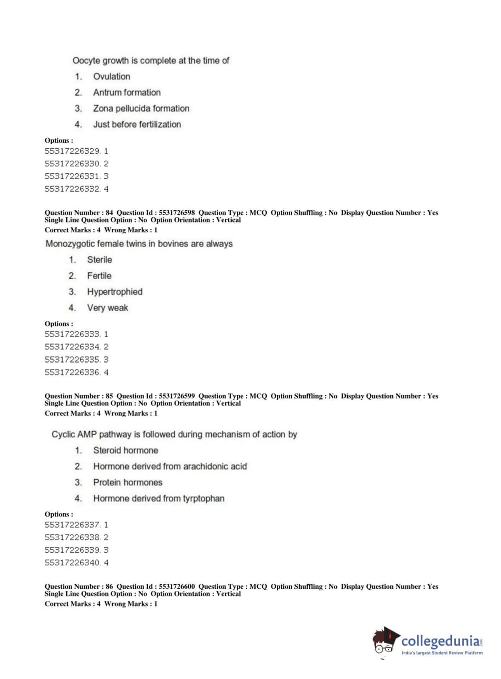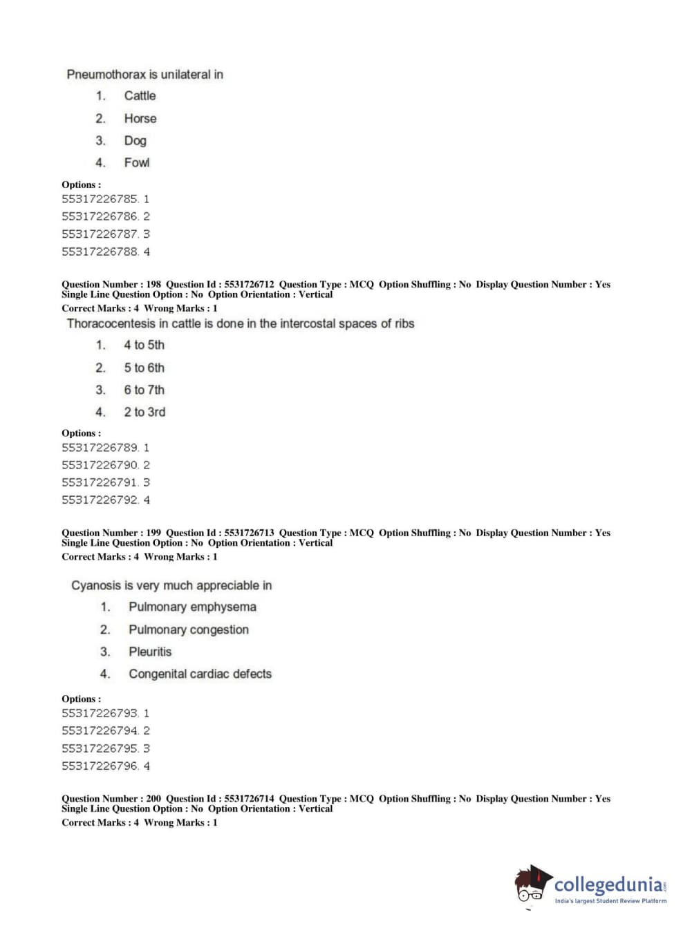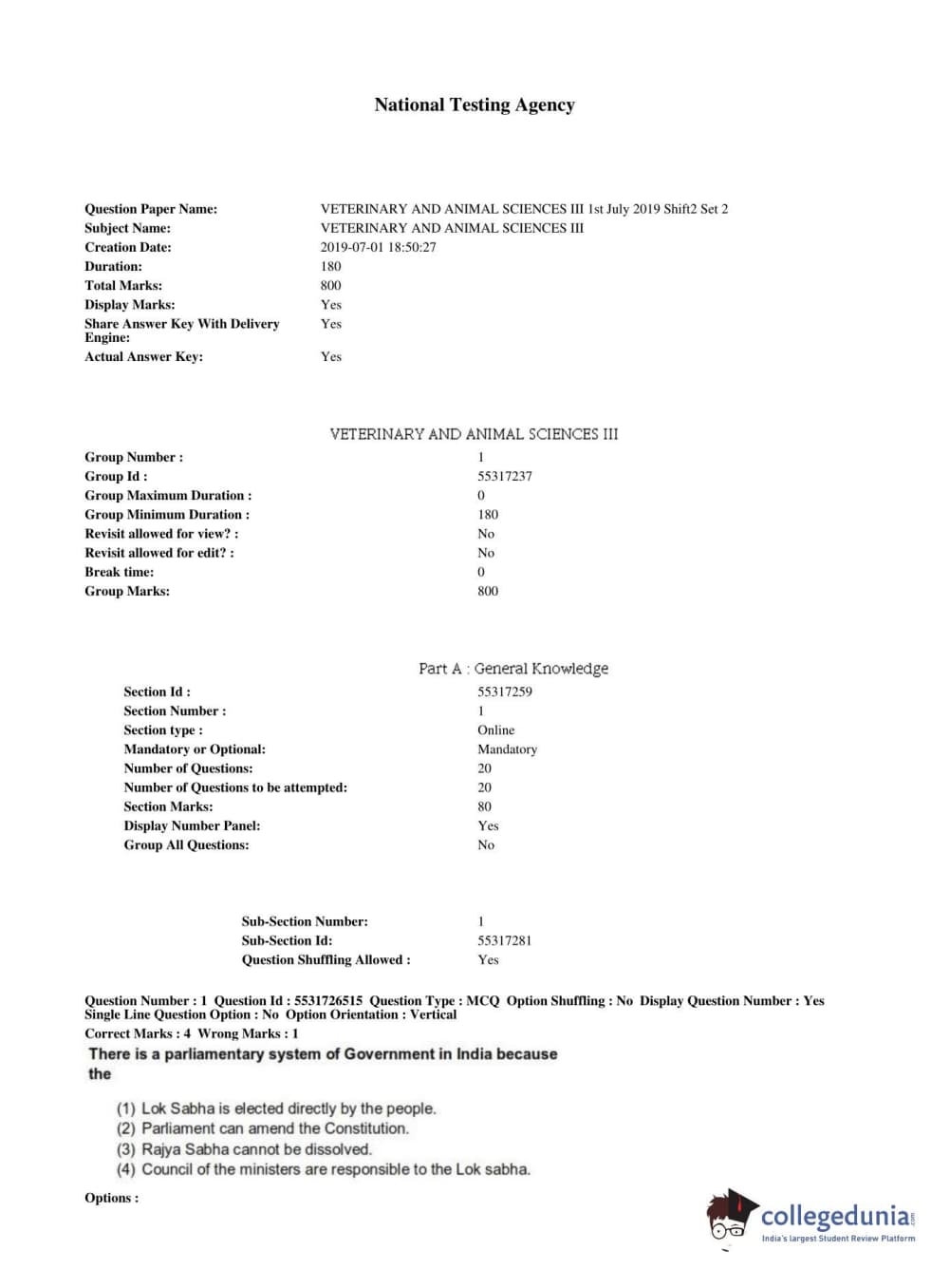 ICAR AIEEA 2019 JRF - VETERINARY AND ANIMAL SCIENCES III Question paper with answer key pdf conducted on July 1, 2019 in Afternoon Session is available for download. The exam was successfully organized by National Testing Agency (NTA). The question paper comprised a total of 200 questions.