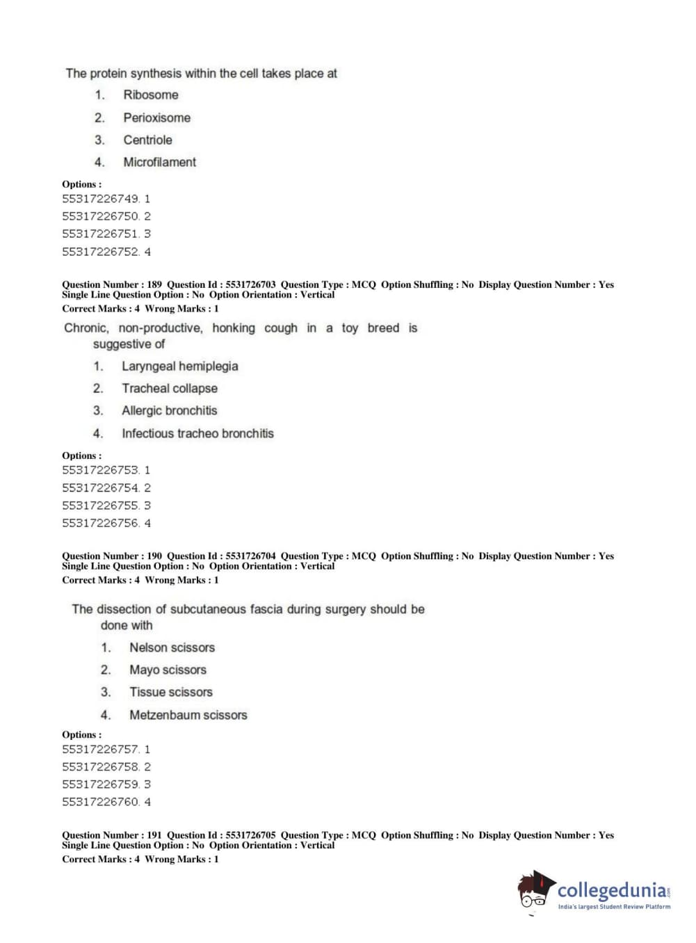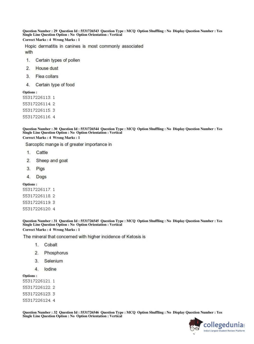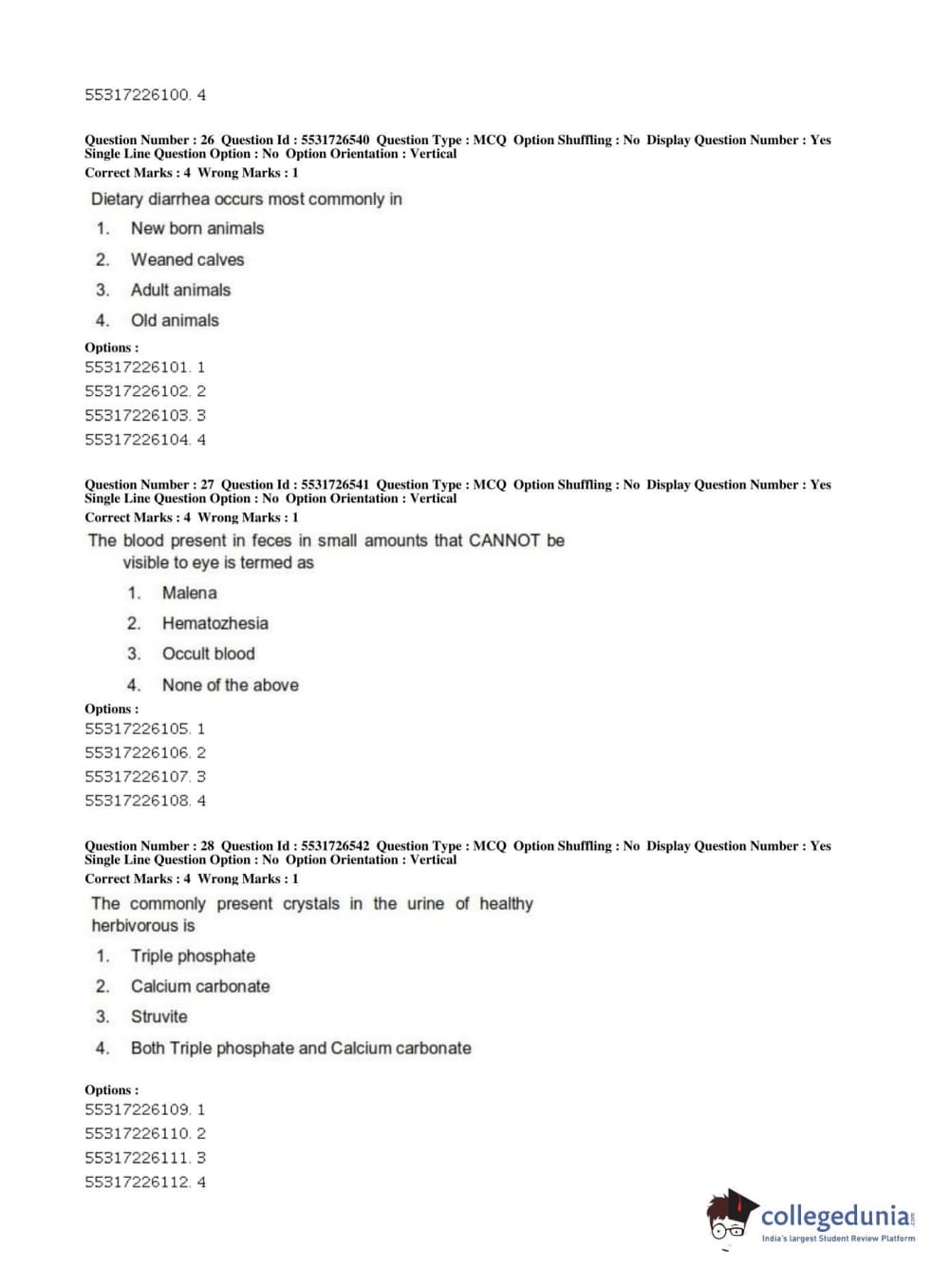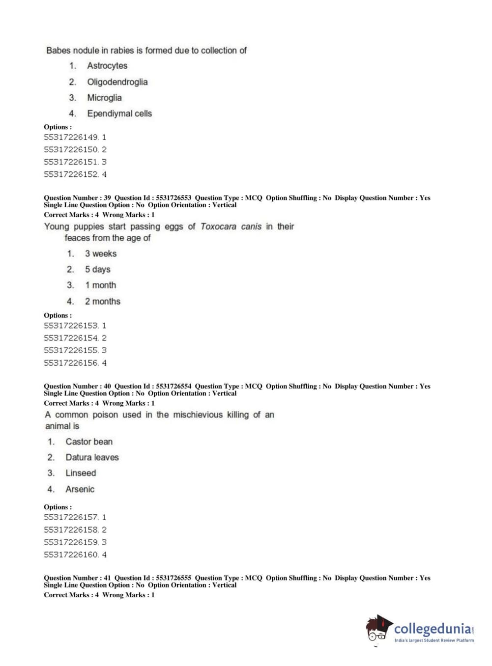 ICAR AIEEA 2019 JRF - VETERINARY AND ANIMAL SCIENCES III Question paper with answer key pdf conducted on July 1, 2019 in Afternoon Session is available for download. The exam was successfully organized by National Testing Agency (NTA). The question paper comprised a total of 200 questions.