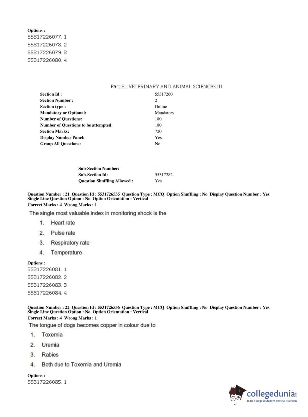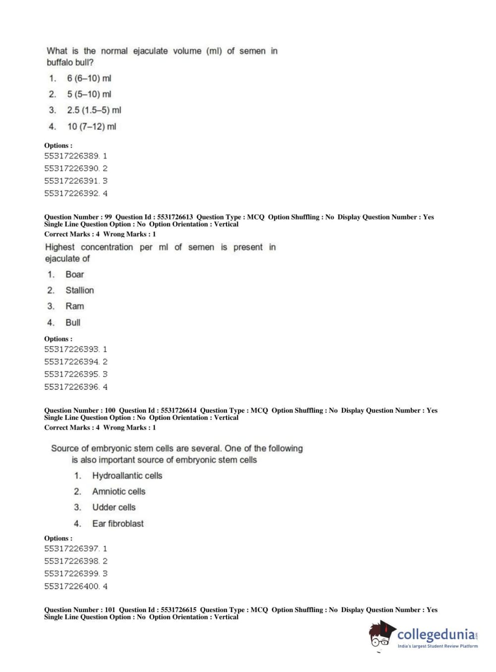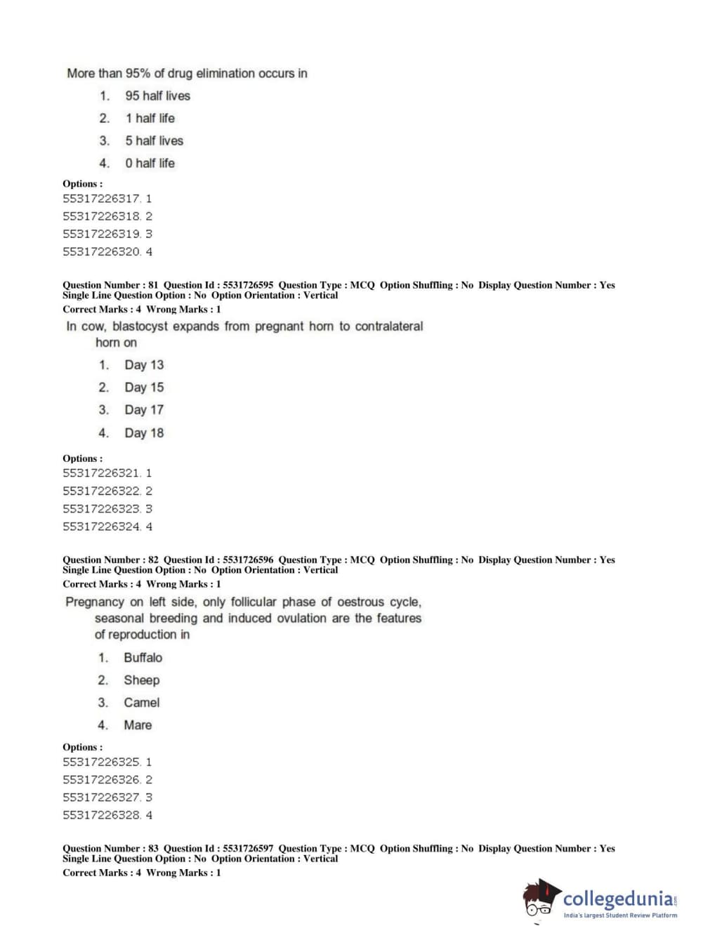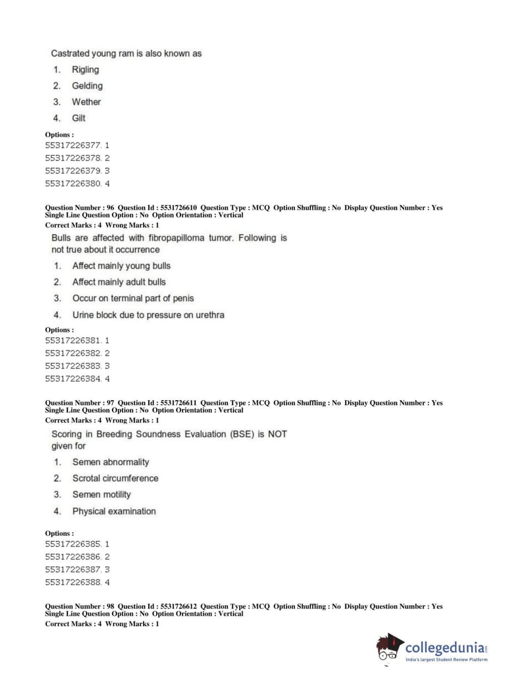 ICAR AIEEA 2019 JRF - VETERINARY AND ANIMAL SCIENCES III Question Paper with Answer Key PDFs Afternoon Session