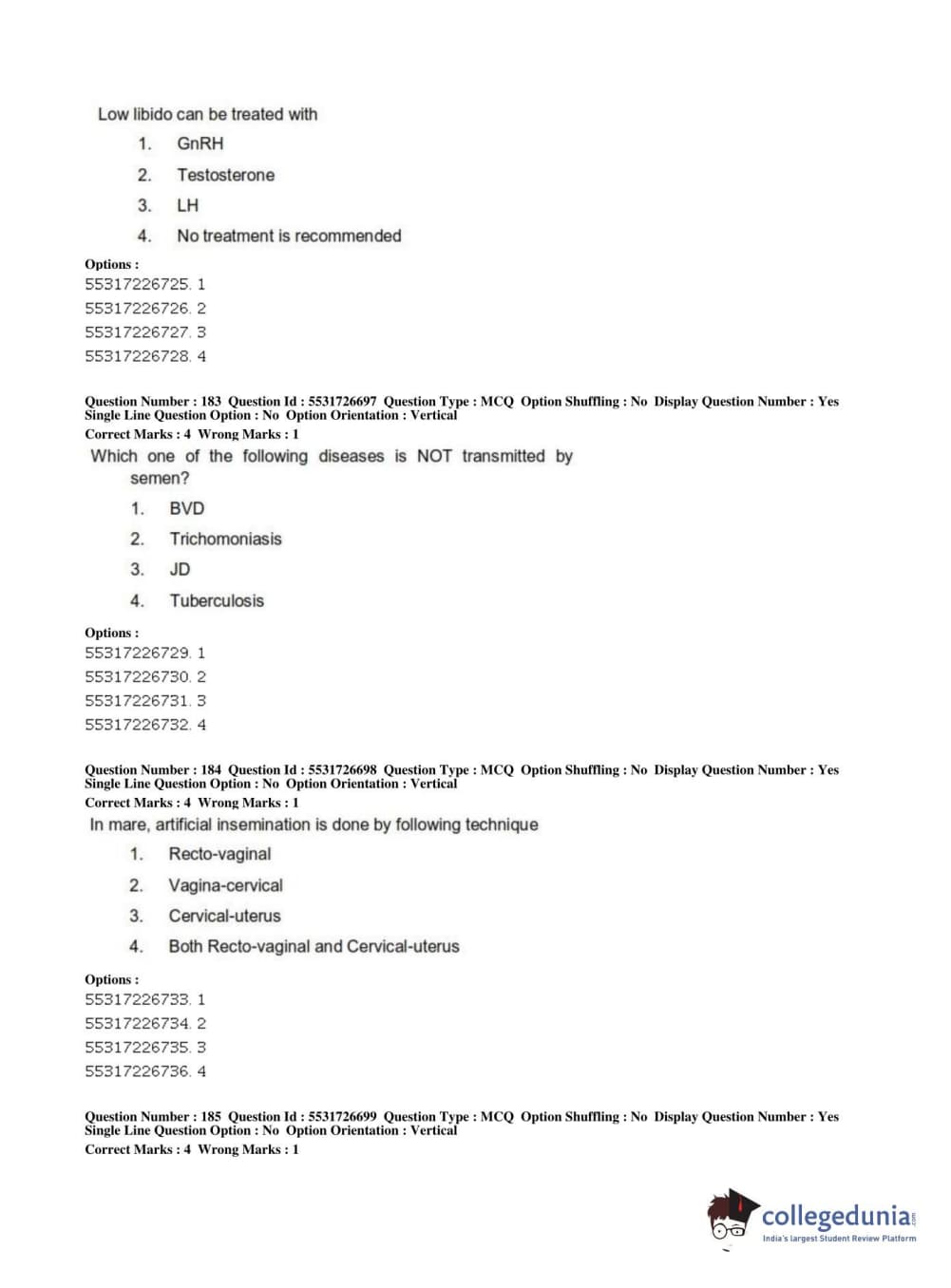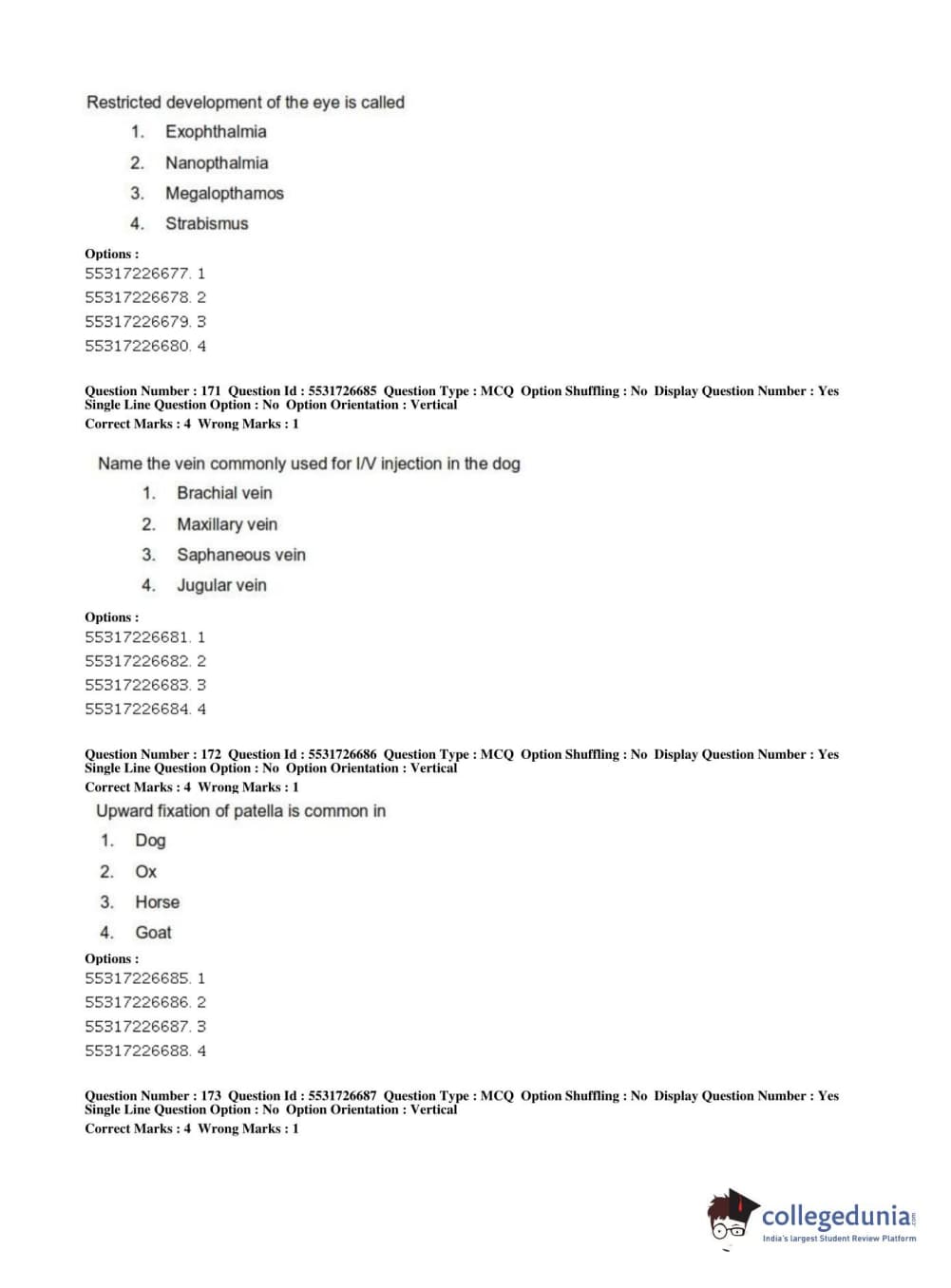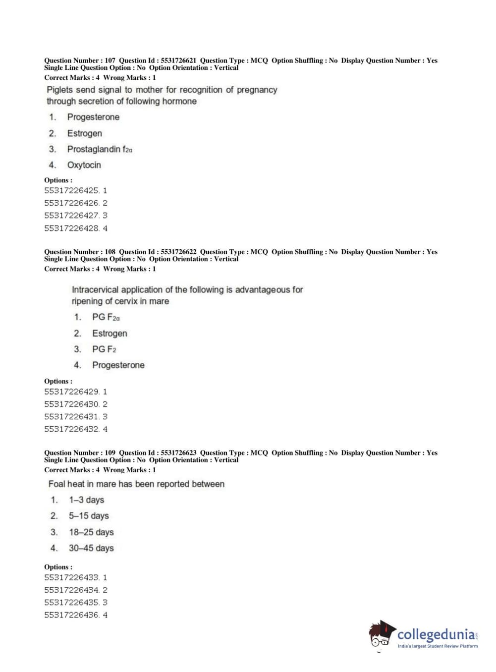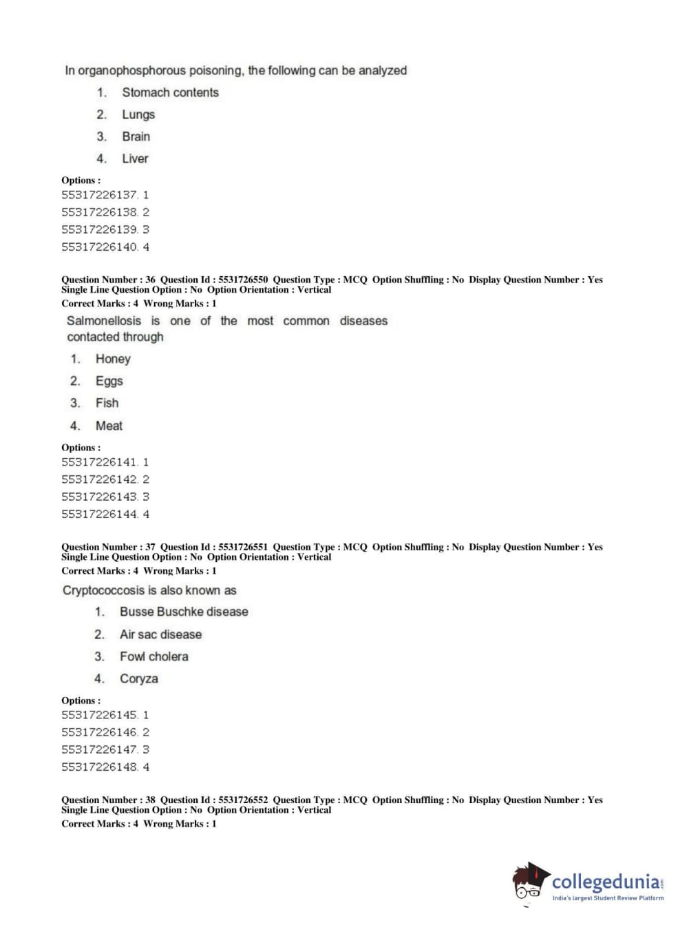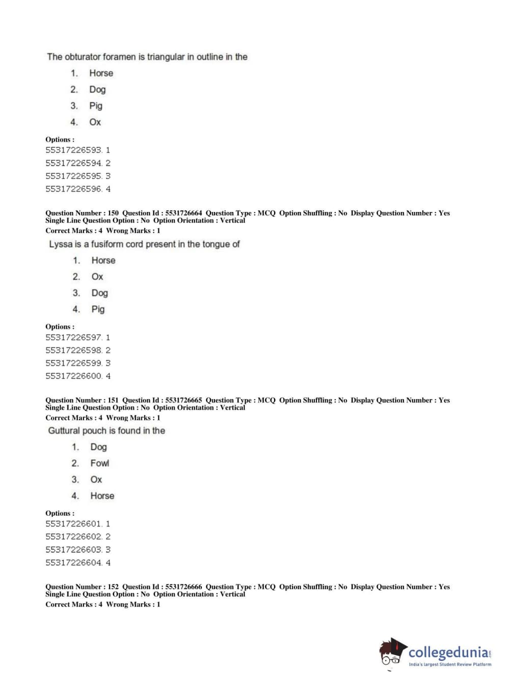ICAR AIEEA 2019 JRF - VETERINARY AND ANIMAL SCIENCES III Question Paper with Answer Key PDFs Afternoon Session