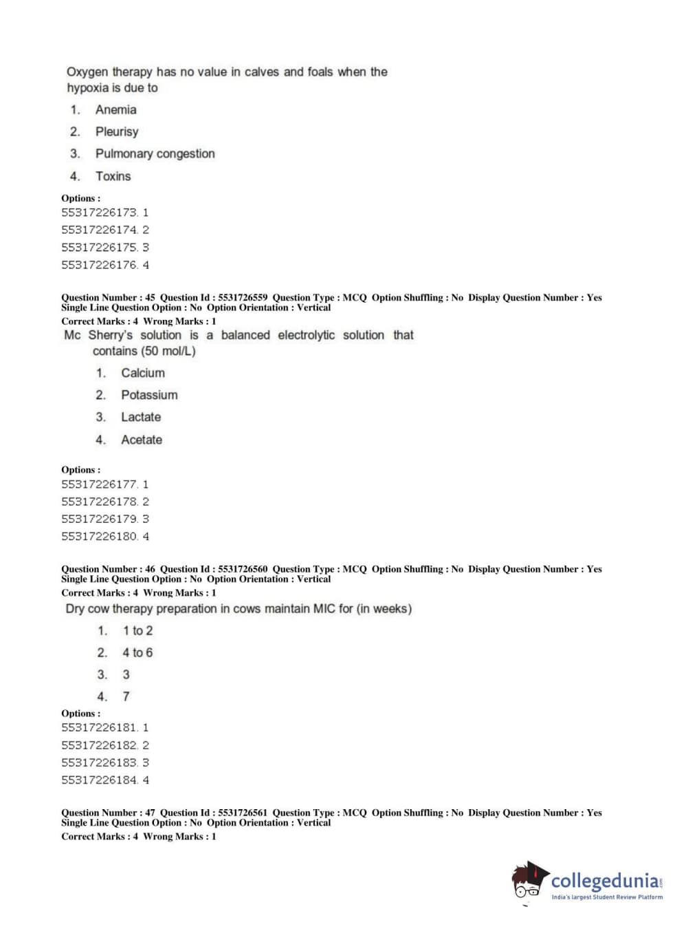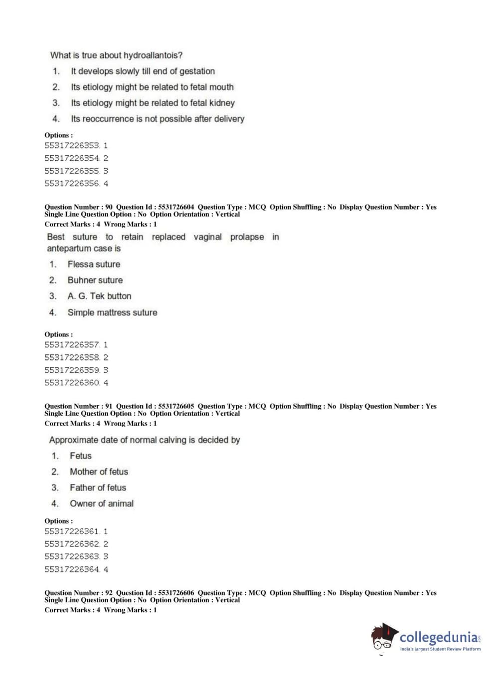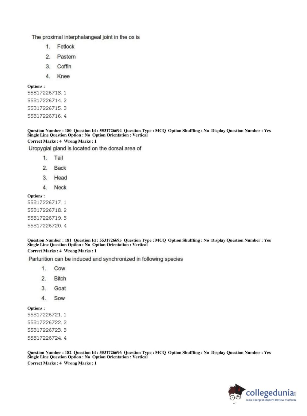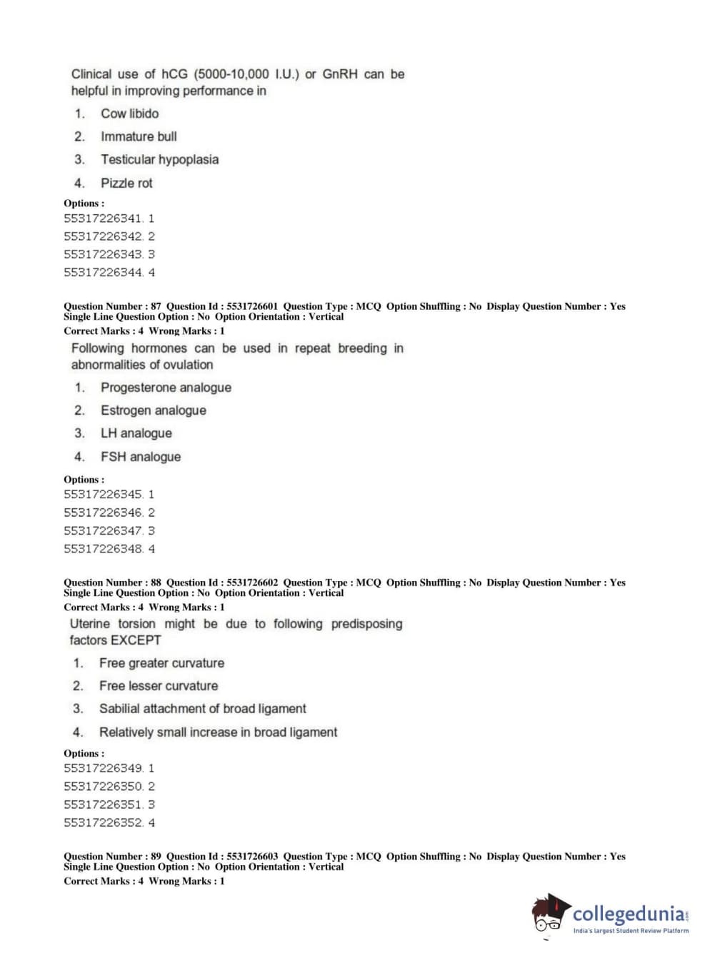 ICAR AIEEA 2019 JRF - VETERINARY AND ANIMAL SCIENCES III Question Paper with Answer Key PDFs Afternoon Session