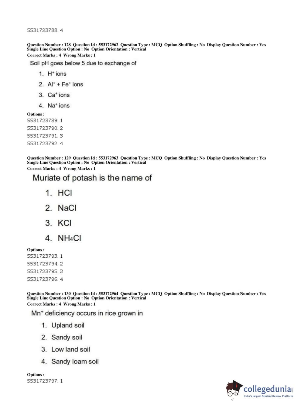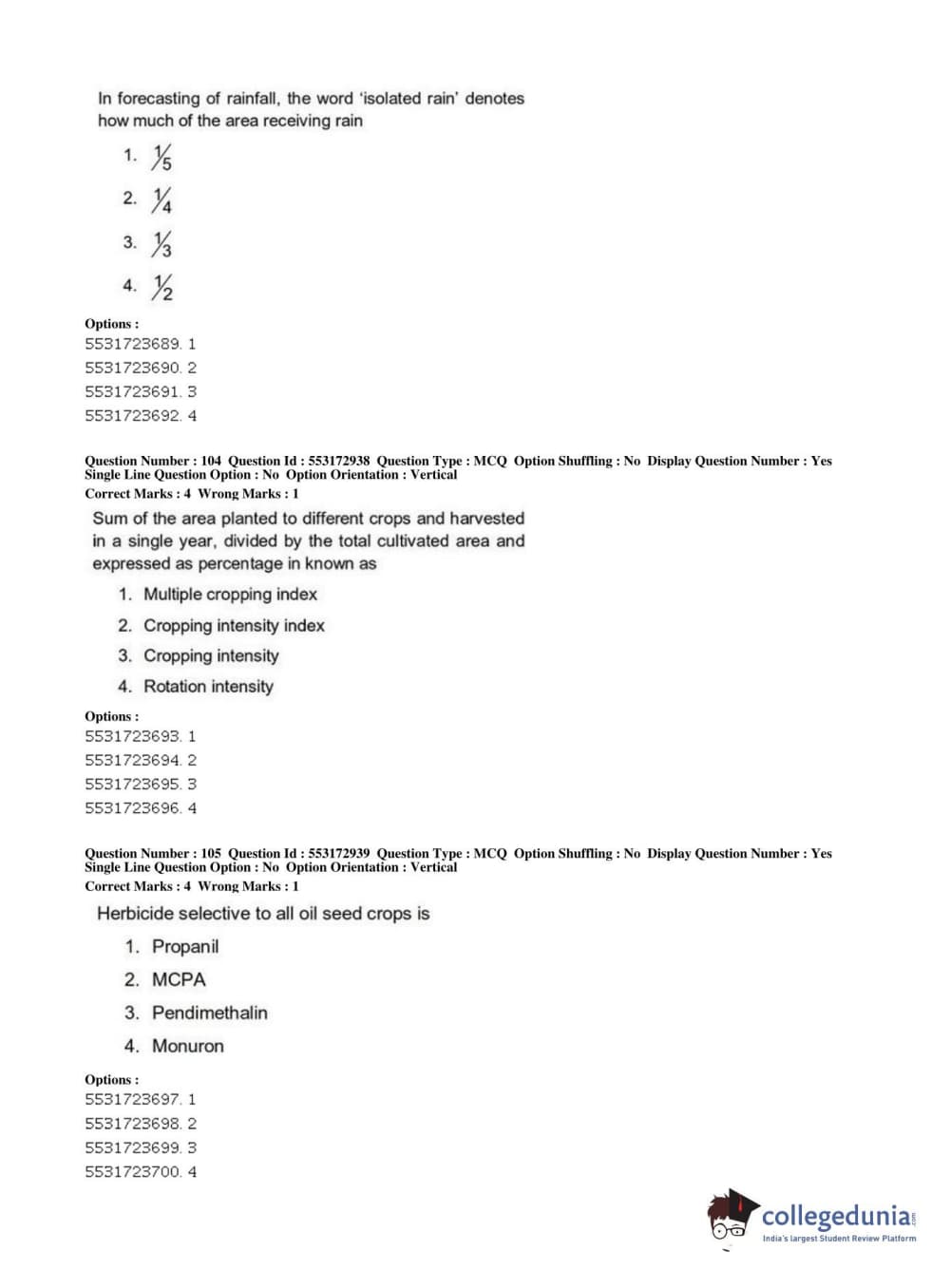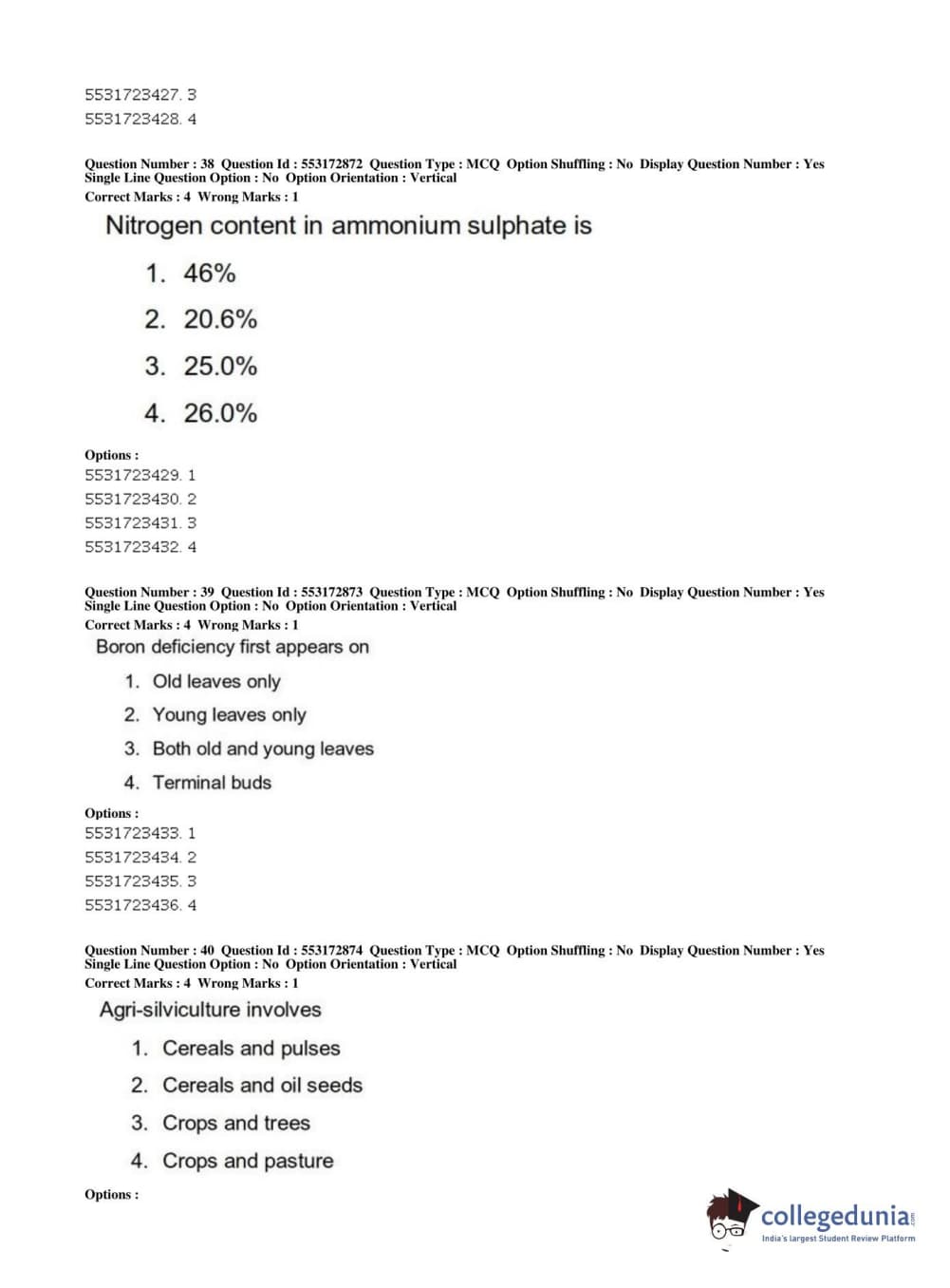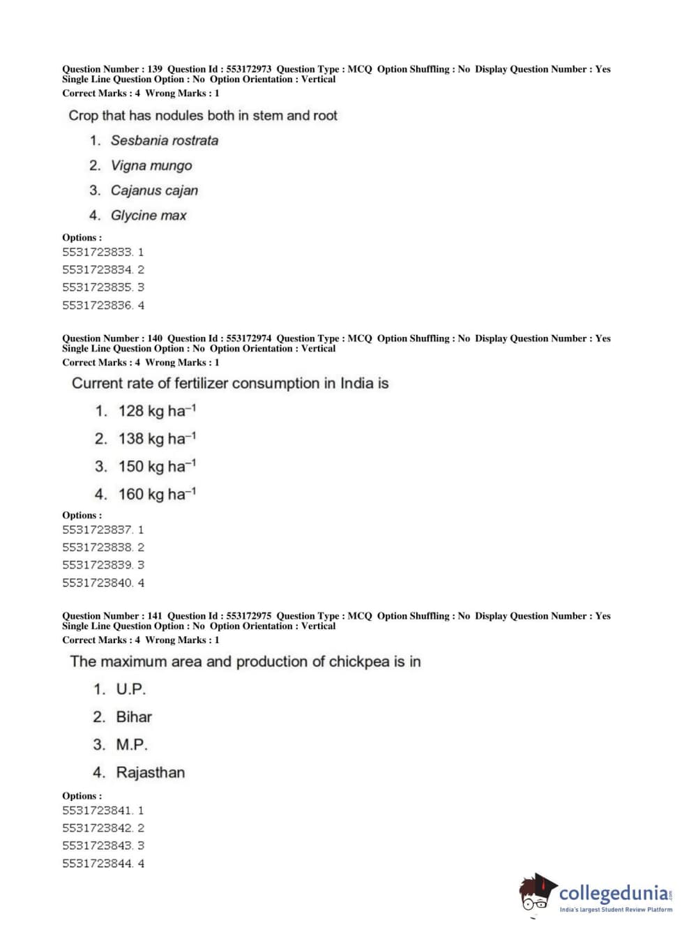 ICAR AIEEA 2019 PG - AGRONOMY Question paper with answer key pdf conducted on July 1, 2019 in Shift 2 is available for download. The exam was successfully organized by National Testing Agency (NTA). The question paper comprised a total of 160 questions.