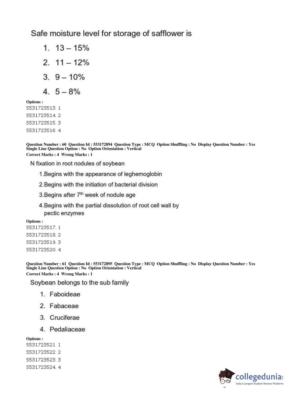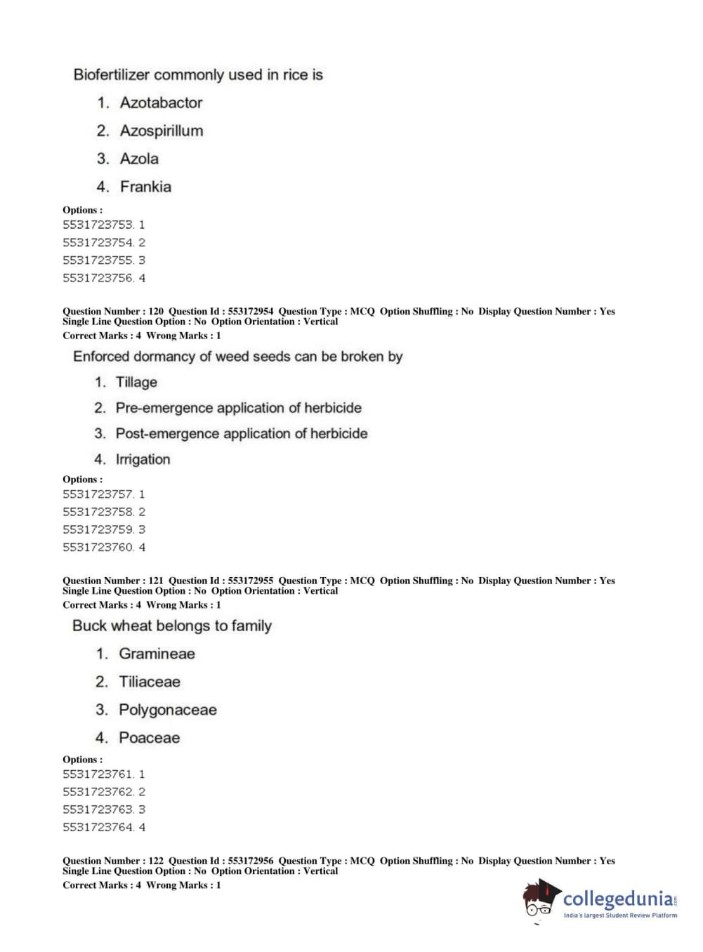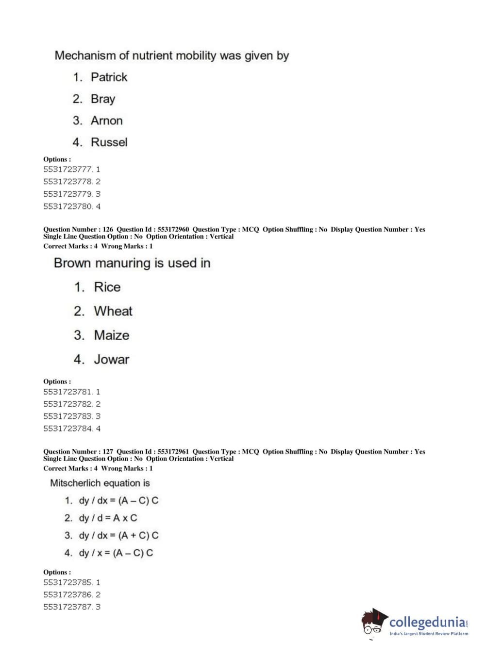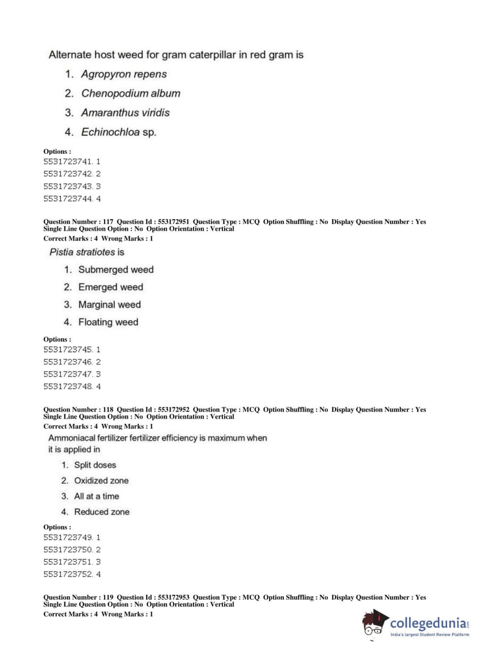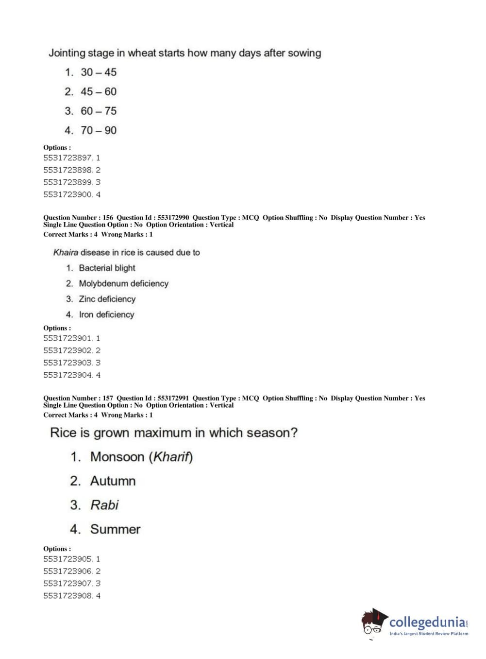 ICAR AIEEA 2019 PG - AGRONOMY Question paper with answer key pdf conducted on July 1, 2019 in Shift 2 is available for download. The exam was successfully organized by National Testing Agency (NTA). The question paper comprised a total of 160 questions.