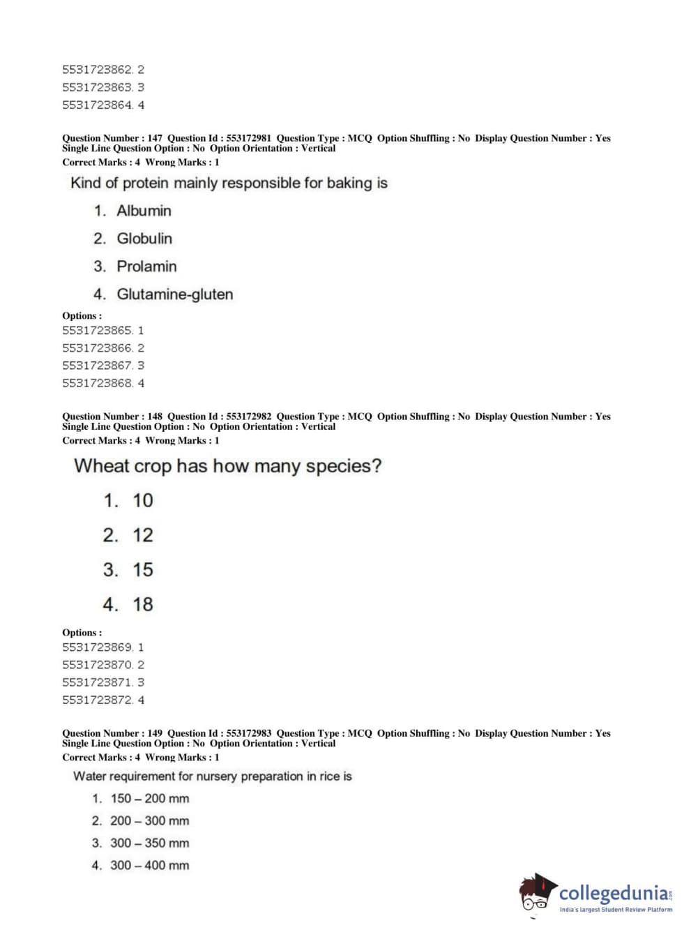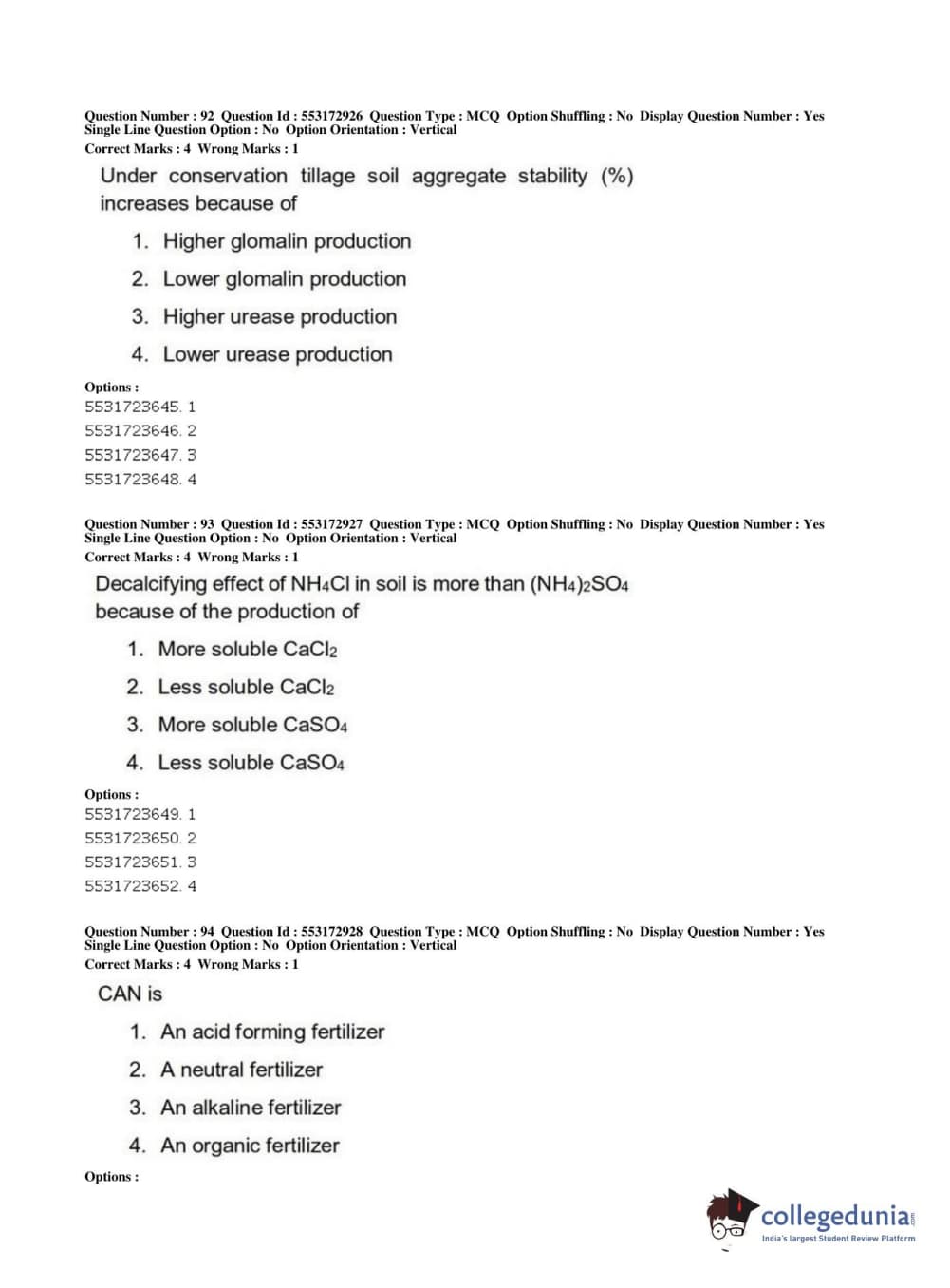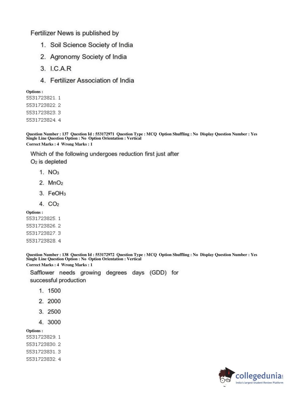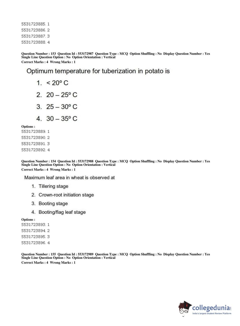ICAR AIEEA 2019 PG - AGRONOMY Question paper with answer key pdf conducted on July 1, 2019 in Shift 2 is available for download. The exam was successfully organized by National Testing Agency (NTA). The question paper comprised a total of 160 questions.