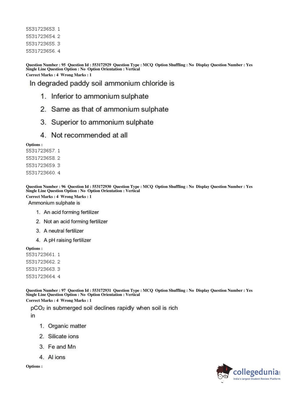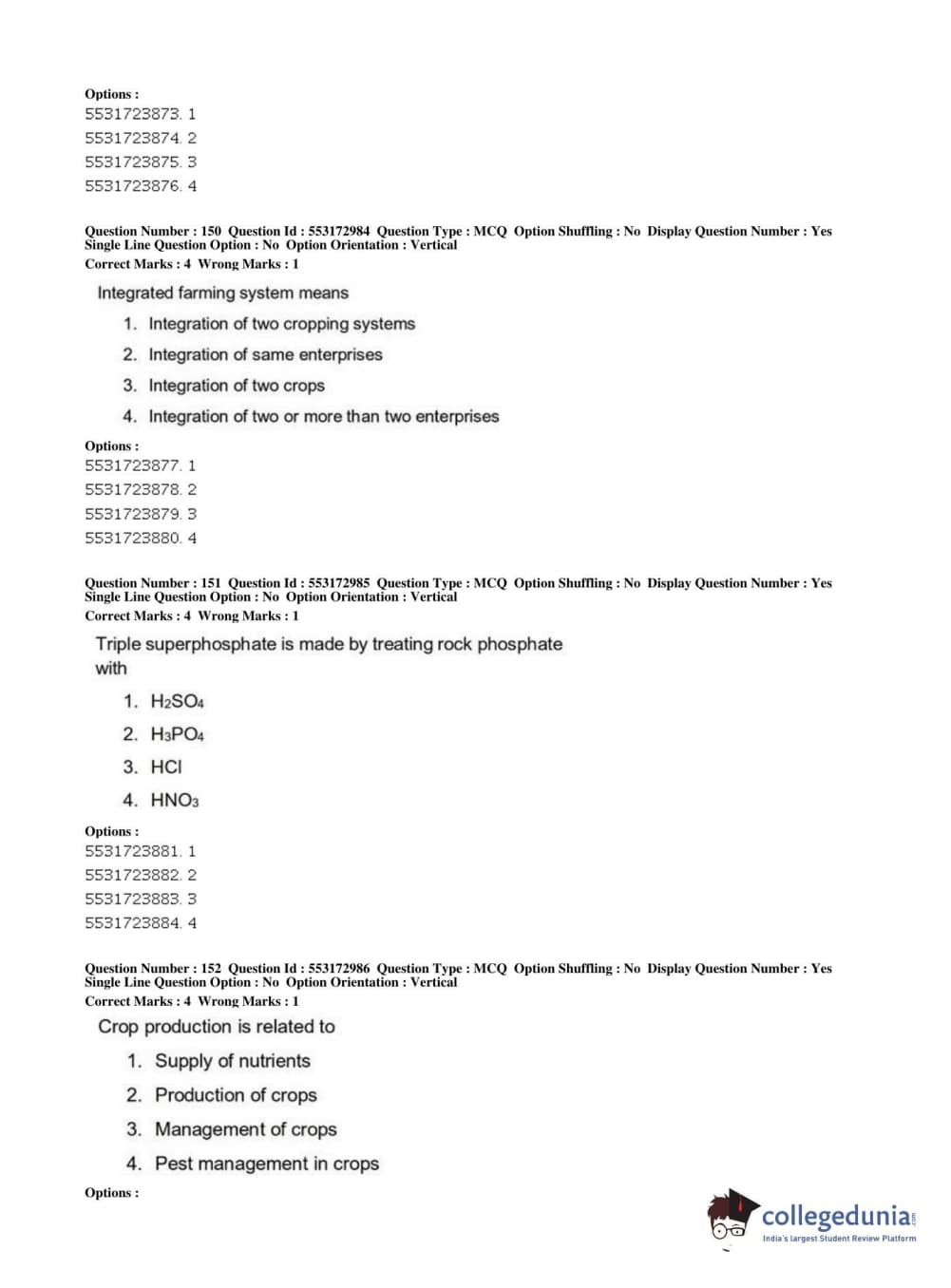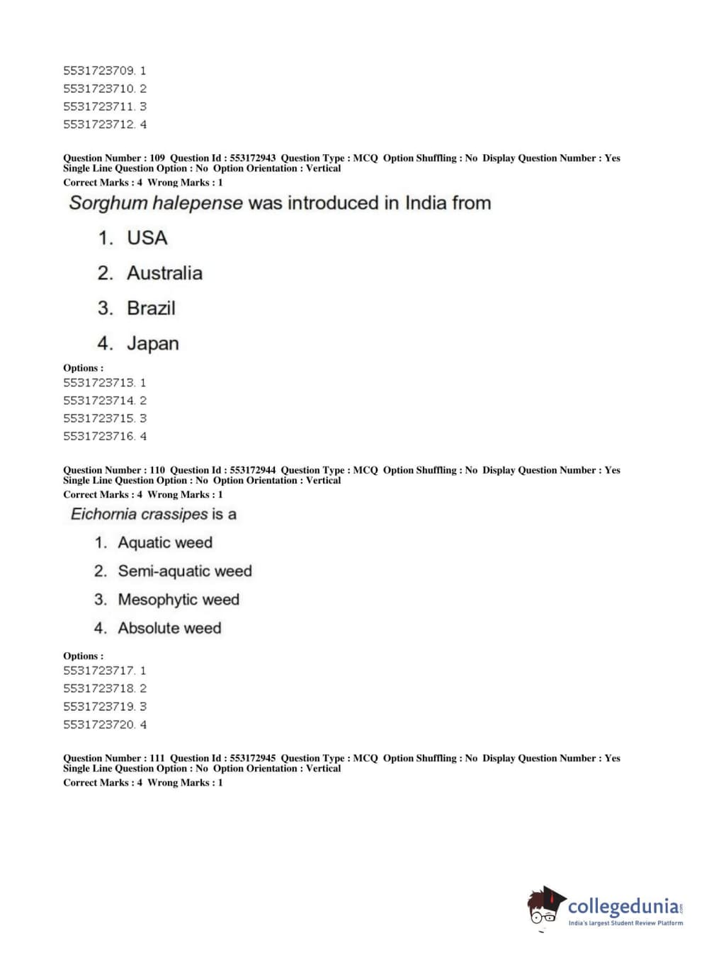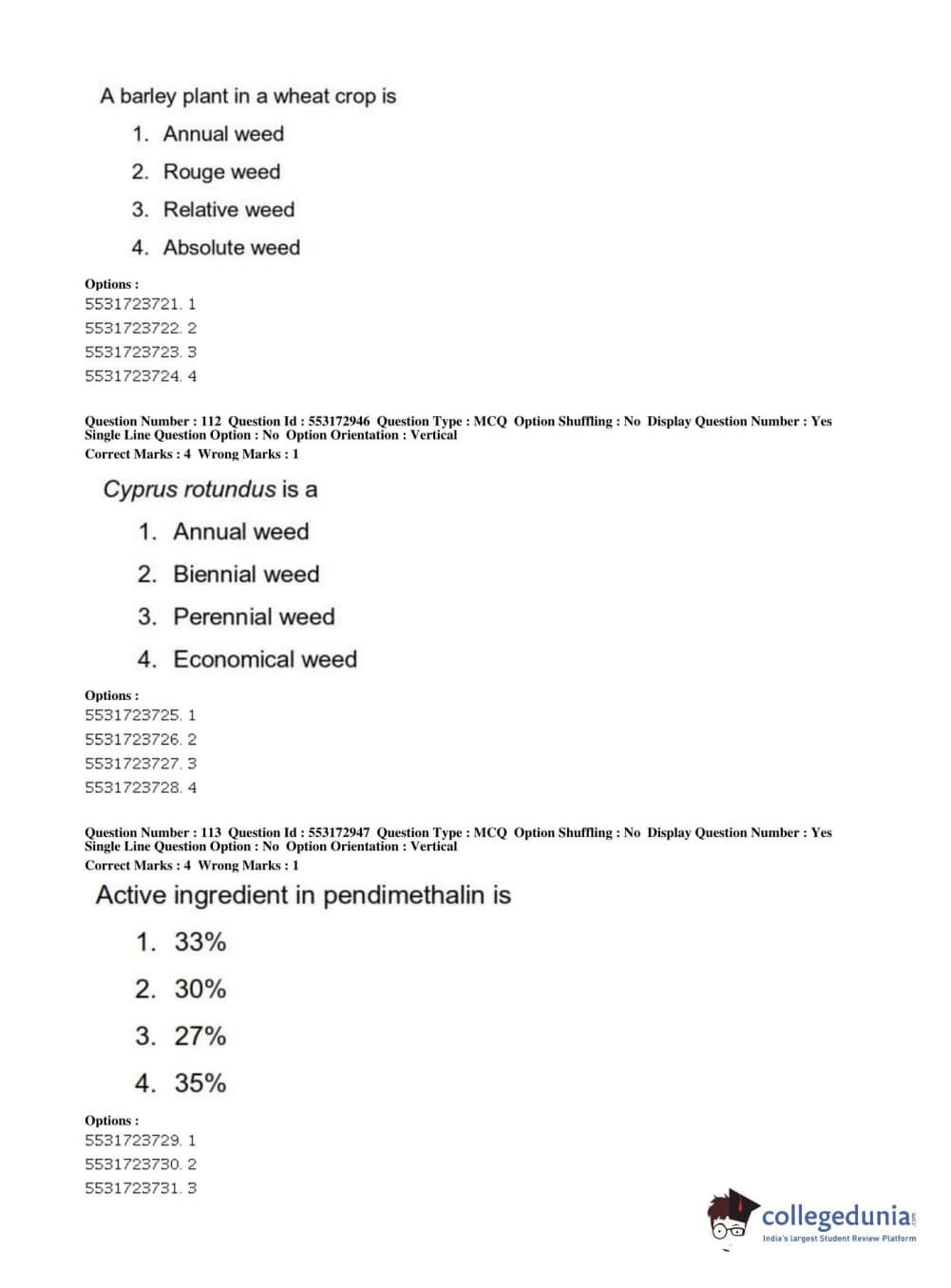 ICAR AIEEA 2019 PG - AGRONOMY Question paper with answer key pdf conducted on July 1, 2019 in Shift 2 is available for download. The exam was successfully organized by National Testing Agency (NTA). The question paper comprised a total of 160 questions.