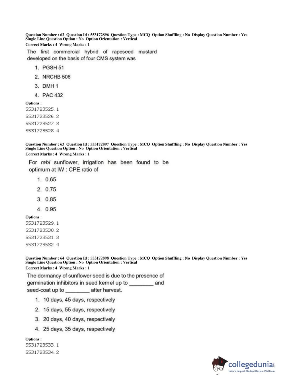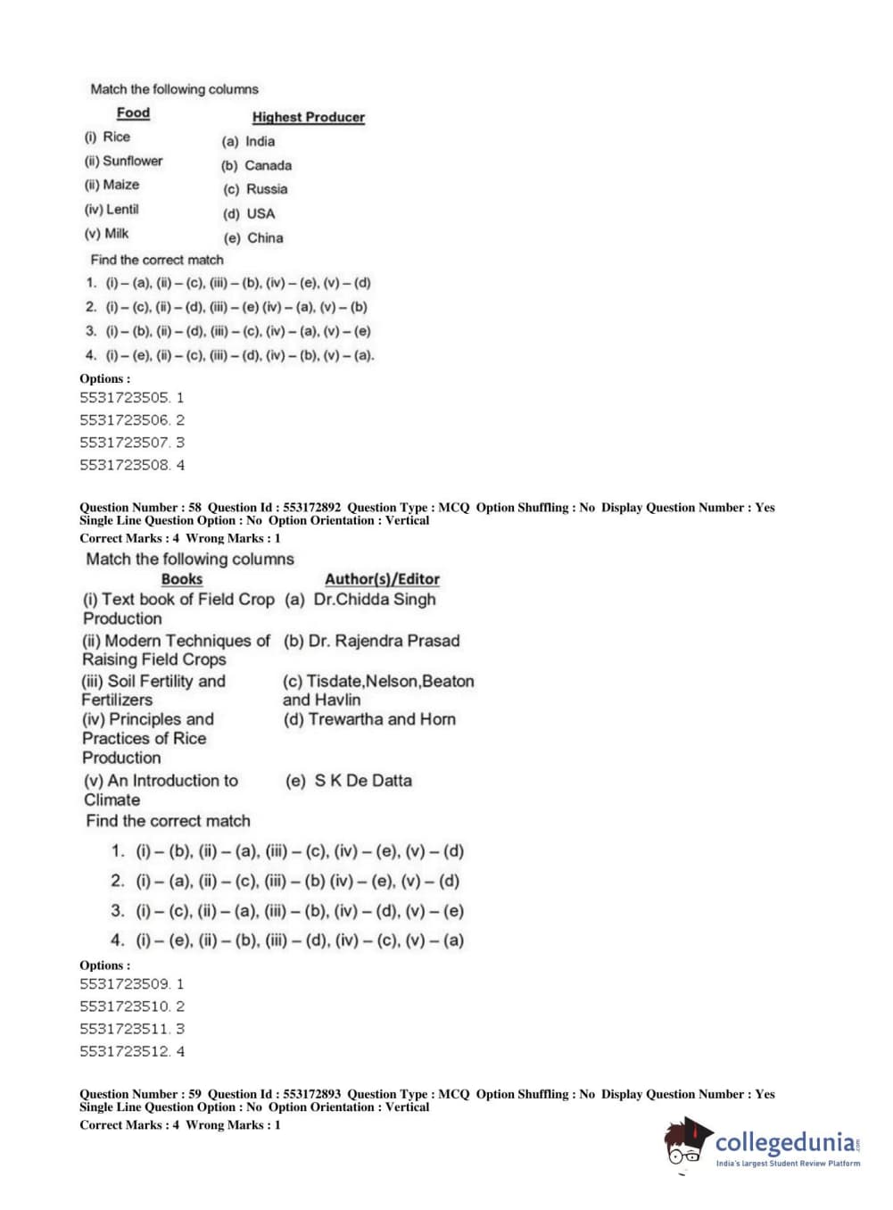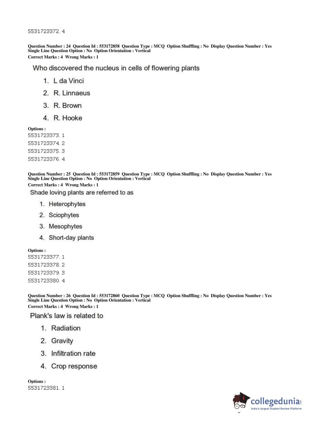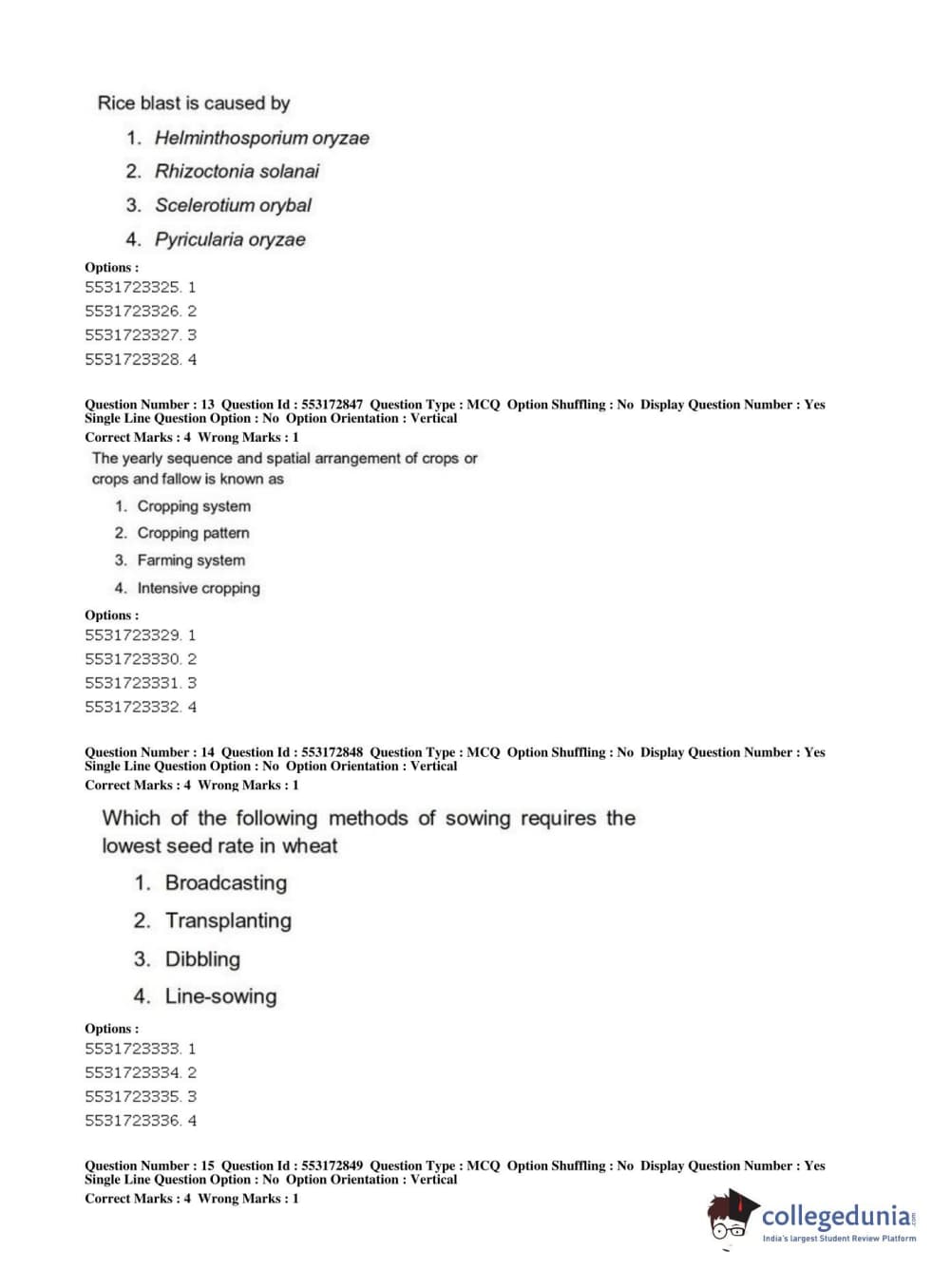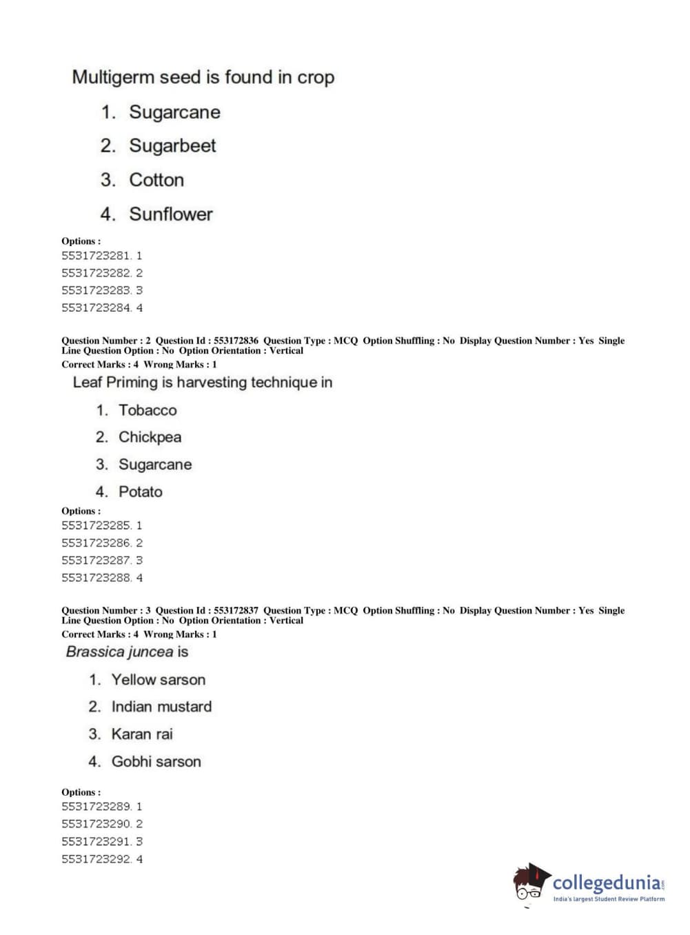 | ICAR AIEEA 2019 PG - AGRONOMY Question Paper PDF | ICAR AIEEA 2019 PG - AGRONOMY Answer Key PDF |