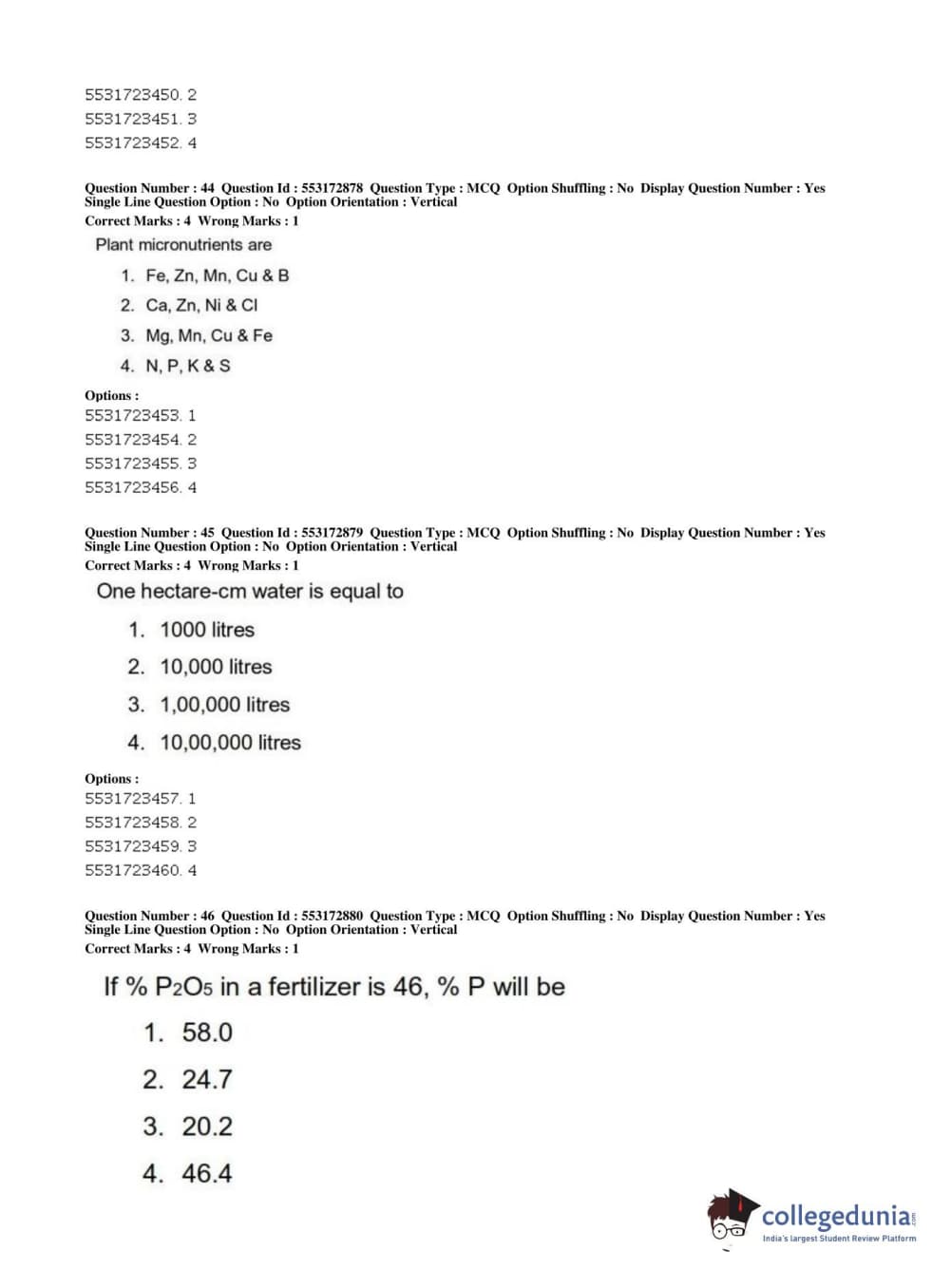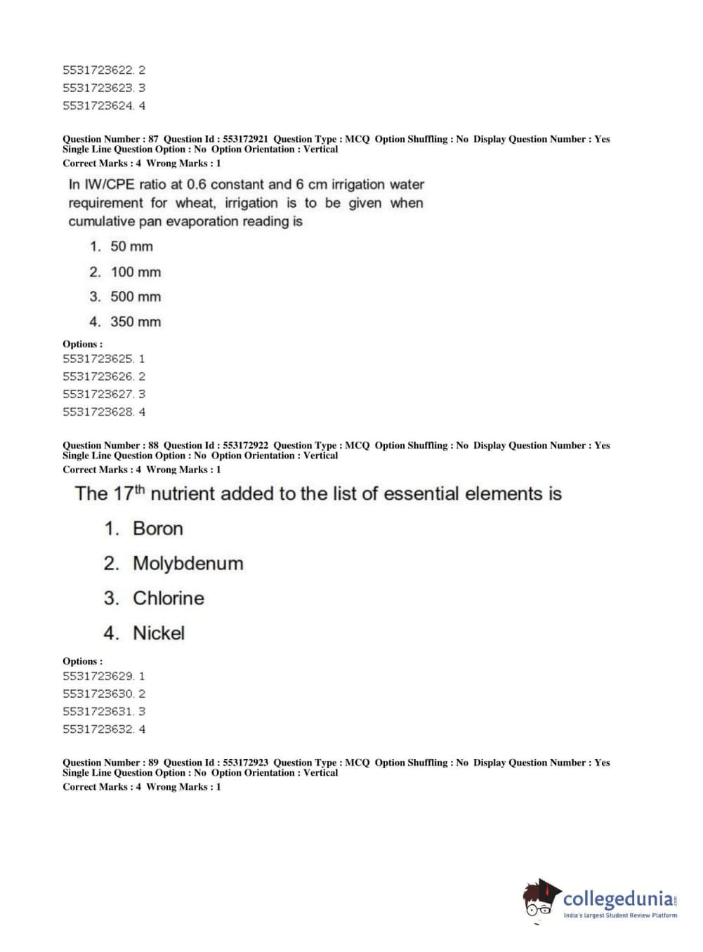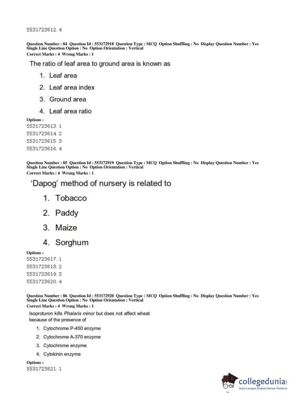 ICAR AIEEA 2019 PG - AGRONOMY Question Paper with Answer Key PDFs Shift 2