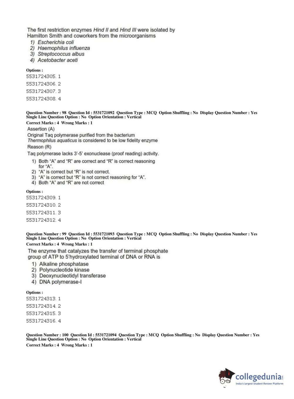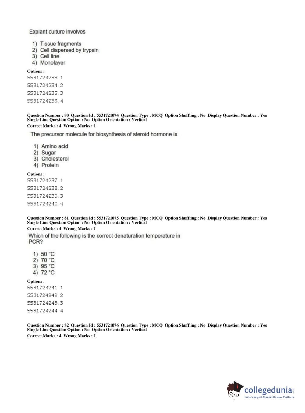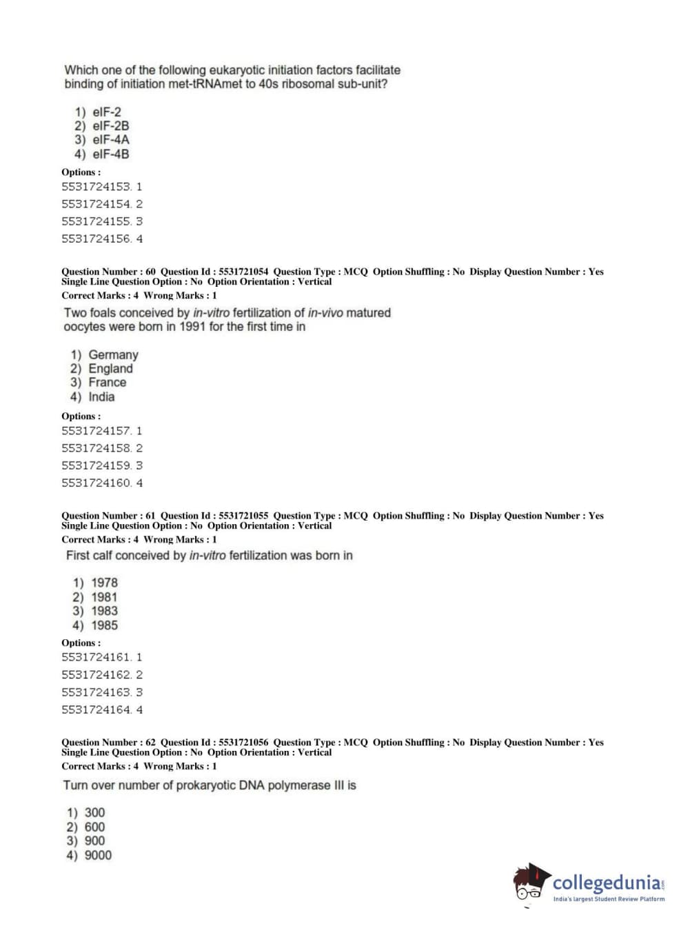 ICAR AIEEA 2019 PG - ANIMAL BIOTECHNOLOGY Question Paper with Answer Key PDF Shift 2