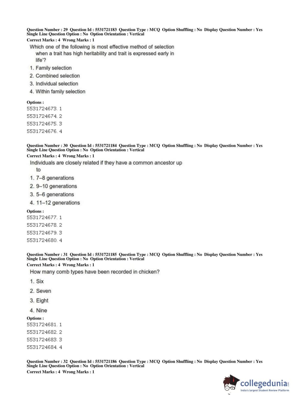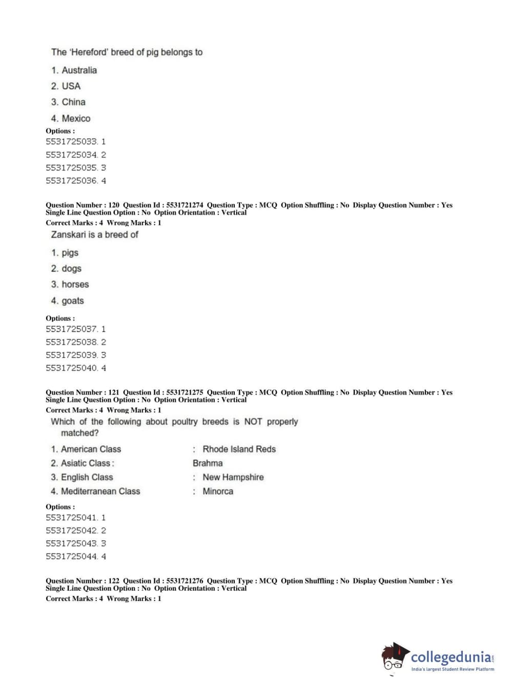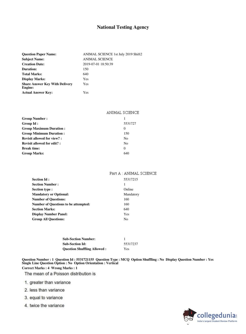 ICAR AIEEA 2019 PG - ANIMAL SCIENCE Question paper with answer key pdf conducted on July 1, 2019 in Shift 2 is available for download. The exam was successfully organized by National Testing Agency (NTA). The question paper comprised a total of 160 questions.