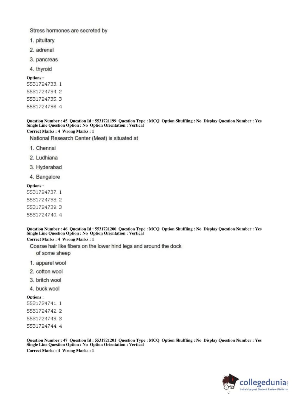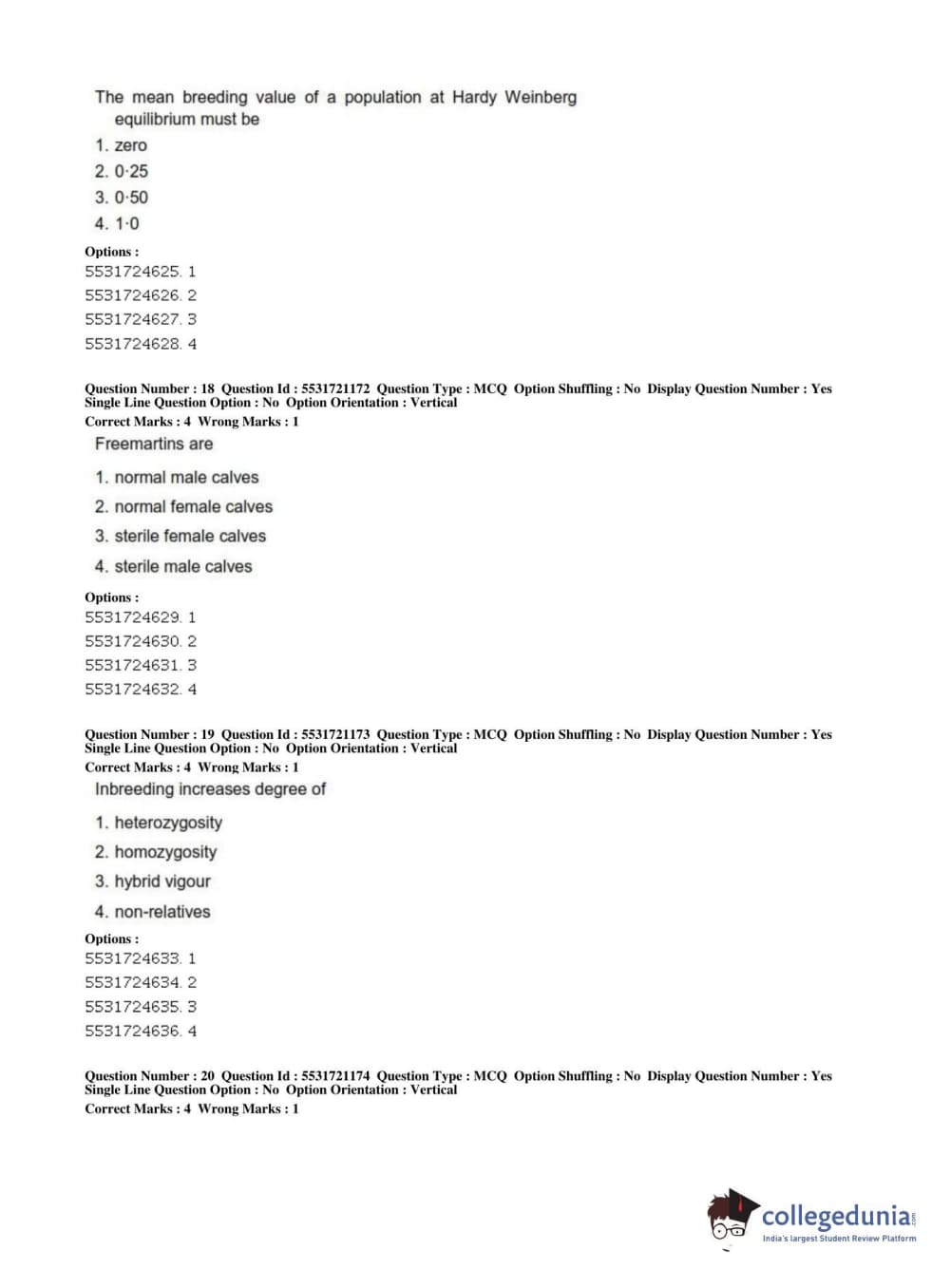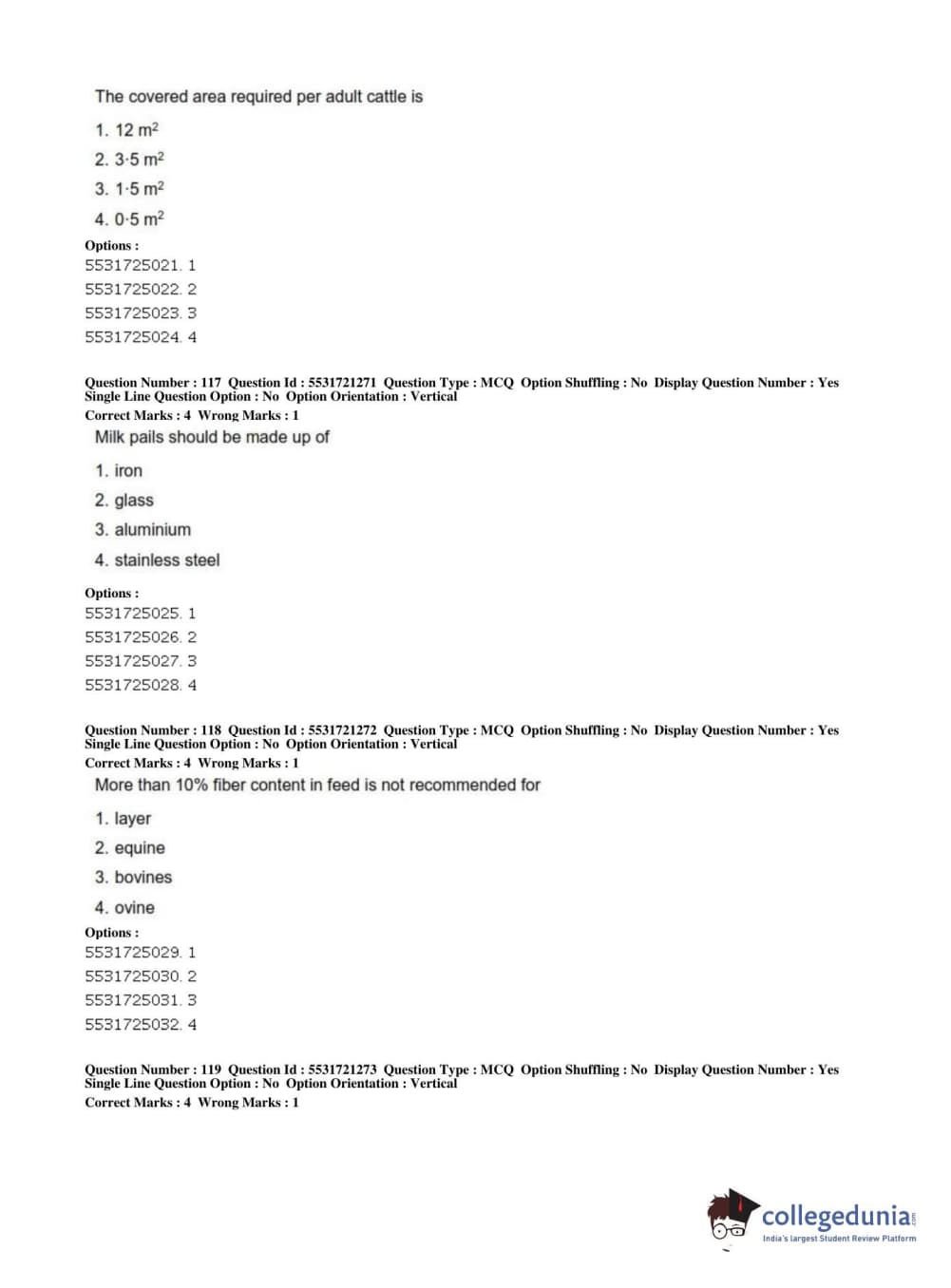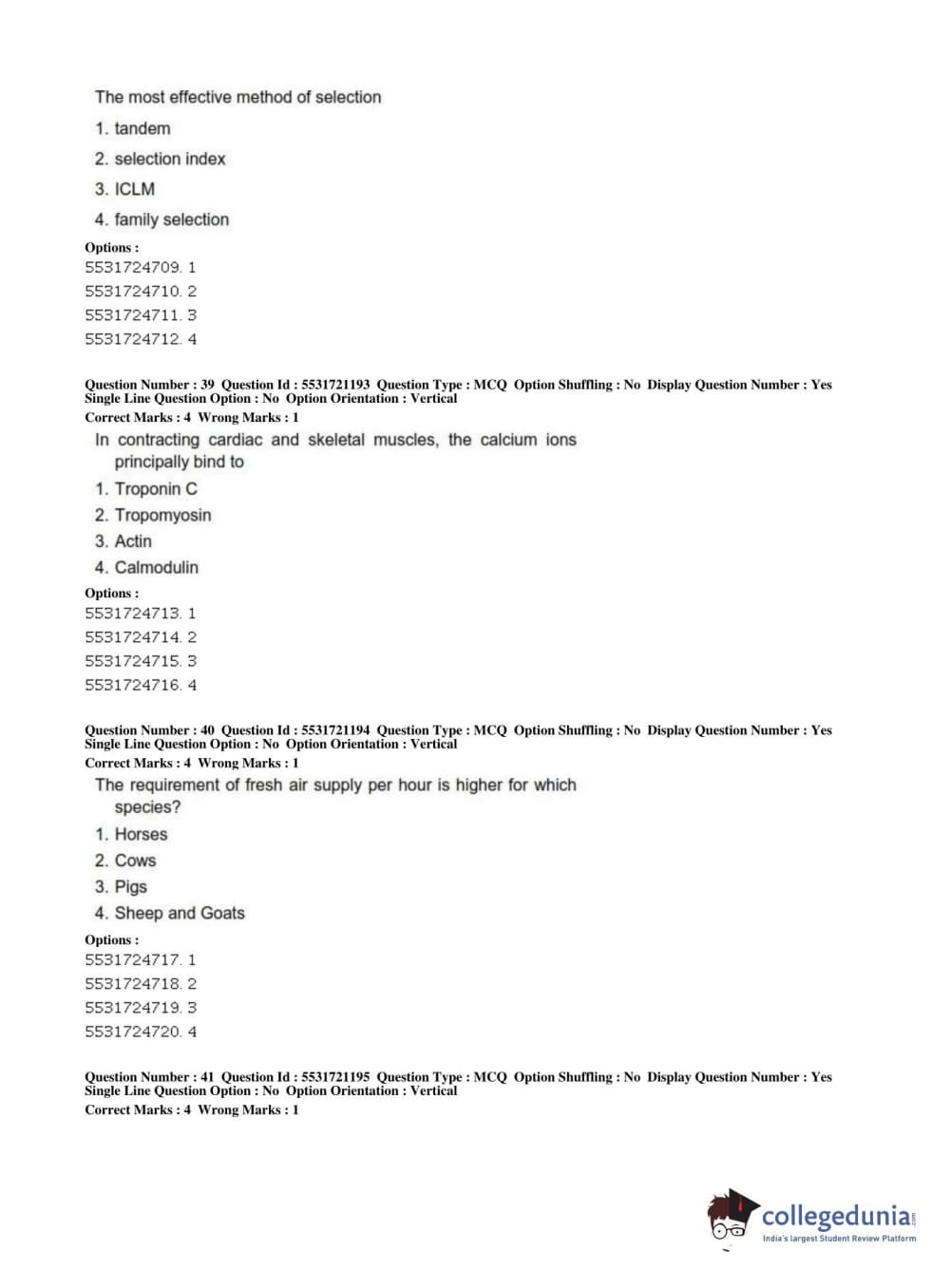 ICAR AIEEA 2019 PG - ANIMAL SCIENCE Question Paper with Answer Key PDFs Shift 2