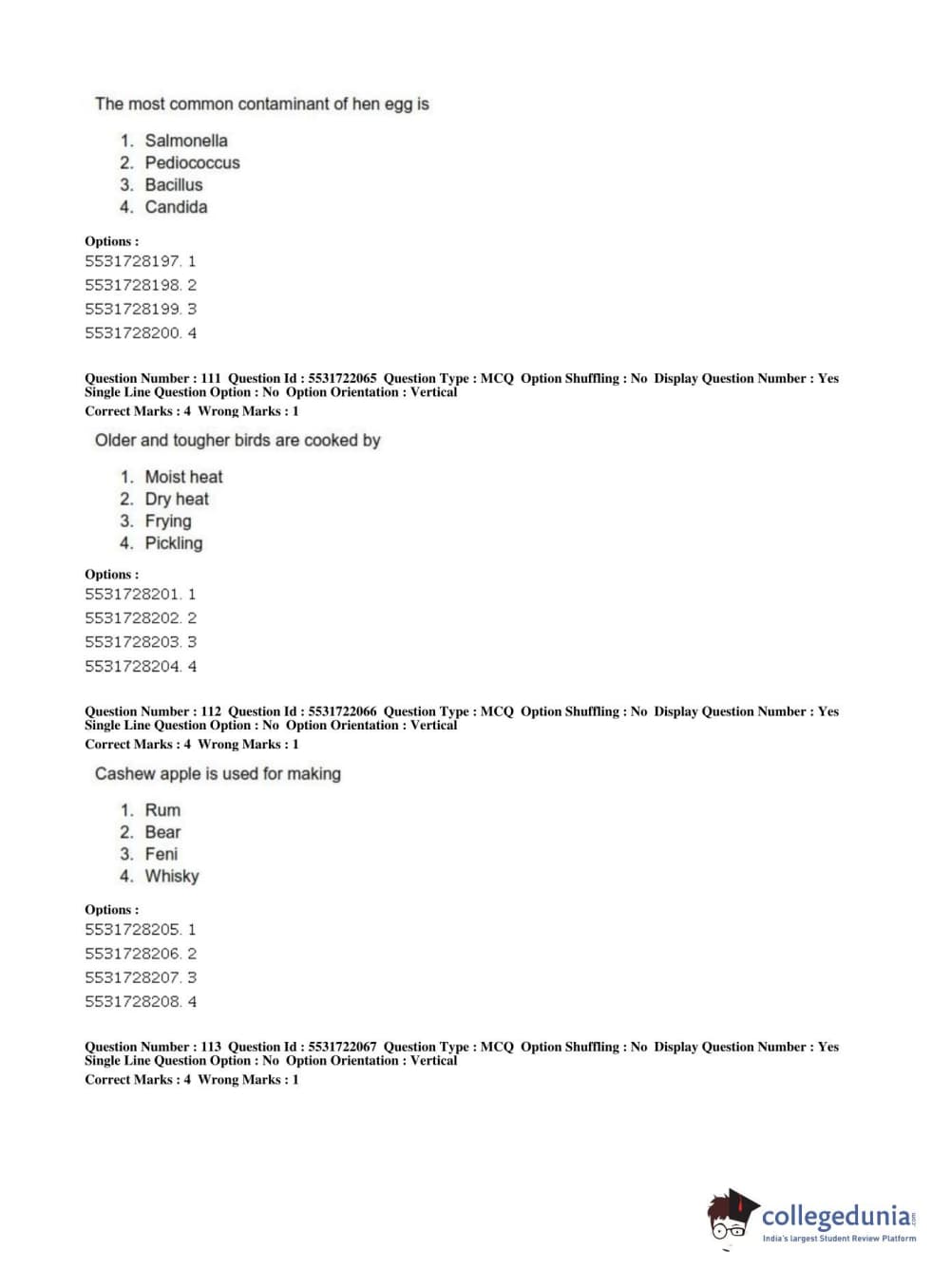 | ICAR AIEEA 2019 PG - FOOD SCIENCE TECHNOLOGY Question Paper PDF | ICAR AIEEA 2019 PG - FOOD SCIENCE TECHNOLOGY Answer Key PDF |