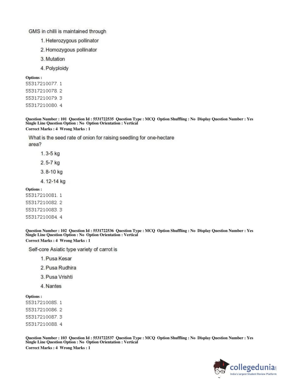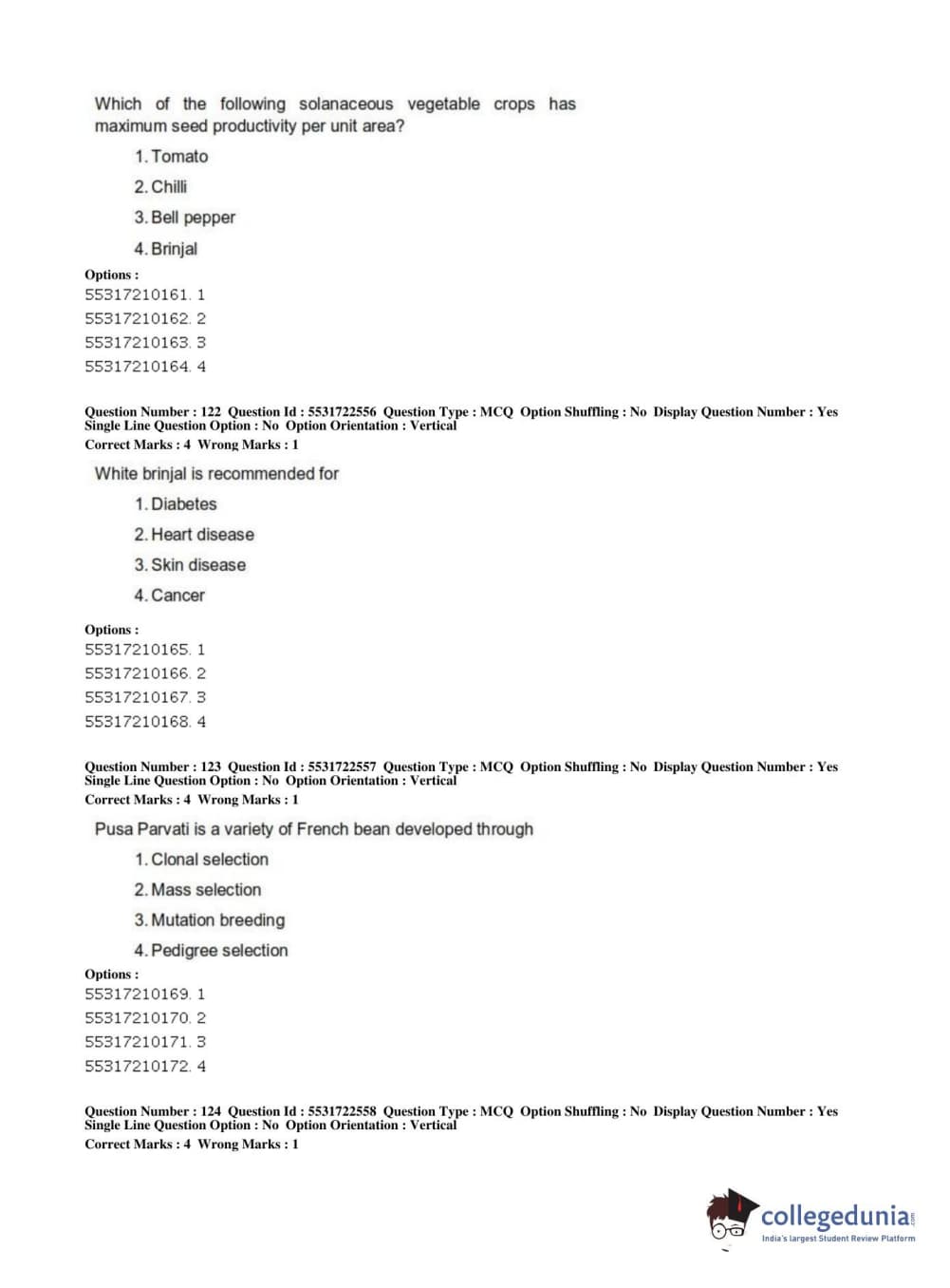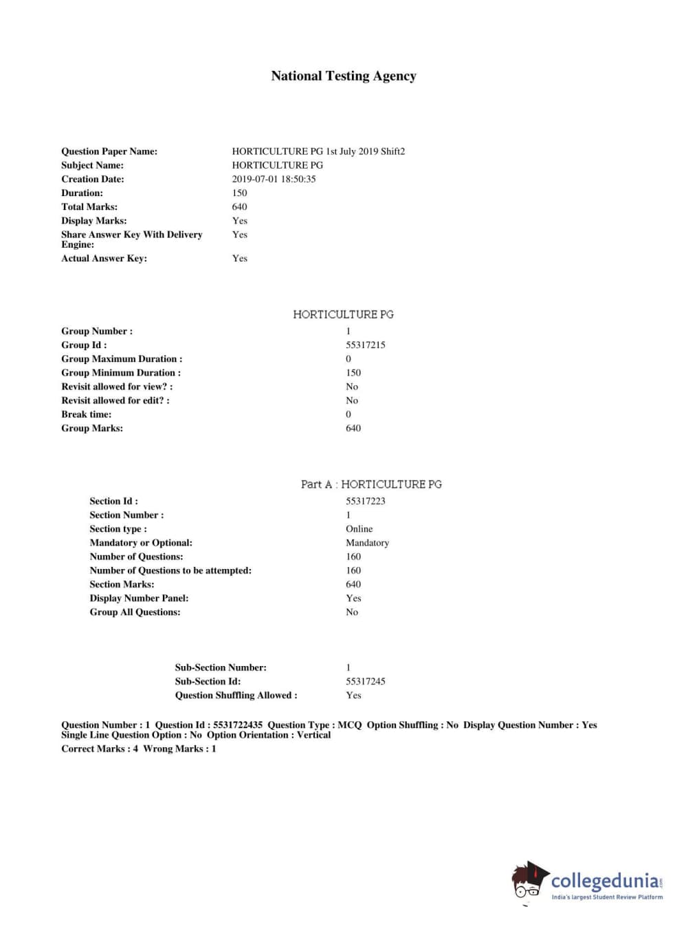 ICAR AIEEA 2019 PG - HORTICULTURE Question paper with answer key pdf conducted on July 1, 2019 in Shift 2 is available for download. The exam was successfully organized by National Testing Agency (NTA). The question paper comprised a total of 160 questions.