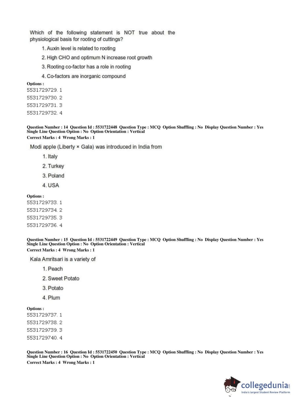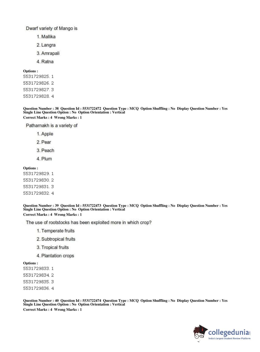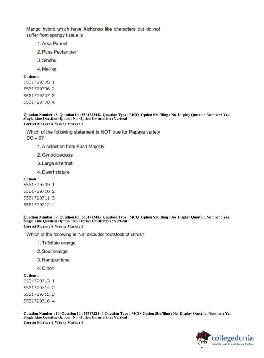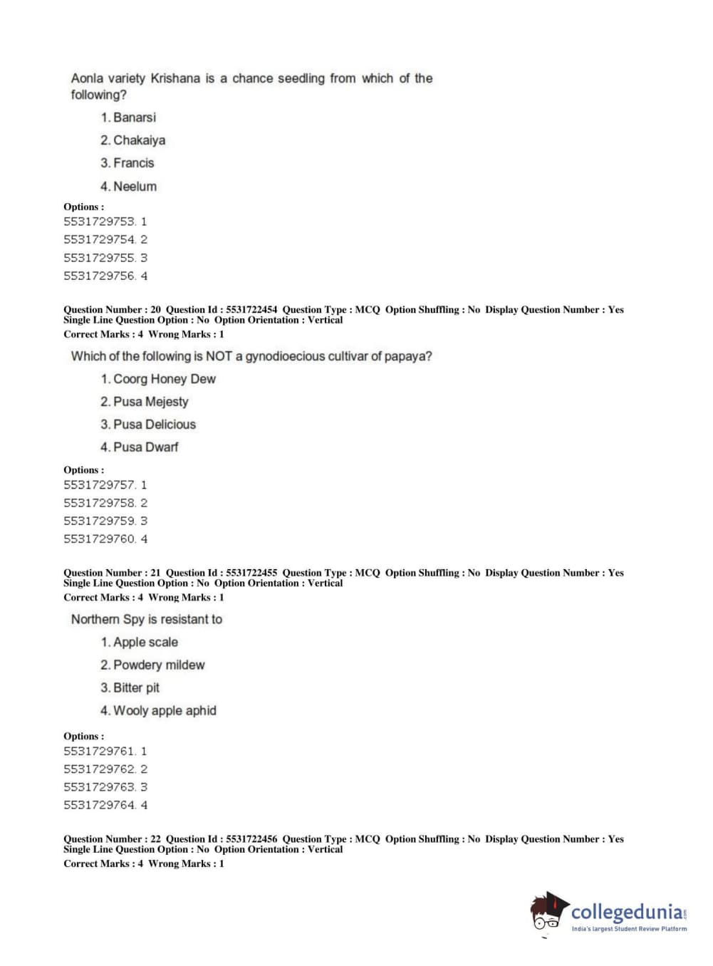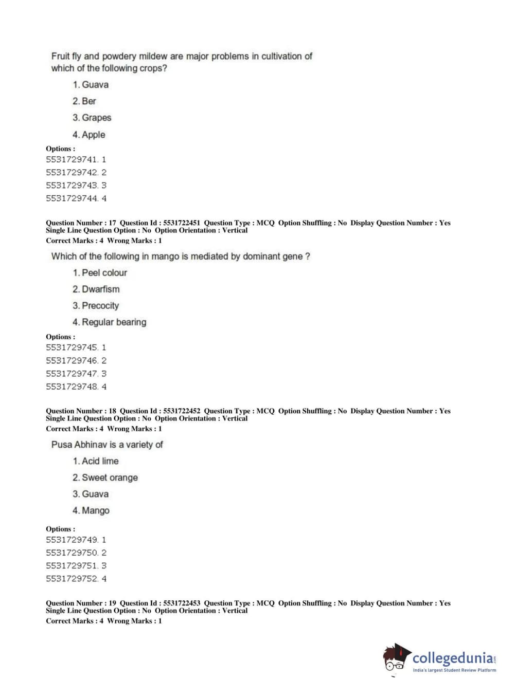 ICAR AIEEA 2019 PG - HORTICULTURE Question Paper with Answer Key PDFs Shift 2