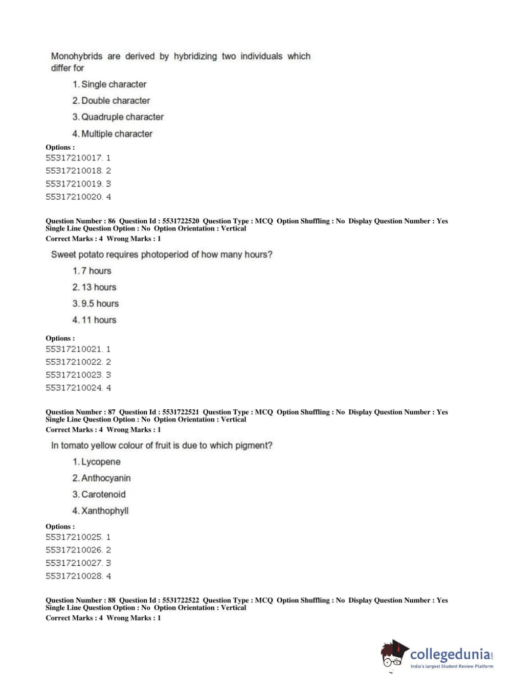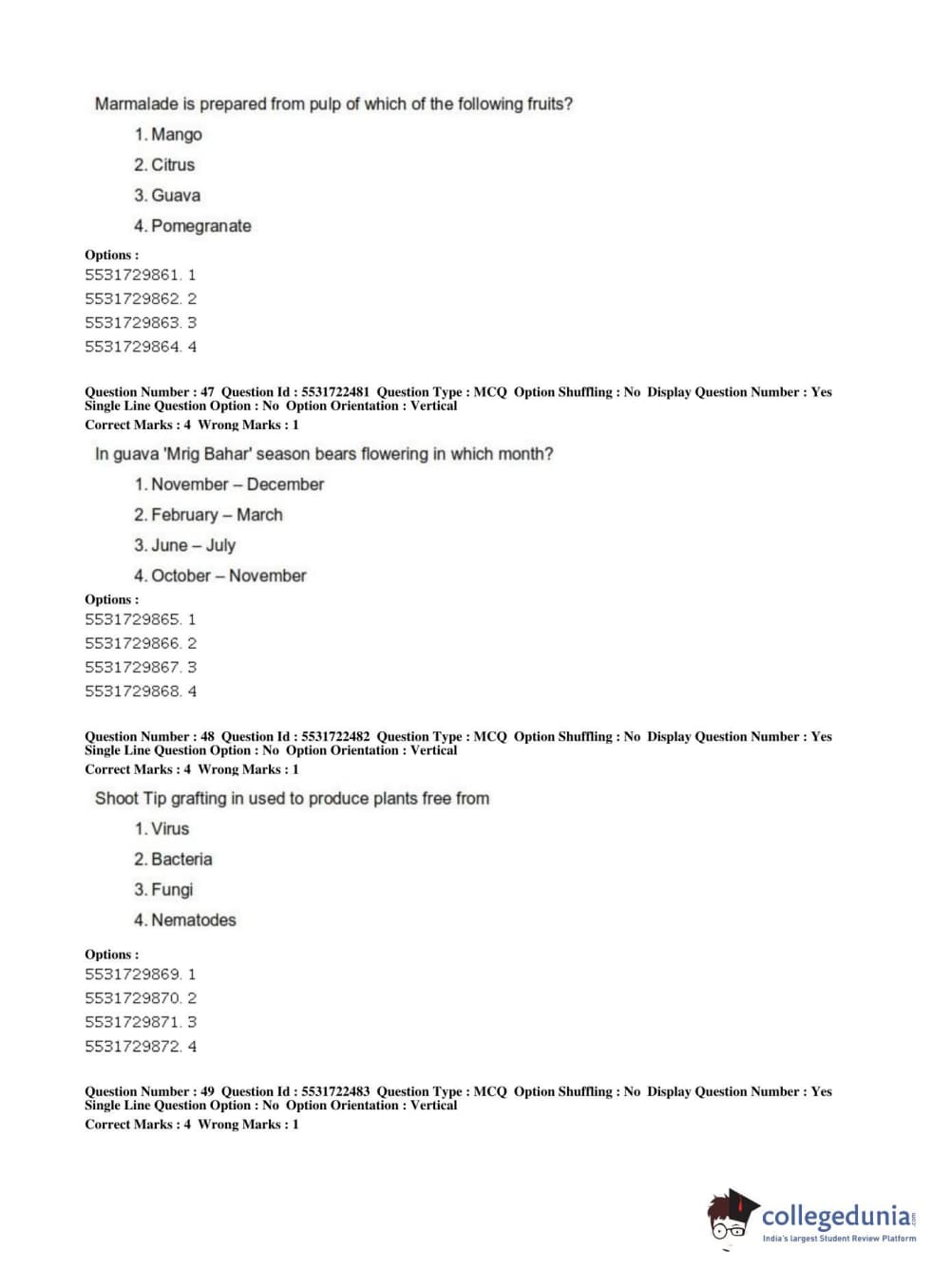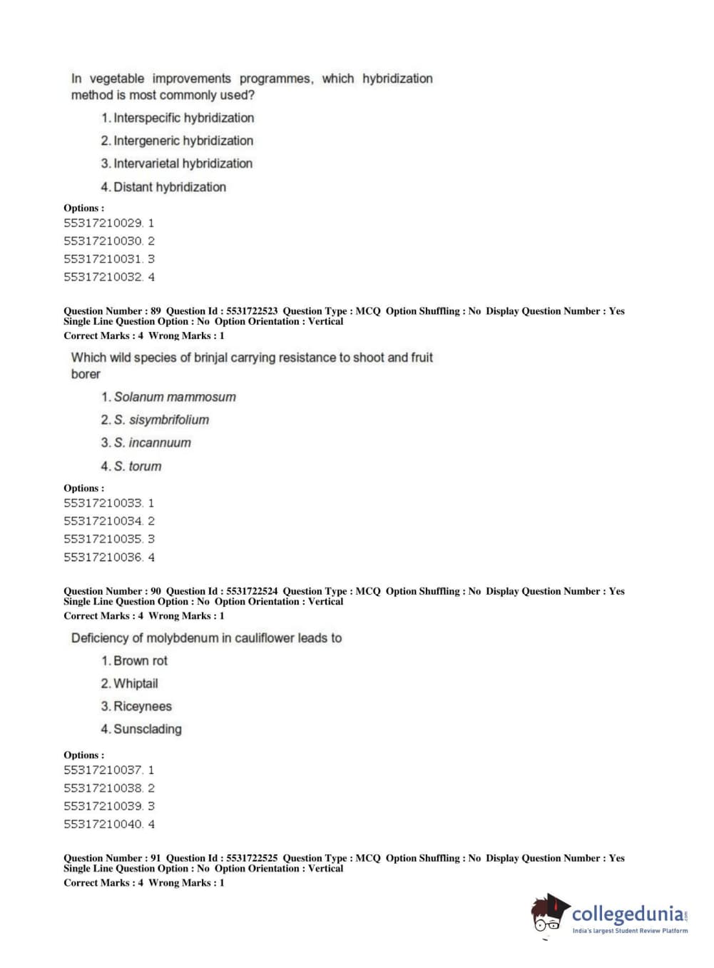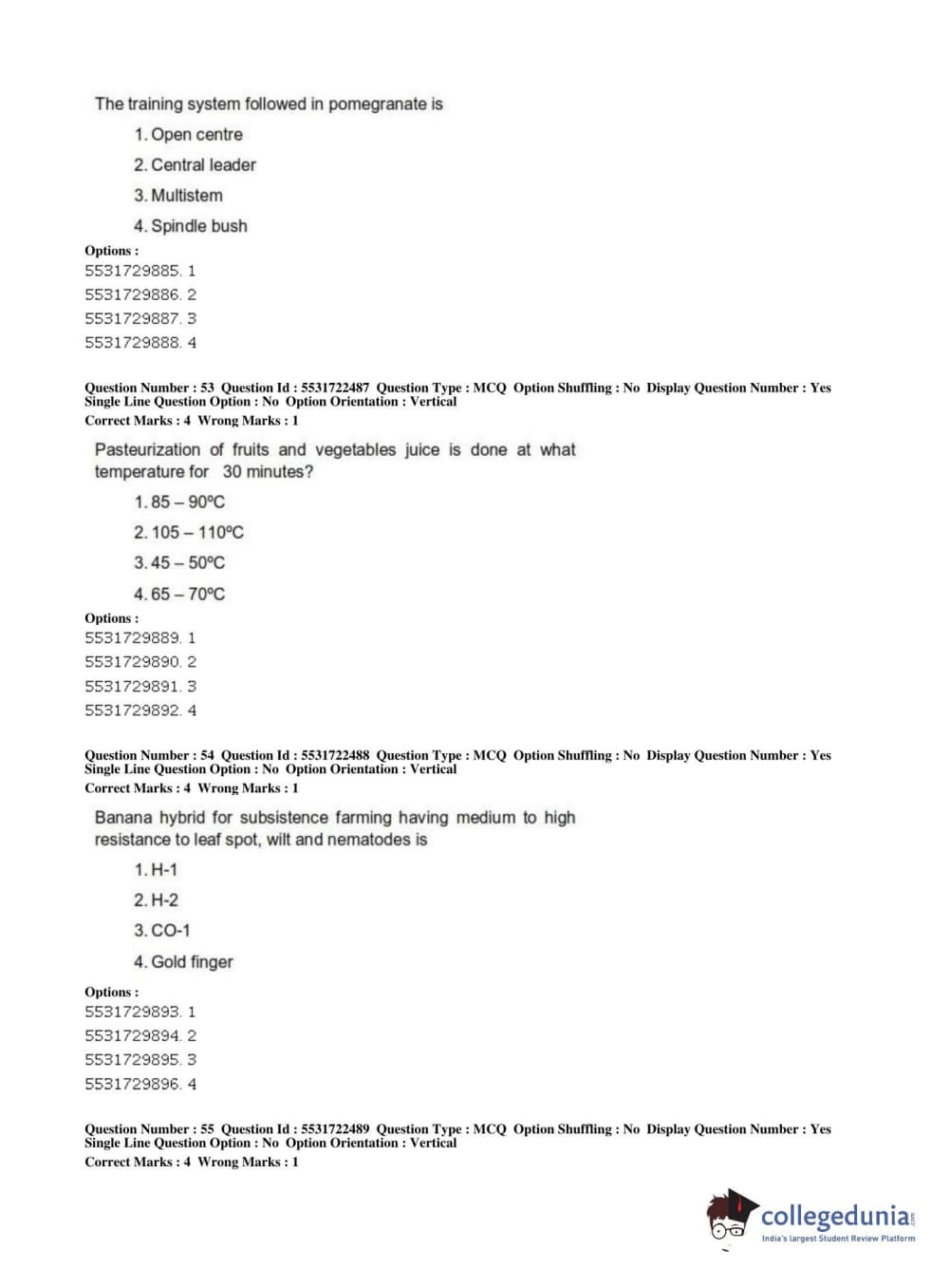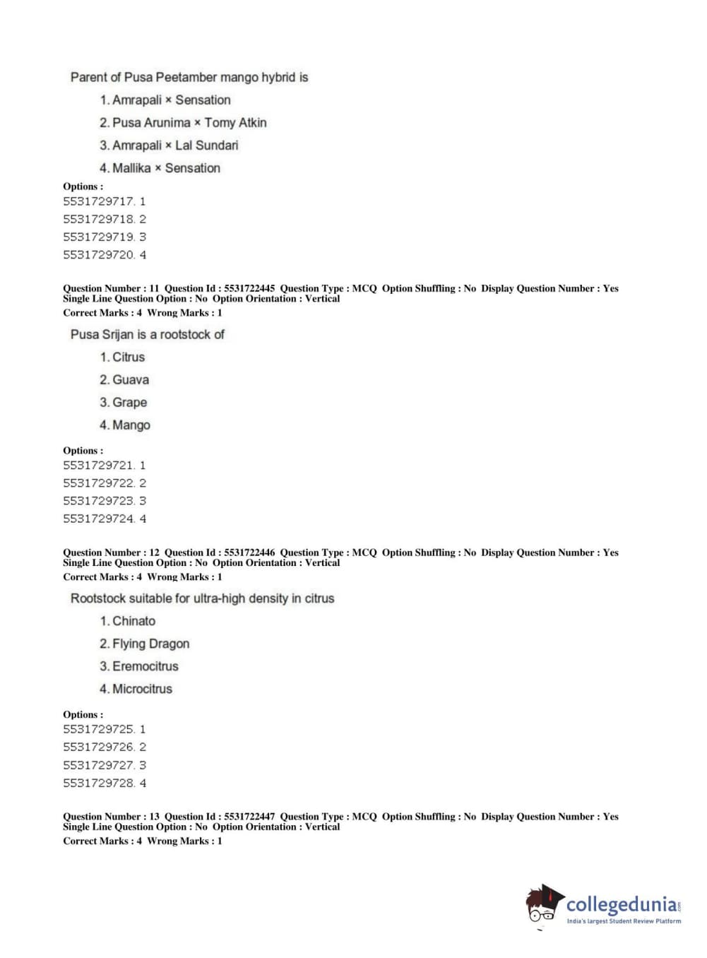 ICAR AIEEA 2019 PG - HORTICULTURE Question Paper with Answer Key PDFs Shift 2