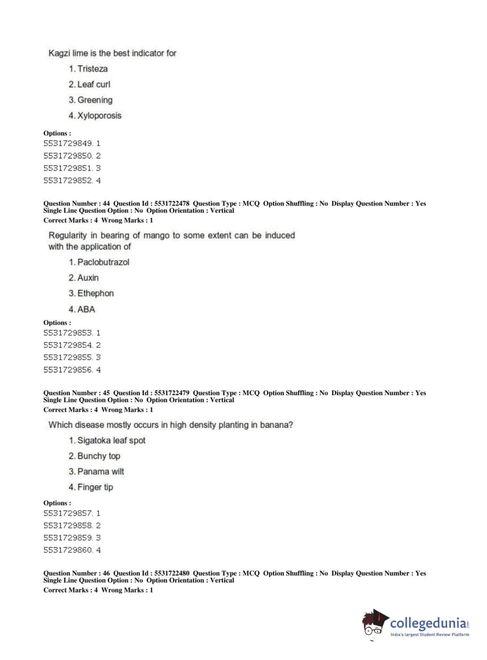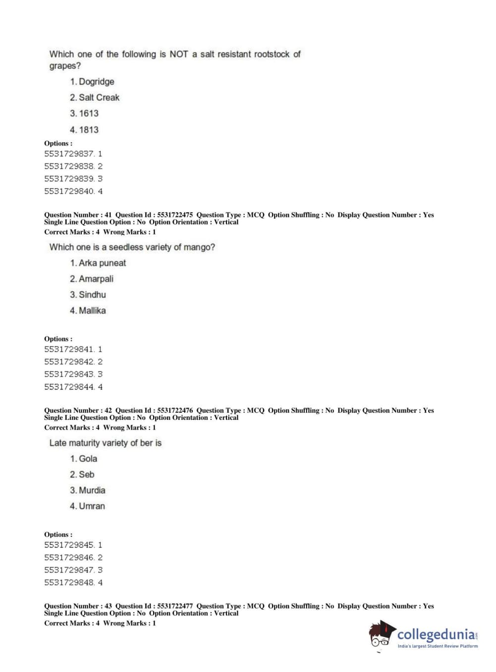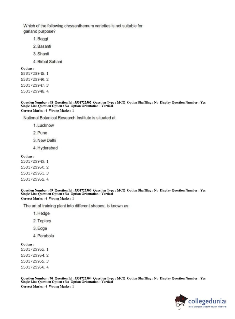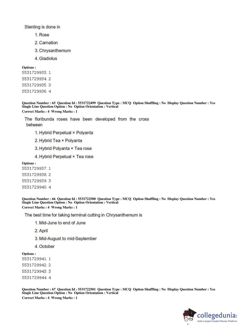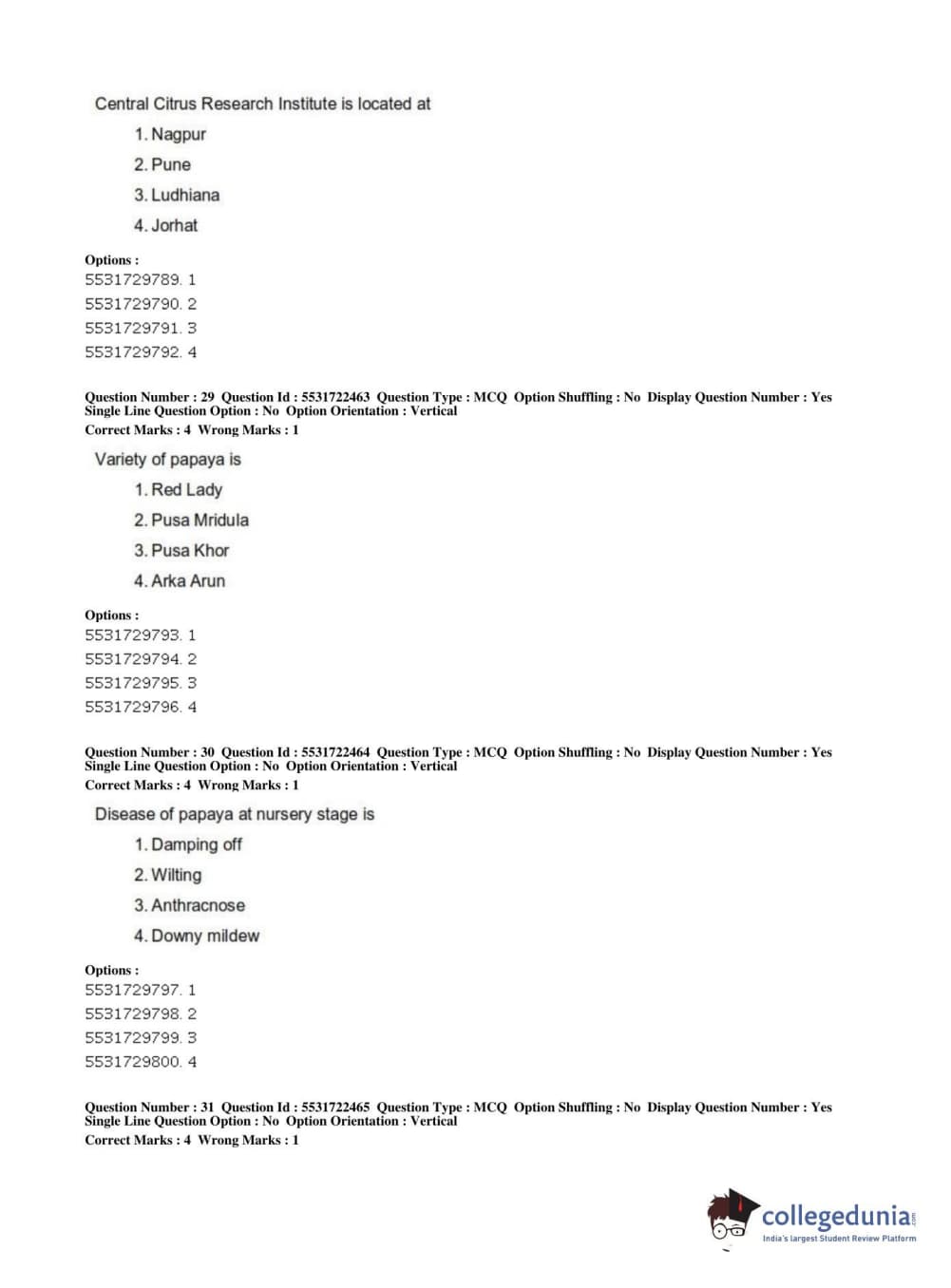 ICAR AIEEA 2019 PG - HORTICULTURE Question Paper with Answer Key PDFs Shift 2