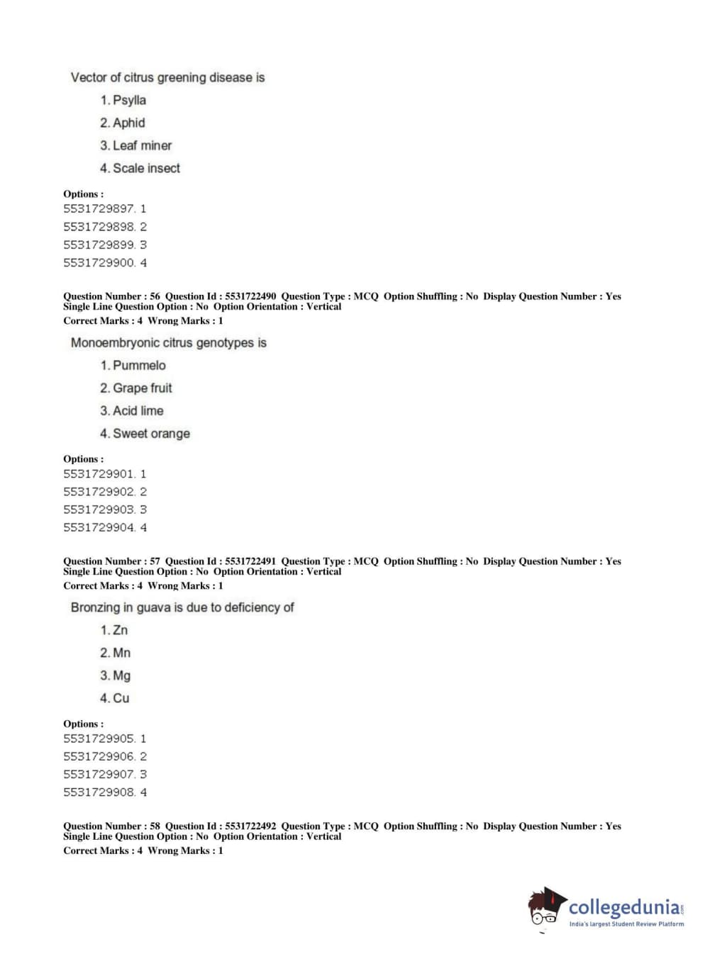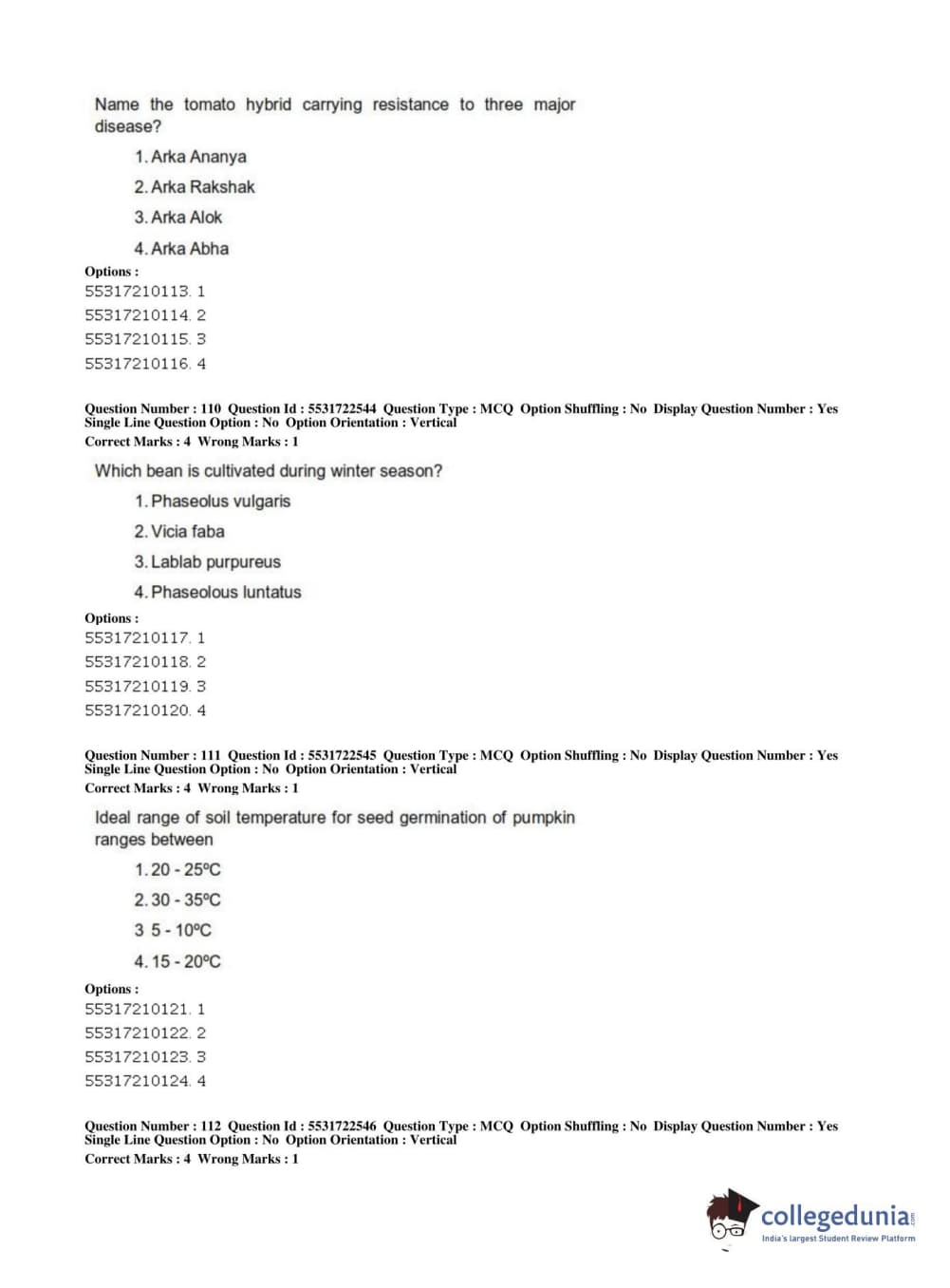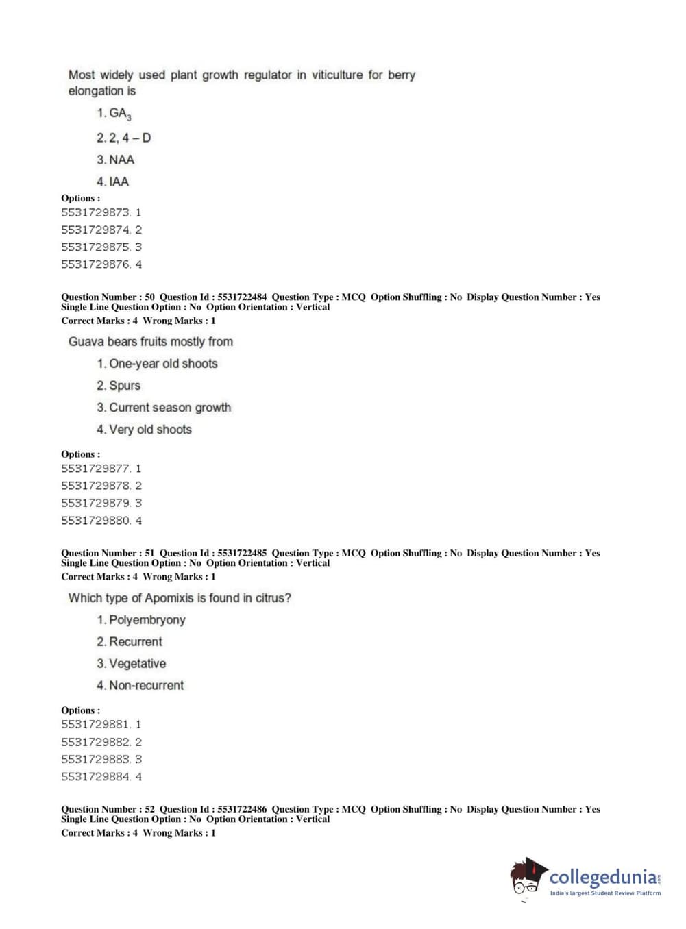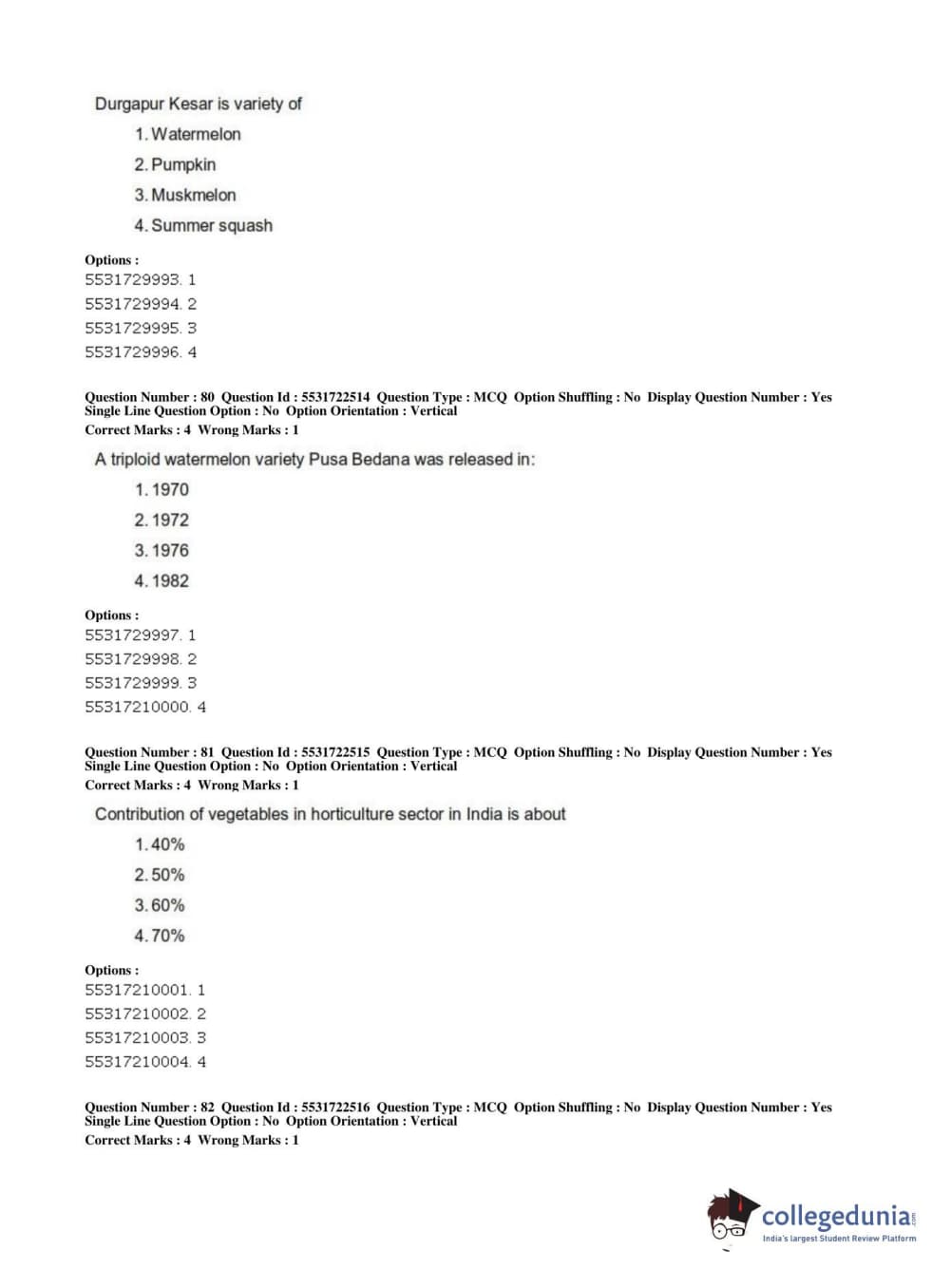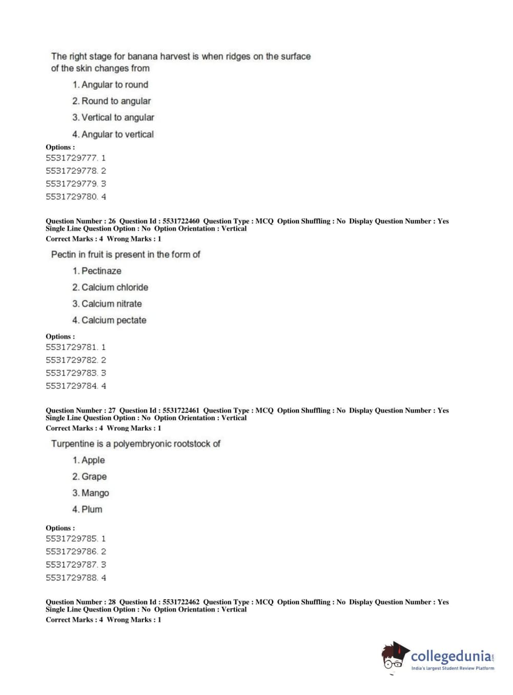 ICAR AIEEA 2019 PG - HORTICULTURE Question Paper with Answer Key PDFs Shift 2