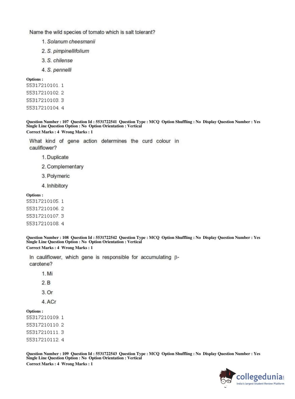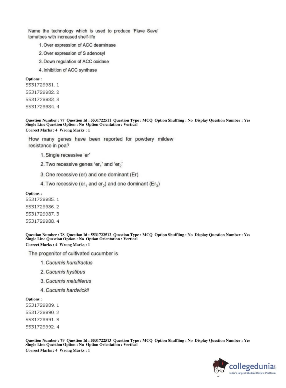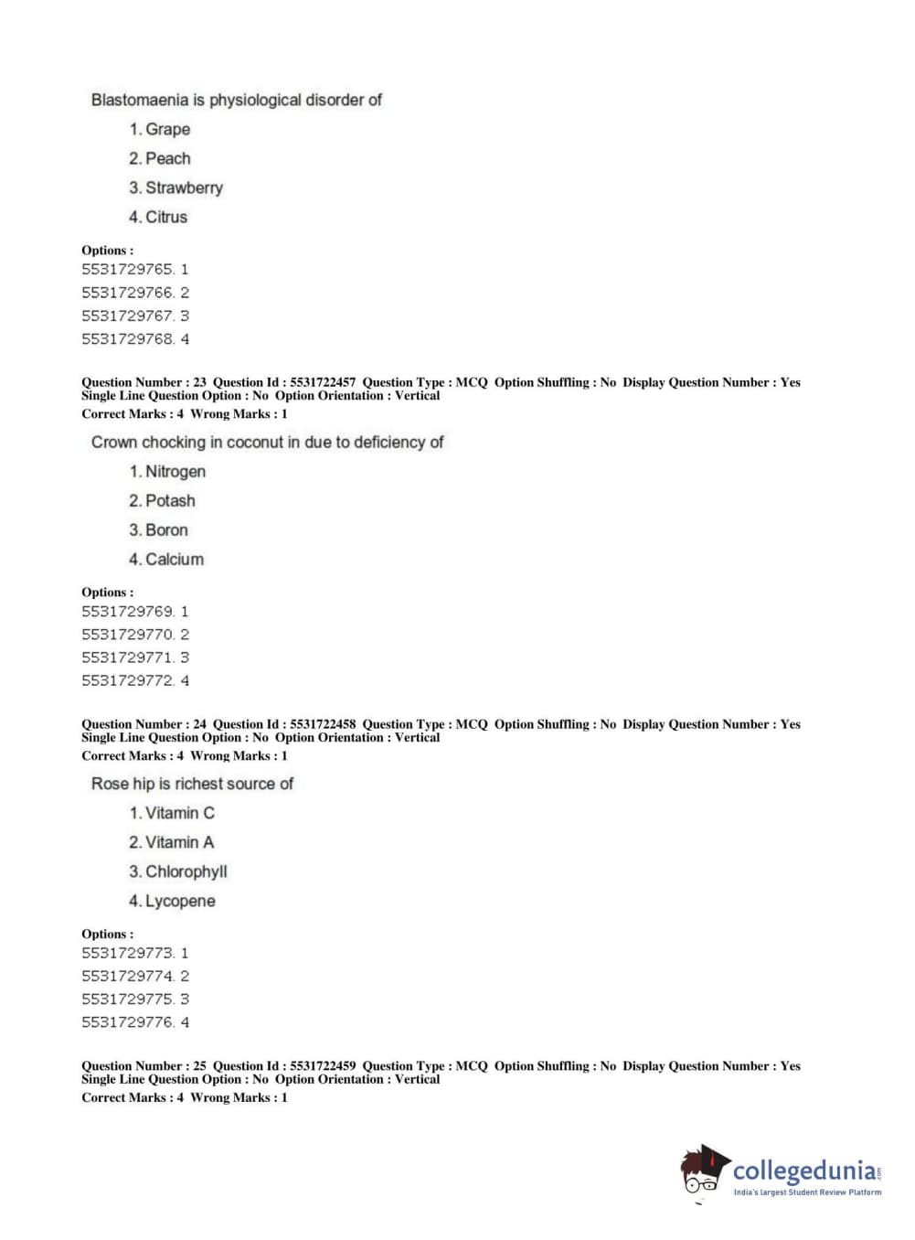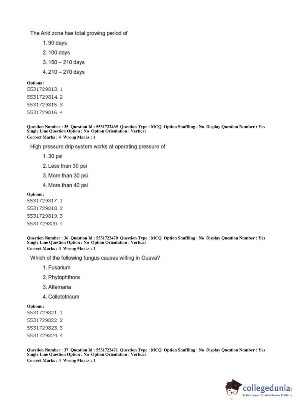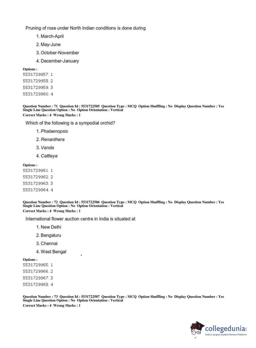 ICAR AIEEA 2019 PG - HORTICULTURE Question Paper with Answer Key PDFs Shift 2