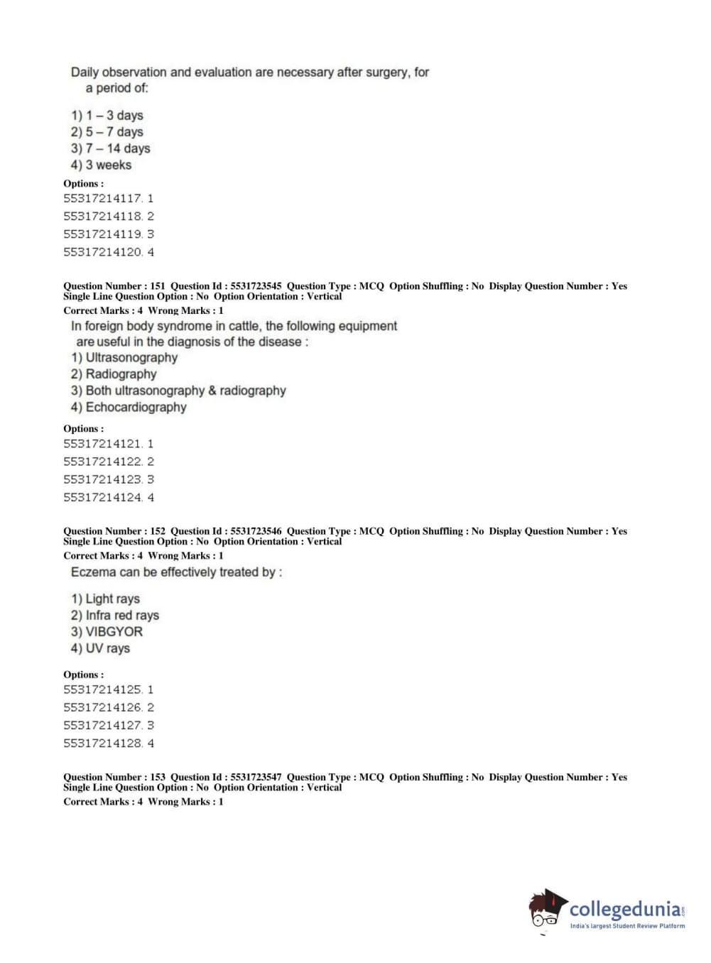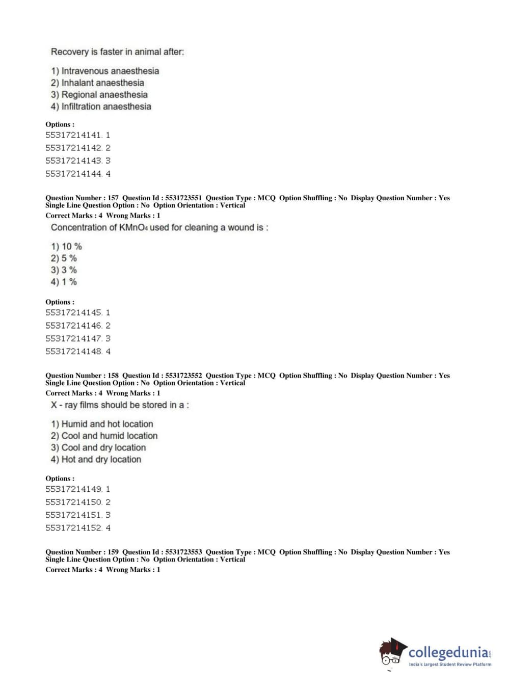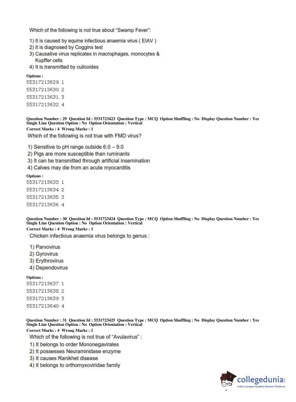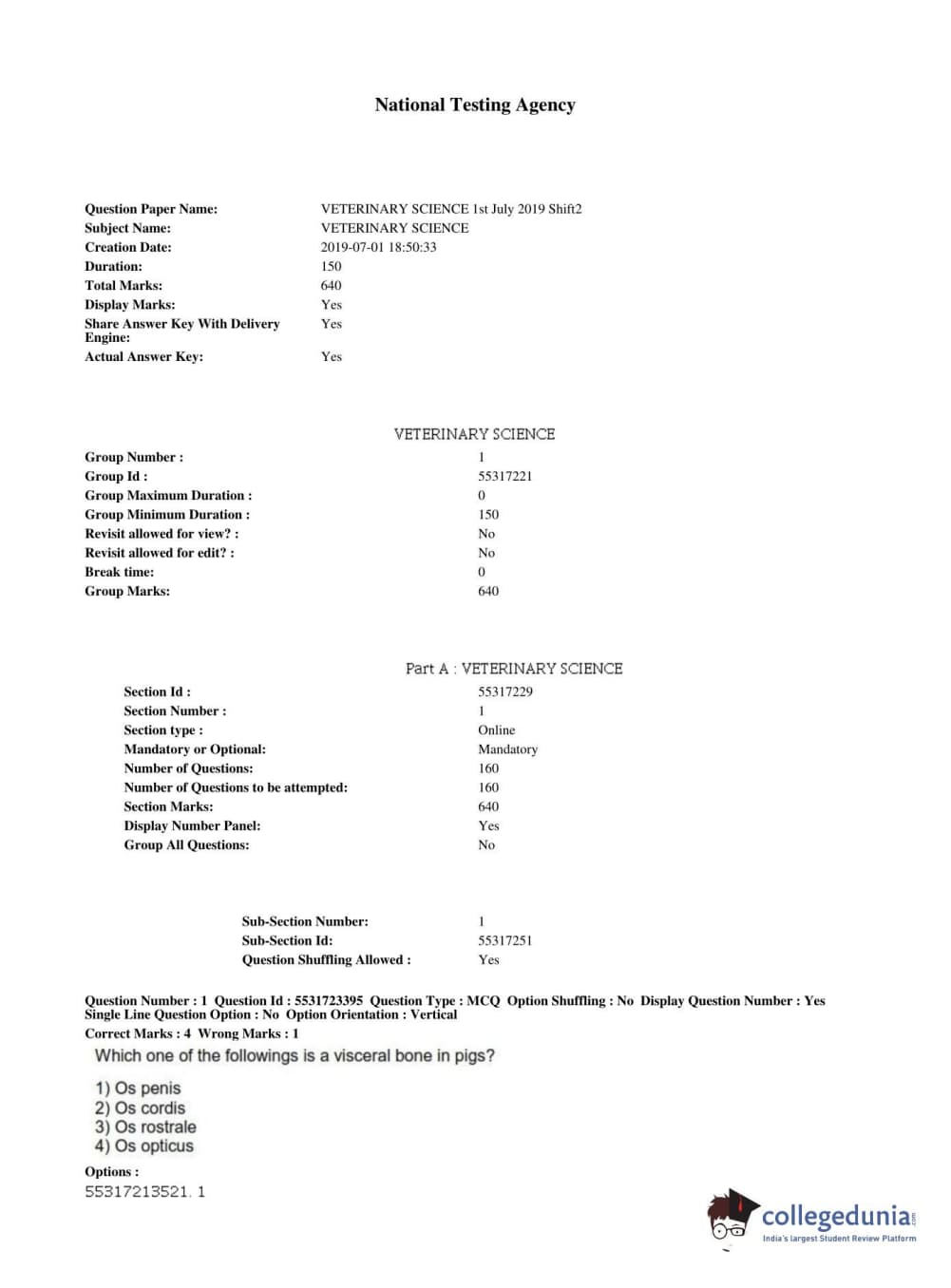ICAR AIEEA 2019 PG - VETERINARY SCIENCE Question paper with answer key pdf conducted on July 1, 2019 in Shift 2 is available for download. The exam was successfully organized by National Testing Agency (NTA). The question paper comprised a total of 160 questions.