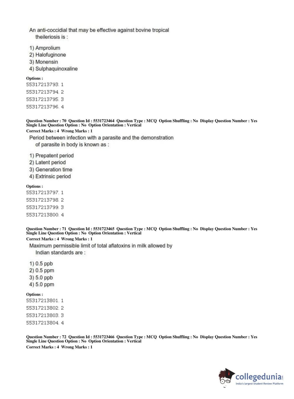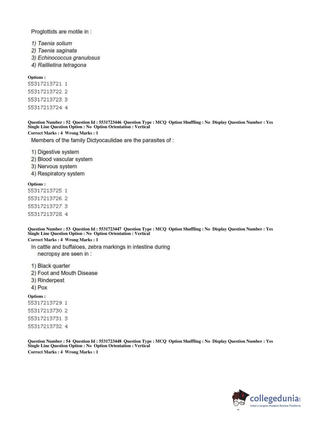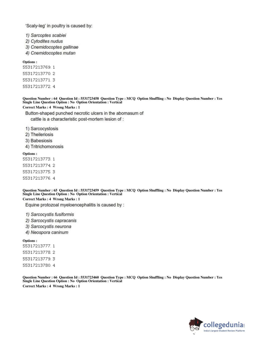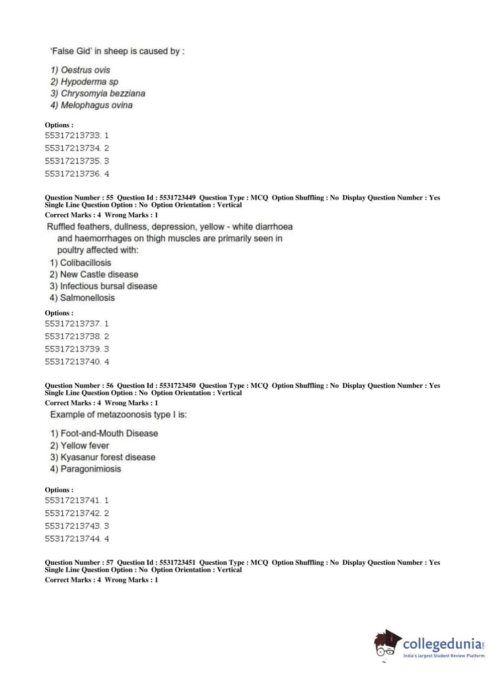 ICAR AIEEA 2019 PG - VETERINARY SCIENCE Question Paper with Answer Key PDFs Shift 2