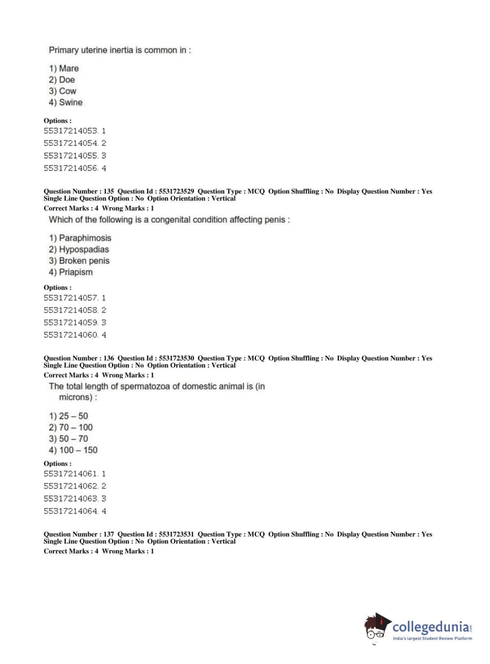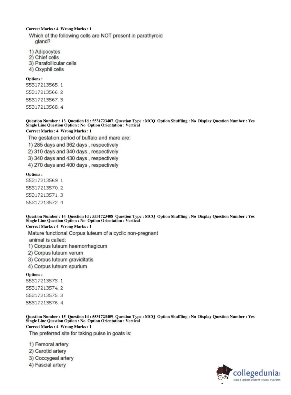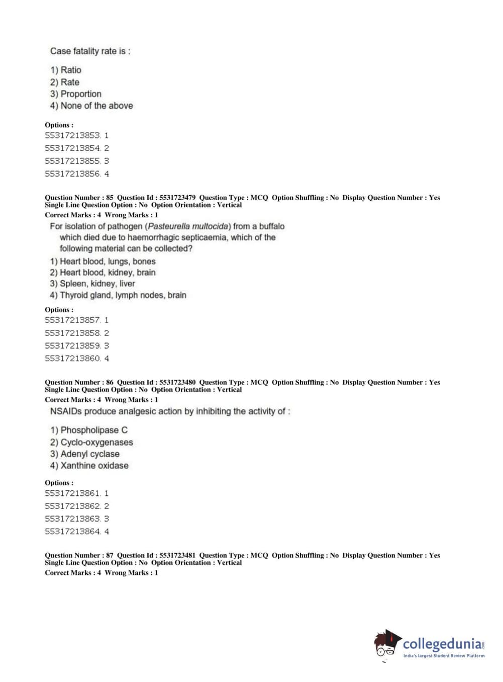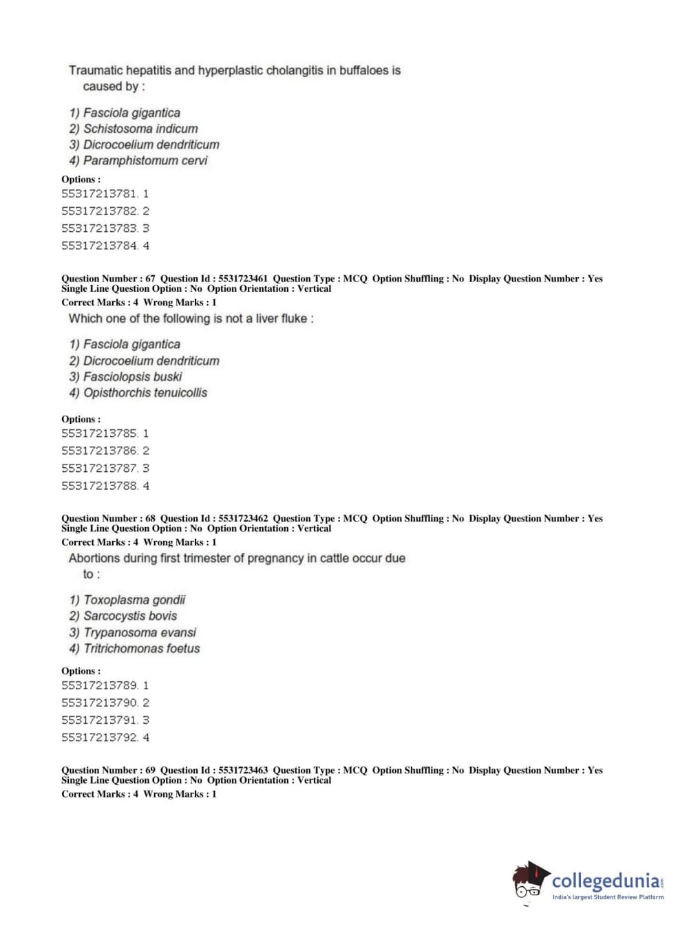 ICAR AIEEA 2019 PG - VETERINARY SCIENCE Question Paper with Answer Key PDFs Shift 2