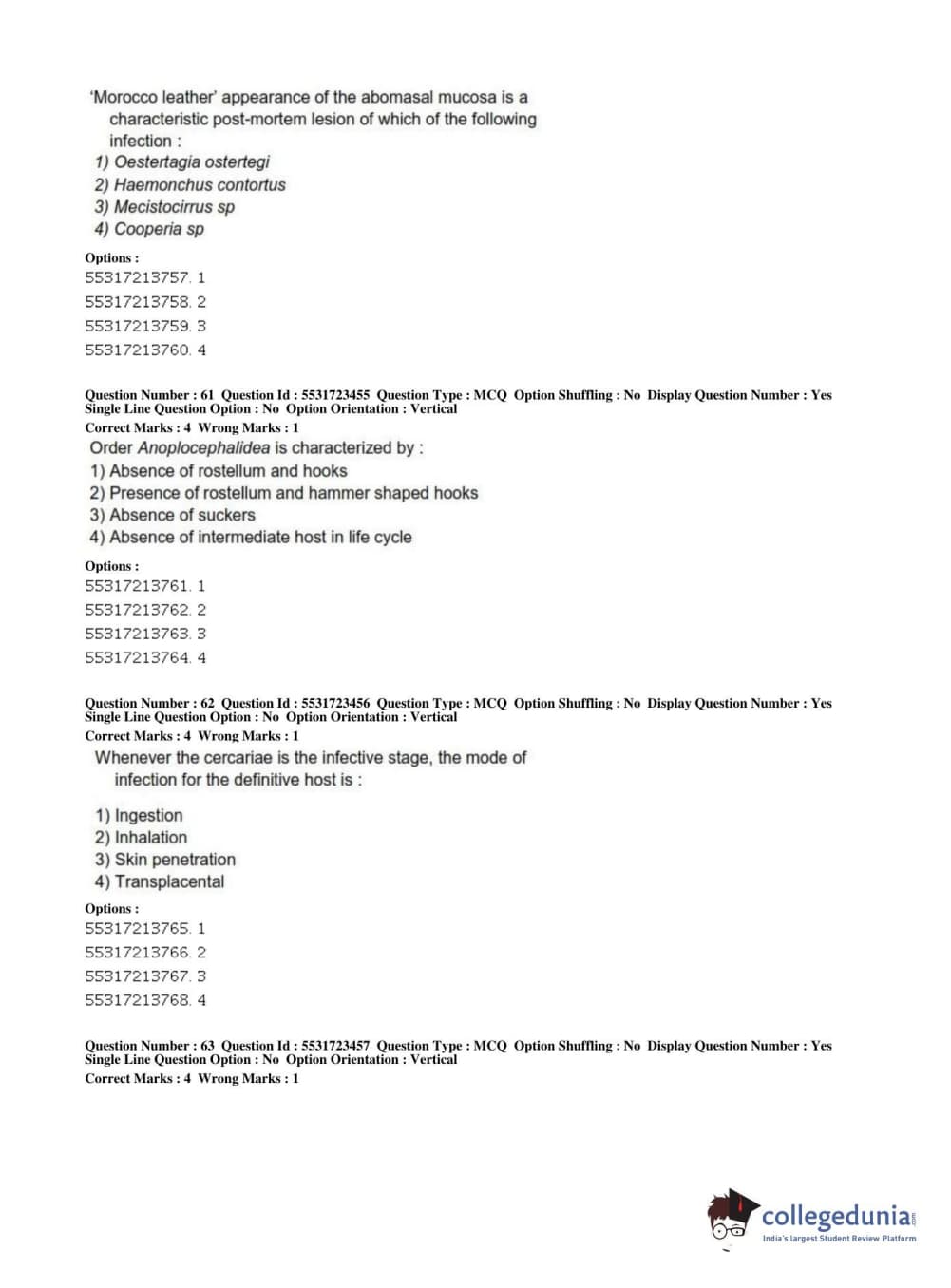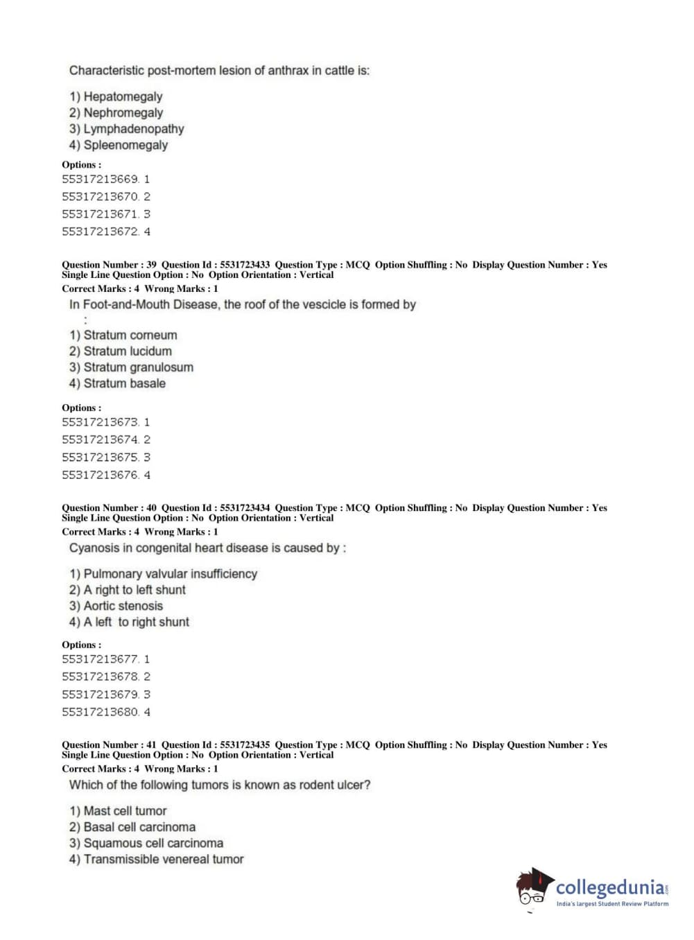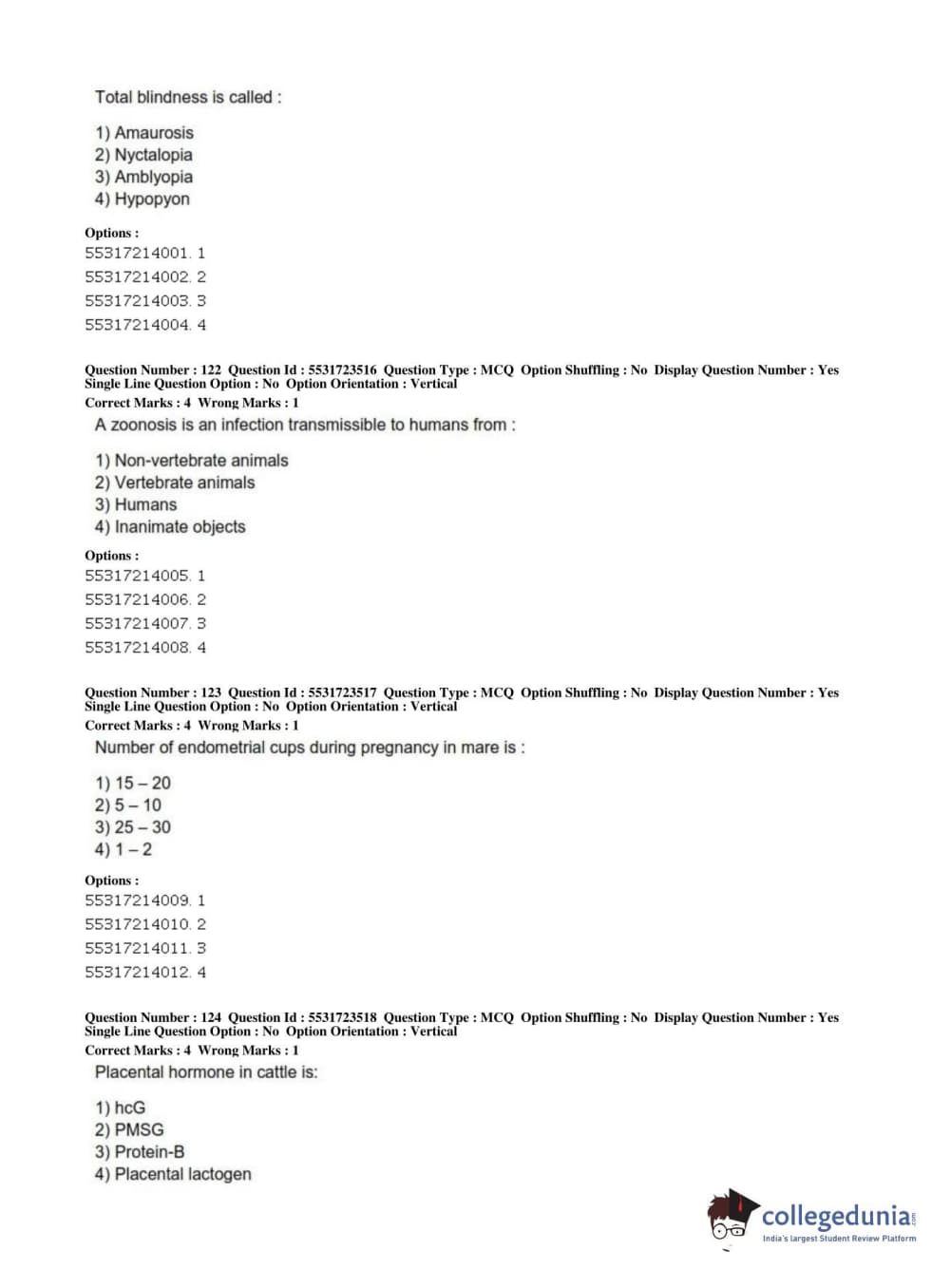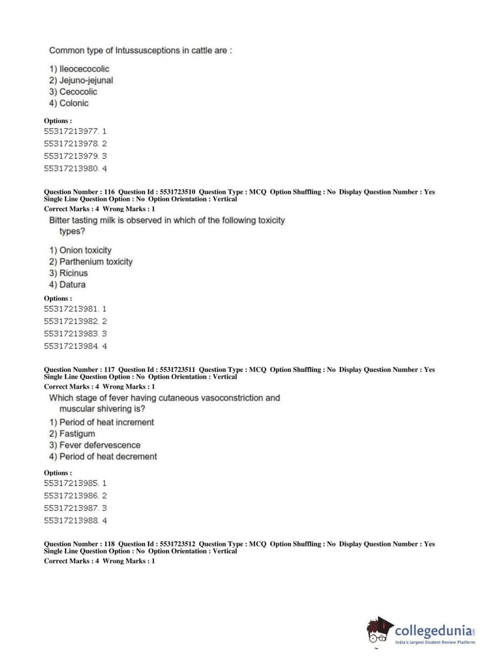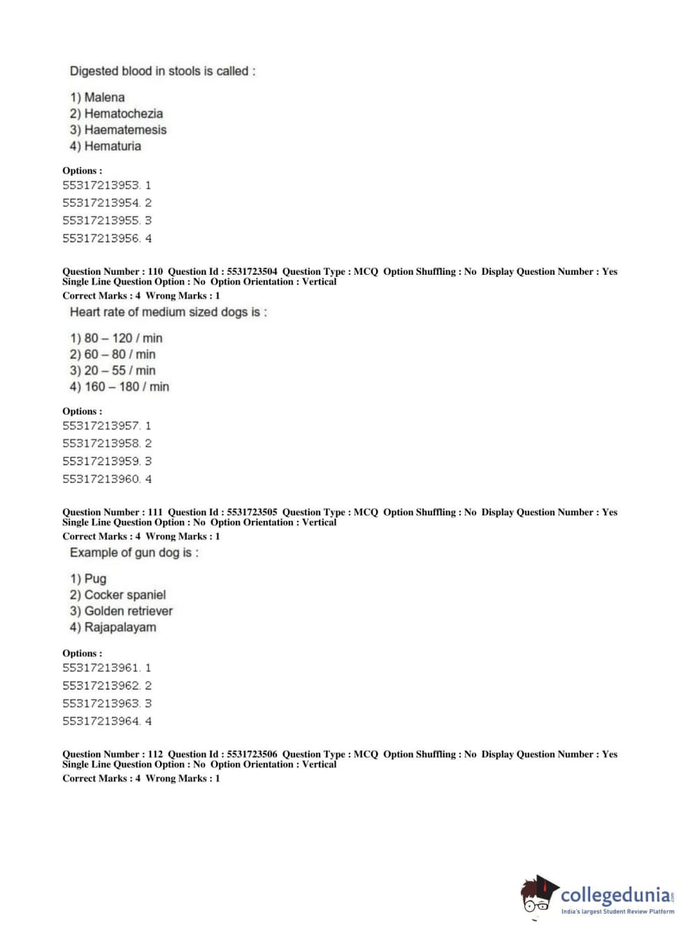 ICAR AIEEA 2019 PG - VETERINARY SCIENCE Question Paper with Answer Key PDFs Shift 2