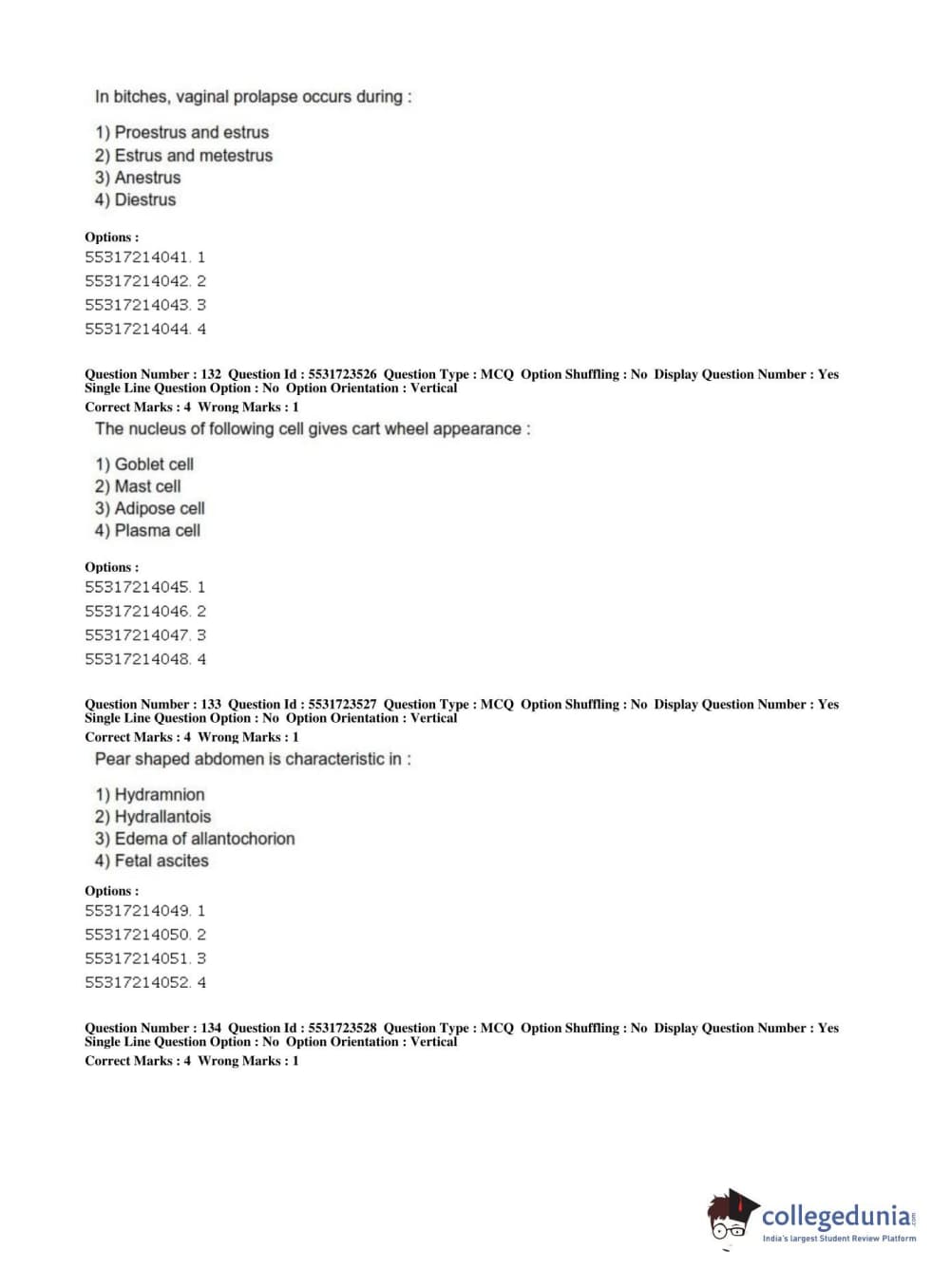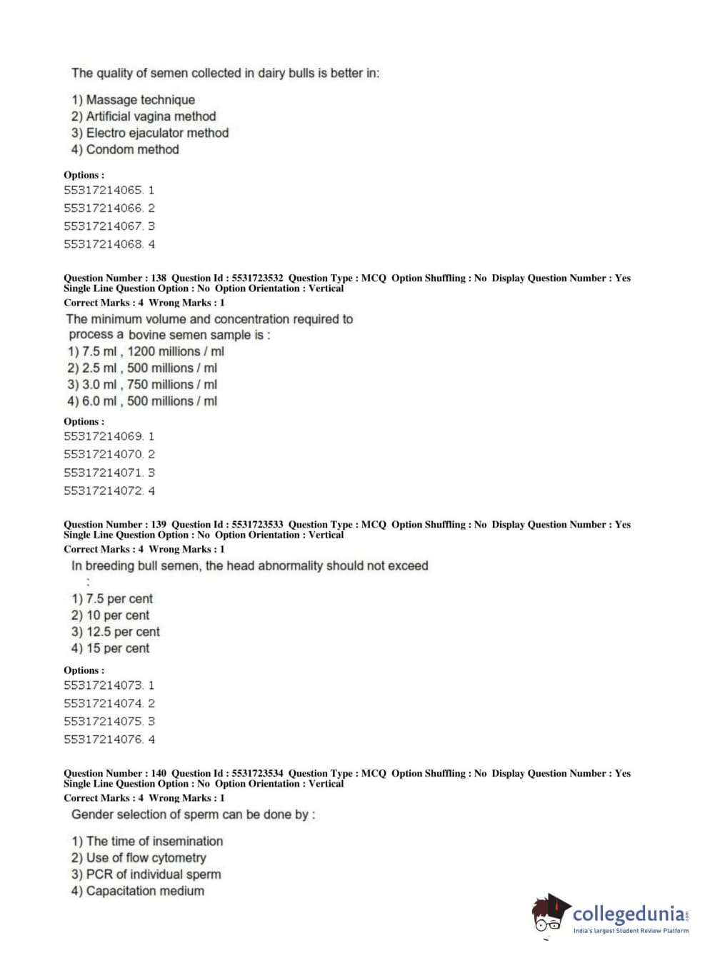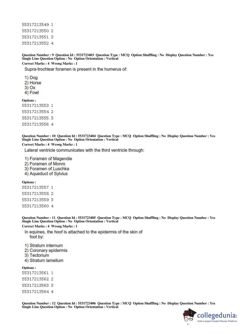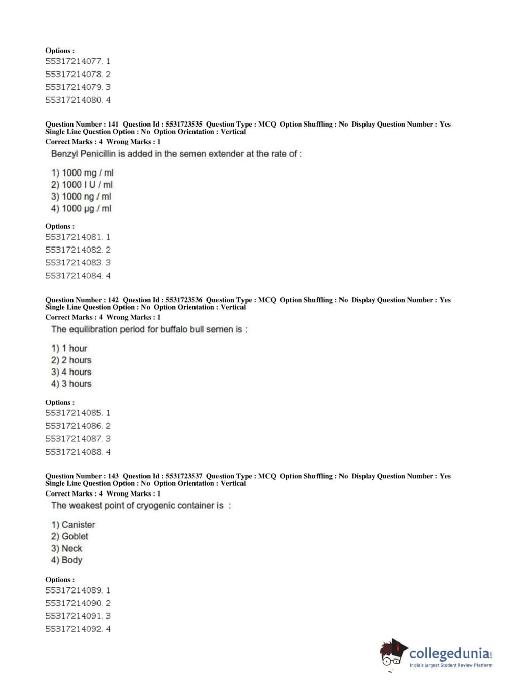 ICAR AIEEA 2019 PG - VETERINARY SCIENCE Question Paper with Answer Key PDFs Shift 2